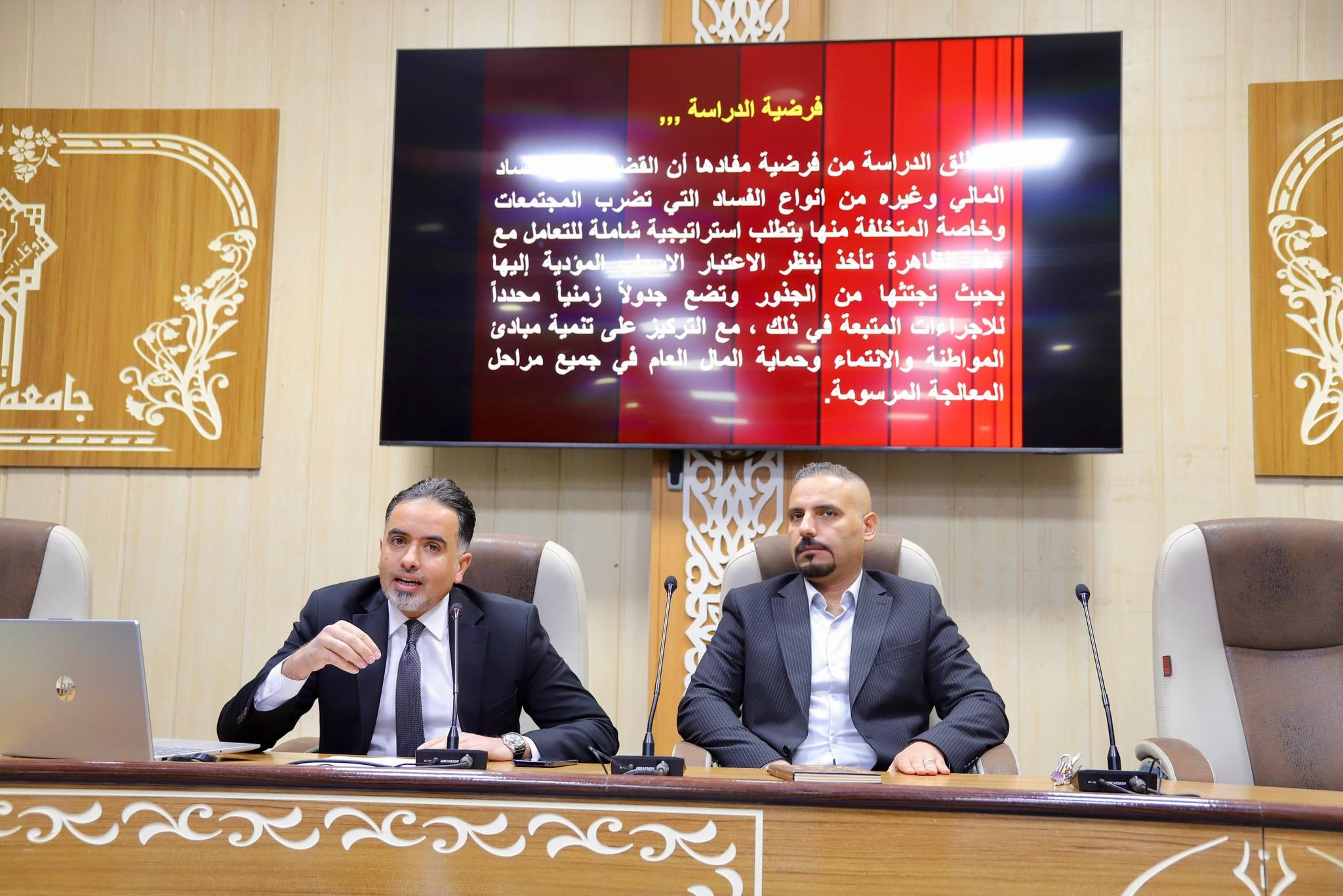 تنفيذاً لتوجيهات الأمانة العامة لمجلس الوزراء، وبتوجيه ورعاية رئيس جامعة تكريت الأستاذ الدكتور وعد محمود رؤوف، يواصل قسم الشؤون القانونية في الجامعة إلقاء سلسلة من المحاضرات التخصصية الخاصة بموضوع مكافحة الفساد والحد منه.