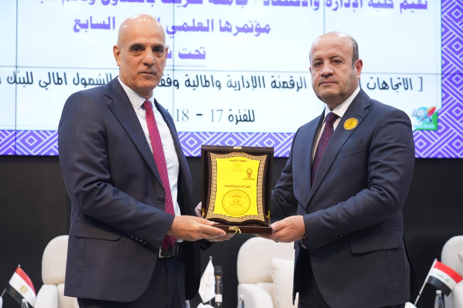 وفي ختام الجلسة الافتتاحية، جرى تكريم رئيس الجامعة والمتحدثين والضيوف بدروع المؤتمر ودروع البنك المركزي العراقي، كما تم افتتاح معرض الشمول المالي الذي نظمه البنك المركزي العراقي بالتعاون مع رابطة المصارف العراقية في باحة كلية الإدارة والاقتصاد.