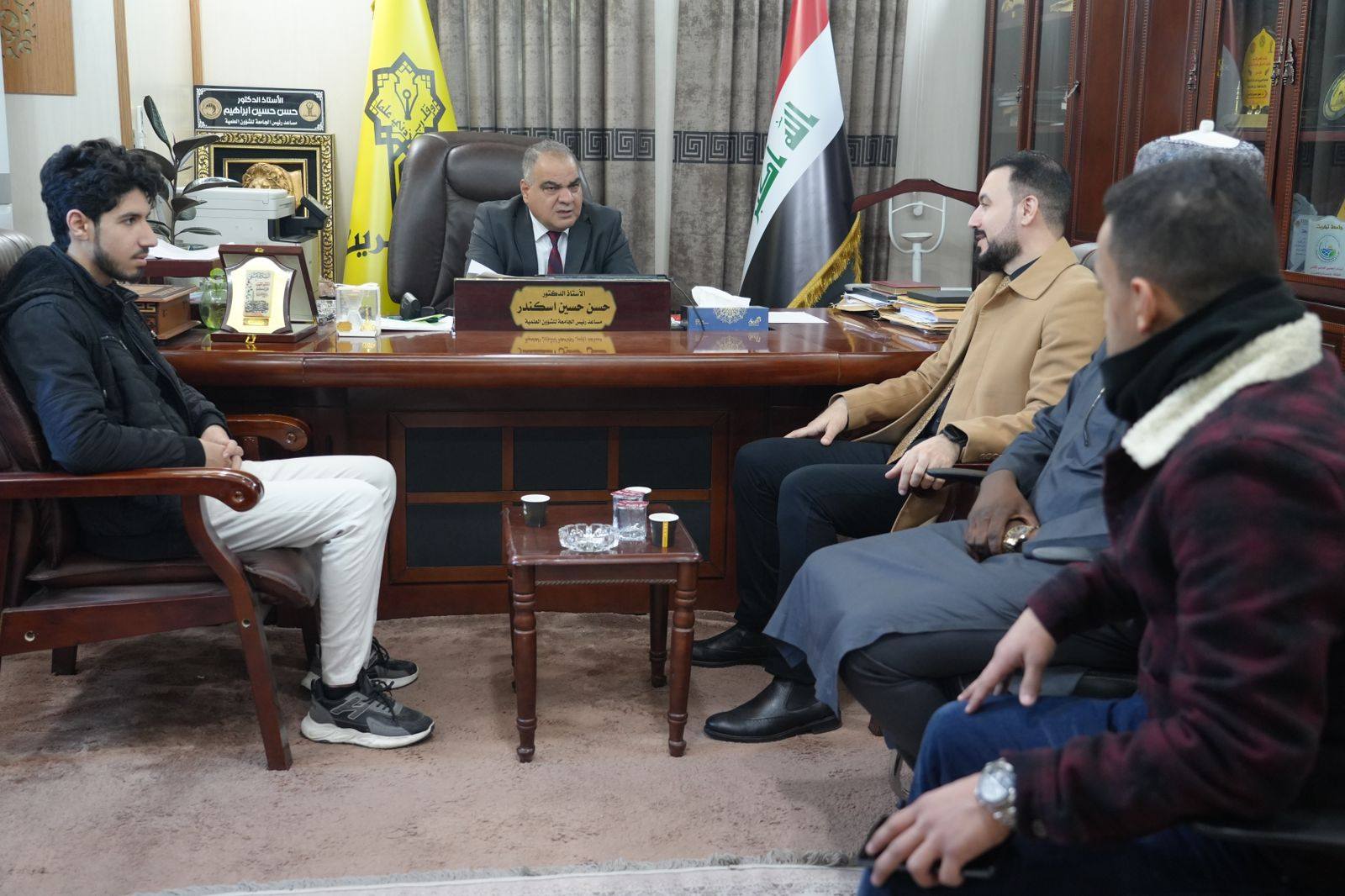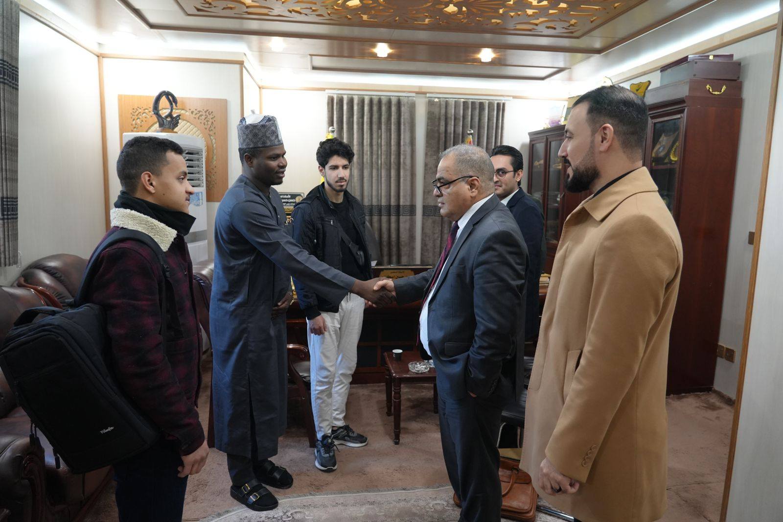 التقى السيد المساعد العلمي لرئيس الجامعة الأستاذ الدكتور حسن حسين إبراهيم، يرافقه الأستاذ المساعد الدكتور نمير خيرالله محمد مدير قسم البعثات والعلاقات الثقافية، مجموعة من الطلبة الأجانب الدارسين في كليات الجامعة، وذلك ضمن مبادرة «ادرس في العراق».