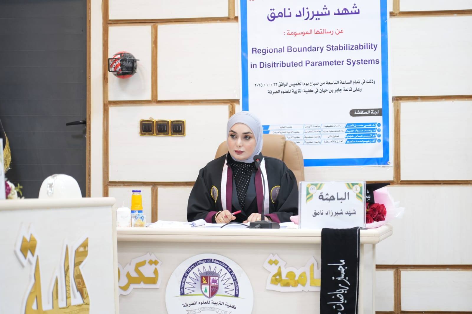 كما حضر رئيس الجامعة مناقشة رسالة الماجستير للطالبة شهد شيرزاد نامق من قسم الرياضيات في كلية التربية للعلوم الصرفة، حيث أشاد بأهمية الموضوع البحثي الذي قدمته الطالبة وما يتضمنه من نتائج علمية يمكن أن تسهم في إثراء المجال الأكاديمي والتطبيقي.