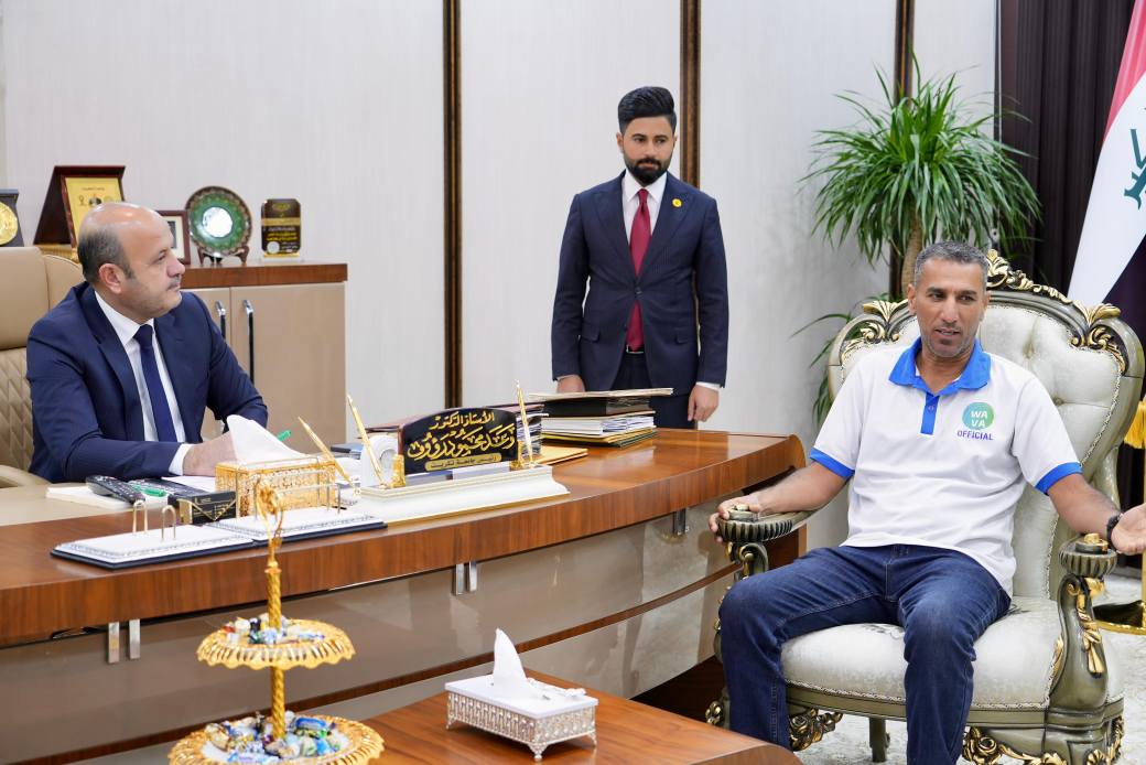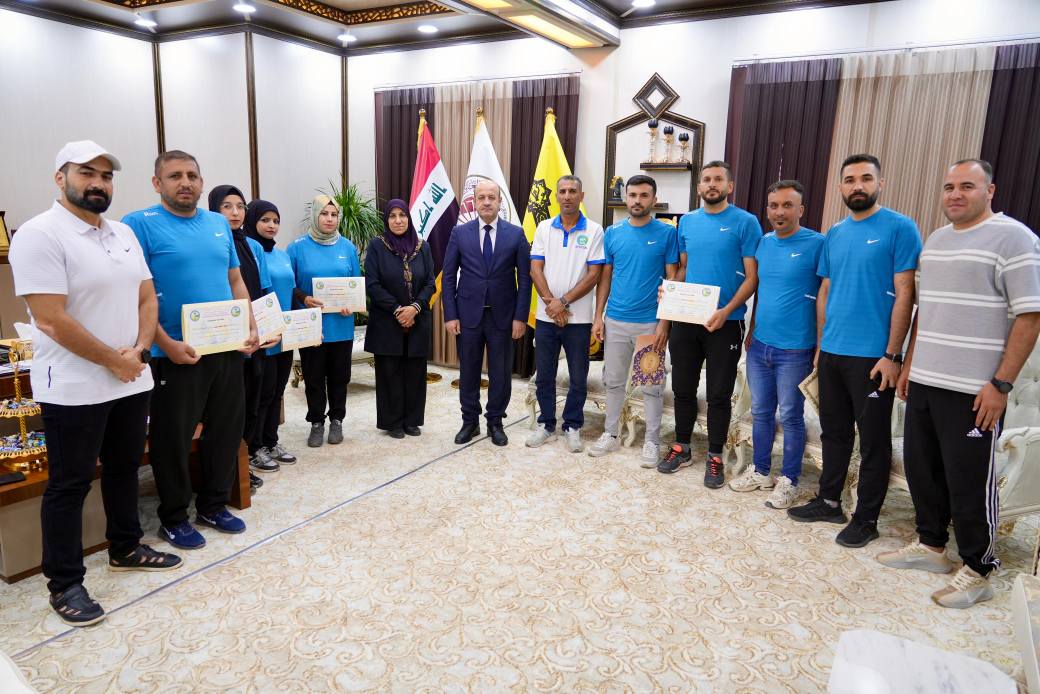 استقبل رئيس جامعة تكريت الأستاذ الدكتور وعد محمود رؤوف المدرب الدولي وعدداً من مدربي الجامعة، حيث أكد خلال اللقاء حرص الجامعة على تطوير قدرات كوادرها الرياضية من خلال برامج تدريبية متخصصة ينفذها خبراء من مديرية الشباب والرياضة.