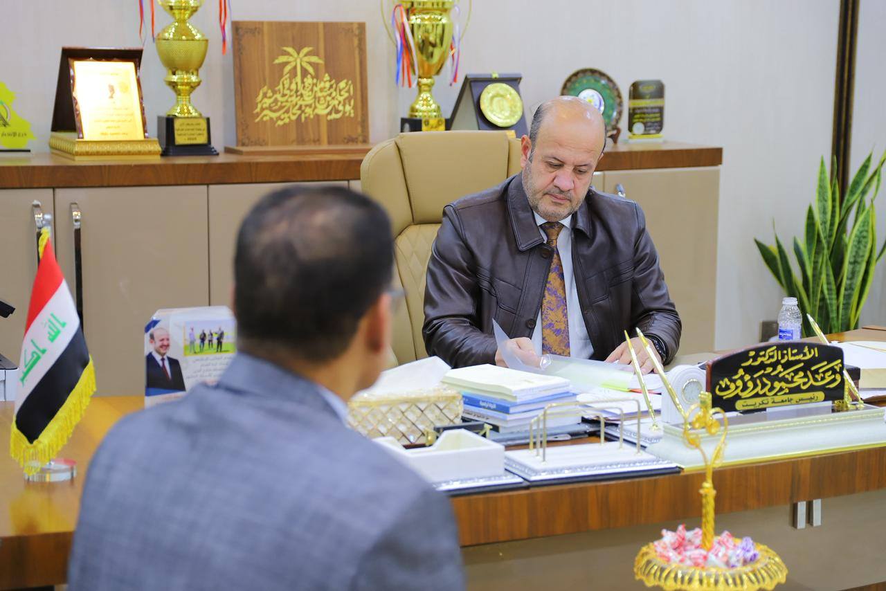 استقبل رئيس جامعة تكريت الأستاذ الدكتور وعد محمود رؤوف، عدداً من المنتسبين والمواطنين وطلبة الجامعة، وذلك ضمن برنامج المقابلات الأسبوعية الذي يخصصه للاطلاع على طلباتهم ومتابعة شؤونهم.