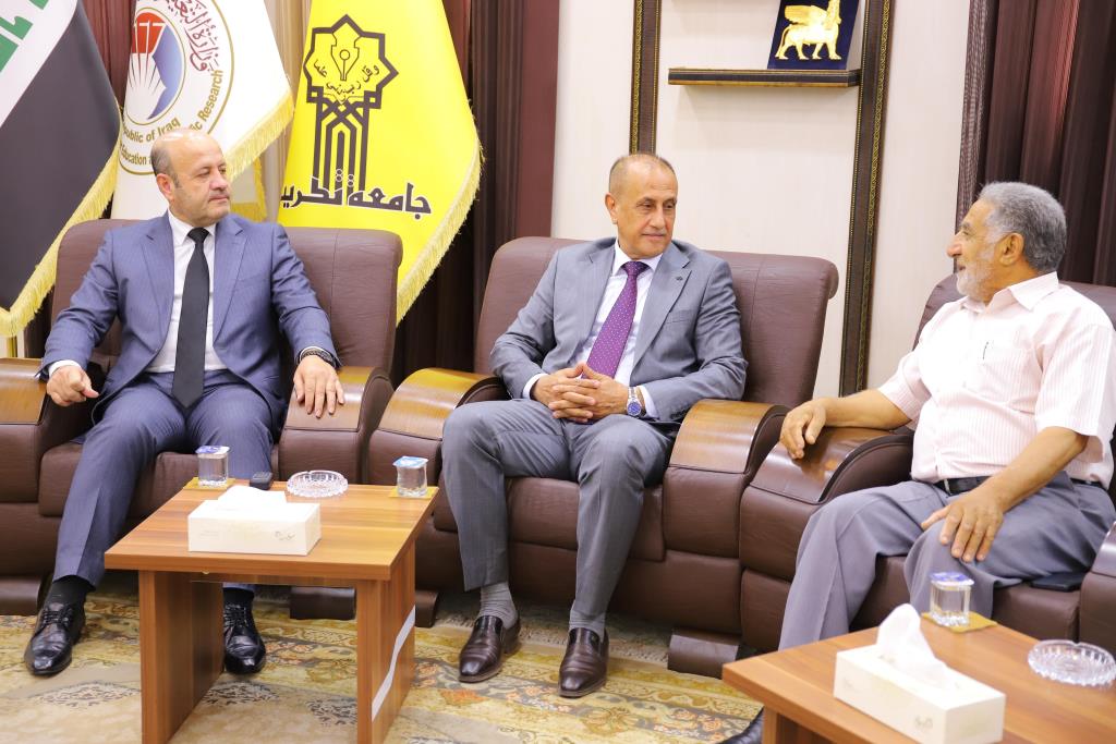 وجرى خلال اللقاء بحث سبل تعزيز التعاون العلمي والأكاديمي بين الجامعتين، لاسيما في ضوء مذكرة التفاهم الموقعة بين الجانبين في وقت سابق، والتي تهدف إلى تبادل الخبرات وتطوير البرامج الأكاديمية بما يسهم في الارتقاء بمستوى التعليم العالي.