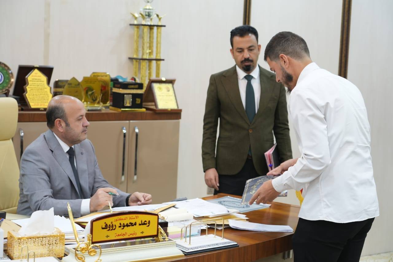 استقبل السيد رئيس جامعة تكريت، الأستاذ الدكتور وعد محمود رؤوف، اليوم الاثنين الموافق14/4/2025، في مكتبه الرسمي بمبنى رئاسة الجامعة، عددًا من المواطنين وطلبة الجامعة، وذلك ضمن برنامج مقابلاته الأسبوعية الذي تنظمه شعبة شؤون المواطنين.