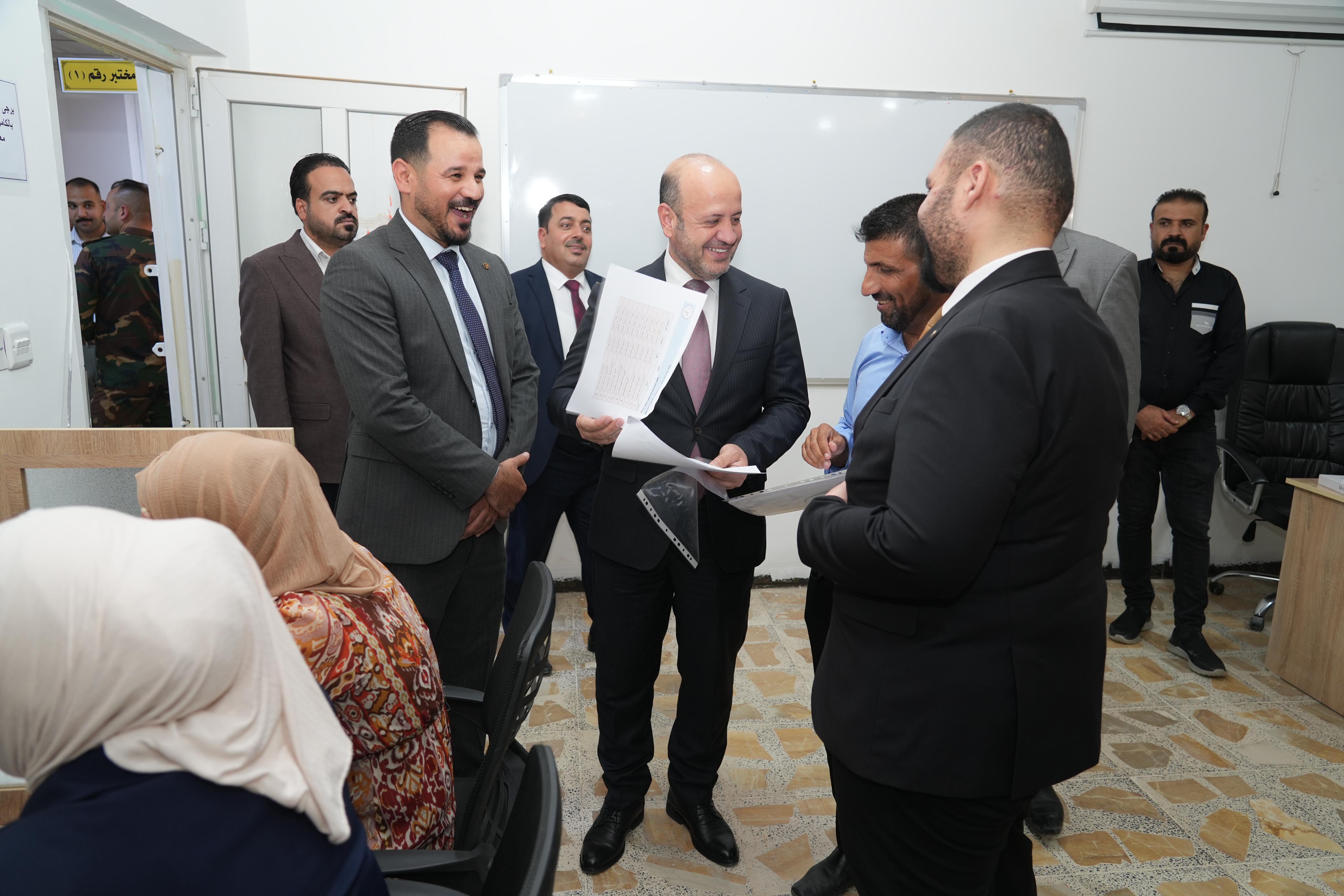 من جانبه قال الدكتور حسن حسين ابراهيم المساعد العلمي لرئيس الجامعة جرى الامتحان التنافسي في كليات الجامعة بإنسيابية عالية واستطاعت الجامعة تذليل جميع العقبات أثناء التقديم و سوف يستمر العمل وفق السياقات المهنية لإنجاح عملية القبول واعتمدت بعض الكليات نظام (MCQ) والذي يُعد من الطرق الحديثة في الاختبارات.