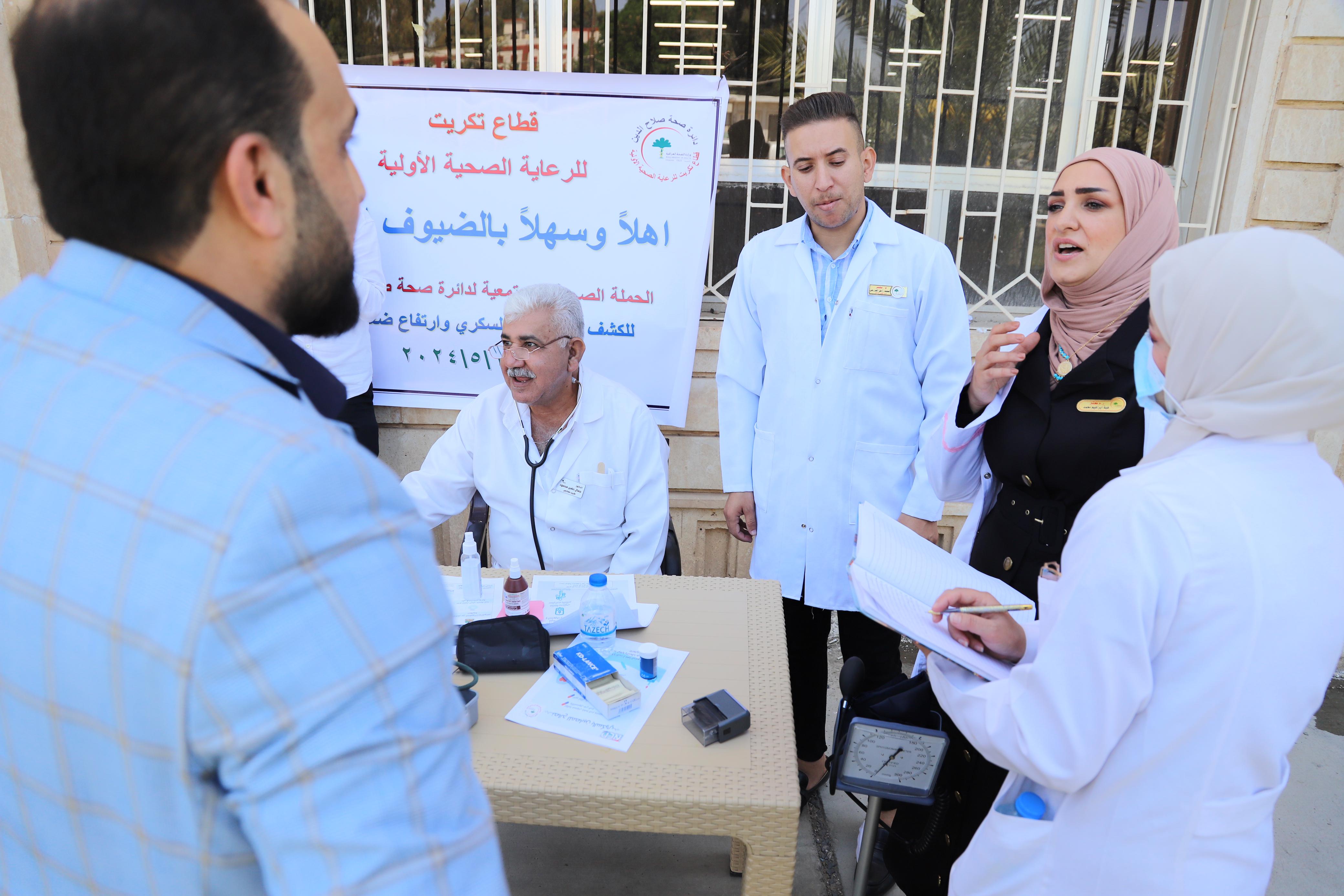ضمن التعاون المستمر بين جامعة تكريت والدوائر والمؤسسات الحكومية في المحافظة قام المركز الصحي الجامعي وبدعم من رئاسة الجامعة وضمن حملة قطاع تكريت للرعاية الصحية الاولية الحملة الصحية الجامعية لدائرة صحة صلاح الدين للكشف المبكر عن مرض السكري وارتفاع ضغط الدم تضمنت فحص مجاني واعطاء توجيهات طبية لعدد من منتسبي وطلبة الجامعة اوضح الدكتور جمال خضير مدير المركز الصحي الجامعي ان هذه الحملة تهدف الى التعريف بخطورة الأمراض المذكورة وأسباب انتشارها في المجتمع فضلا عن طرق الوقاية منها وبيان اهمية الالتزام بالارشادات الصحية لتجنب الاصابة بالعديد من الامراض لخلق مجتمع صحي آمن