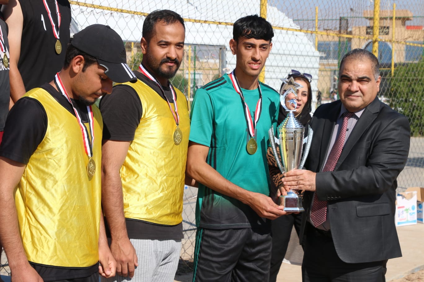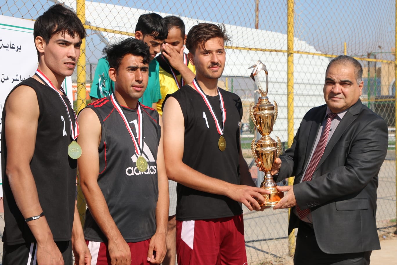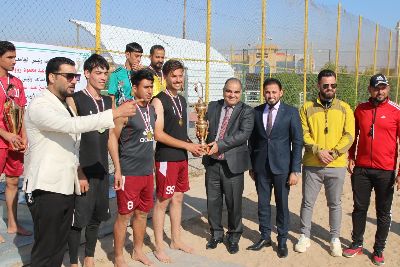 بتوجيه من الاستاذ الدكتور وعد محمود رؤوف رئيس جامعة تكريت وبحضور الاستاذ الدكتور حسن حسين ابراهيم مساعد رئيس جامعة تكريت للشؤون العلمية اختتمت في كلية التربية البدنية وعلوم الرياضة بطولة كرة الطائرة الشاطئية التي اقامها قسم النشاطات الطلابية في رئاسة الجامعة على ملاعب الكلية