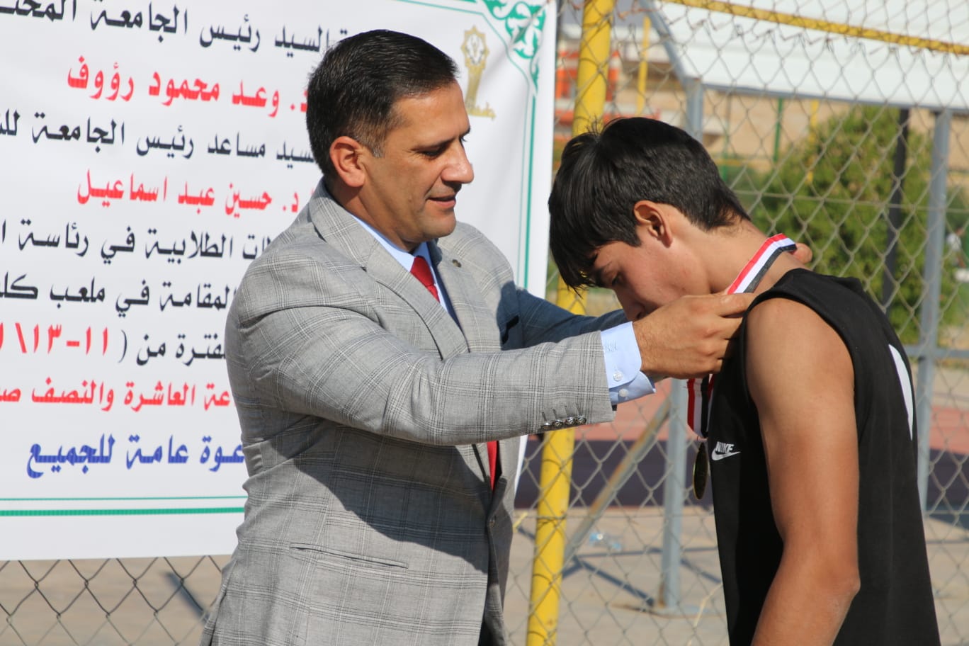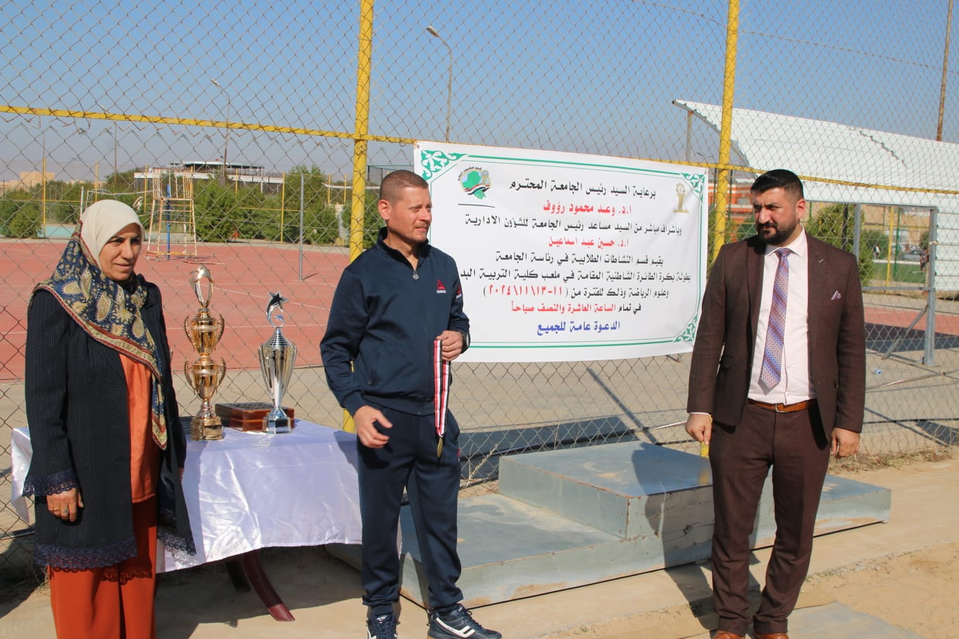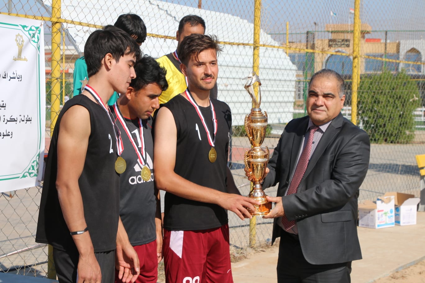بتوجيه من الاستاذ الدكتور وعد محمود رؤوف رئيس جامعة تكريت وبحضور الاستاذ الدكتور حسن حسين ابراهيم مساعد رئيس جامعة تكريت للشؤون العلمية اختتمت في كلية التربية البدنية وعلوم الرياضة بطولة كرة الطائرة الشاطئية التي اقامها قسم النشاطات الطلابية في رئاسة الجامعة على ملاعب الكلية