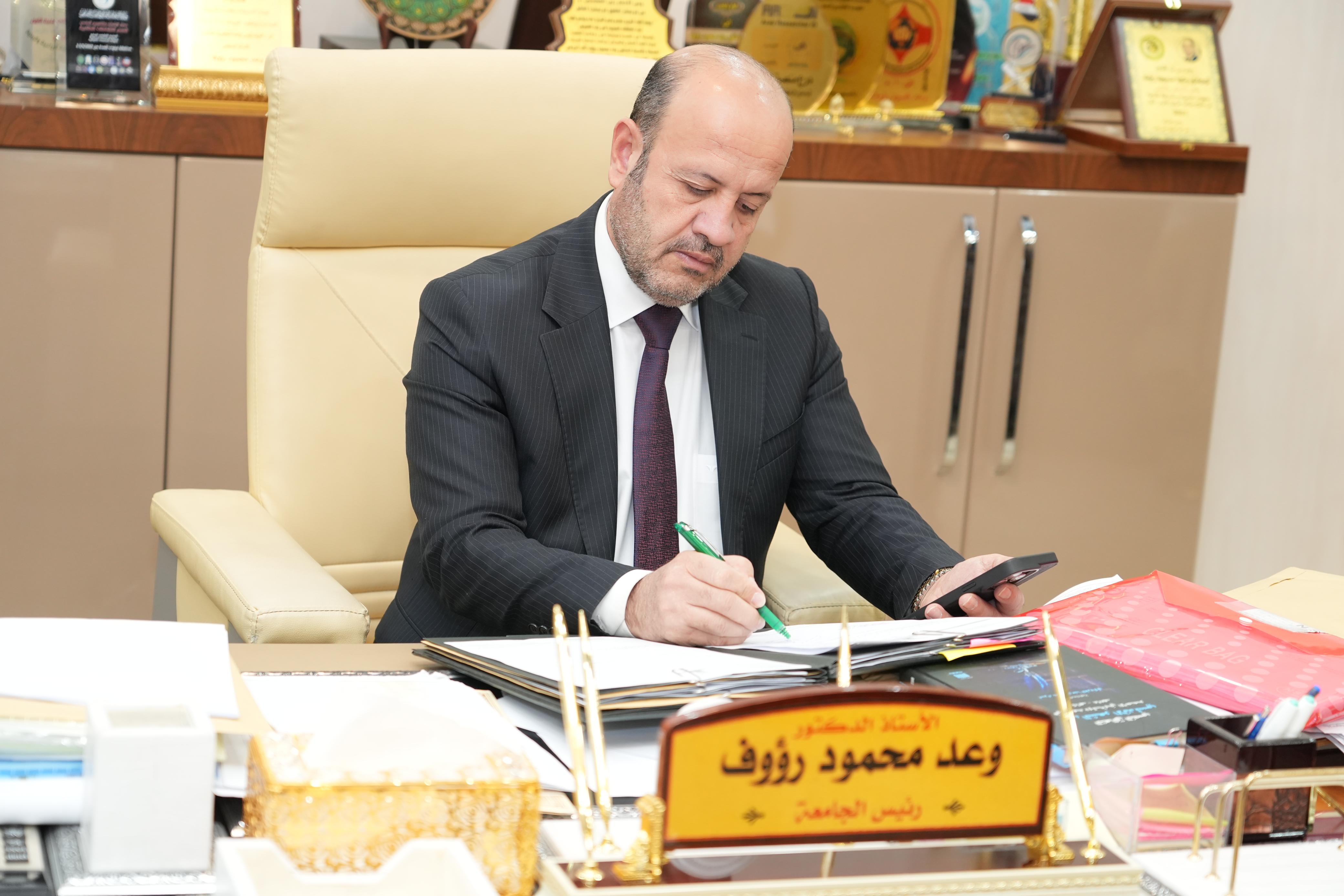 مؤكداً على سعي الجامعة الى تقديم افضل الخدمات لطلبتها وللمجتمع بما يتناسب مع دورها الحضاري والاكاديمي الكبير وما تمثله كصرح علمي في المحافظة ولحل جميع الاشكالات بما يساهم بشكل مباشر في دفع الطلبة للتفوق والنجاح