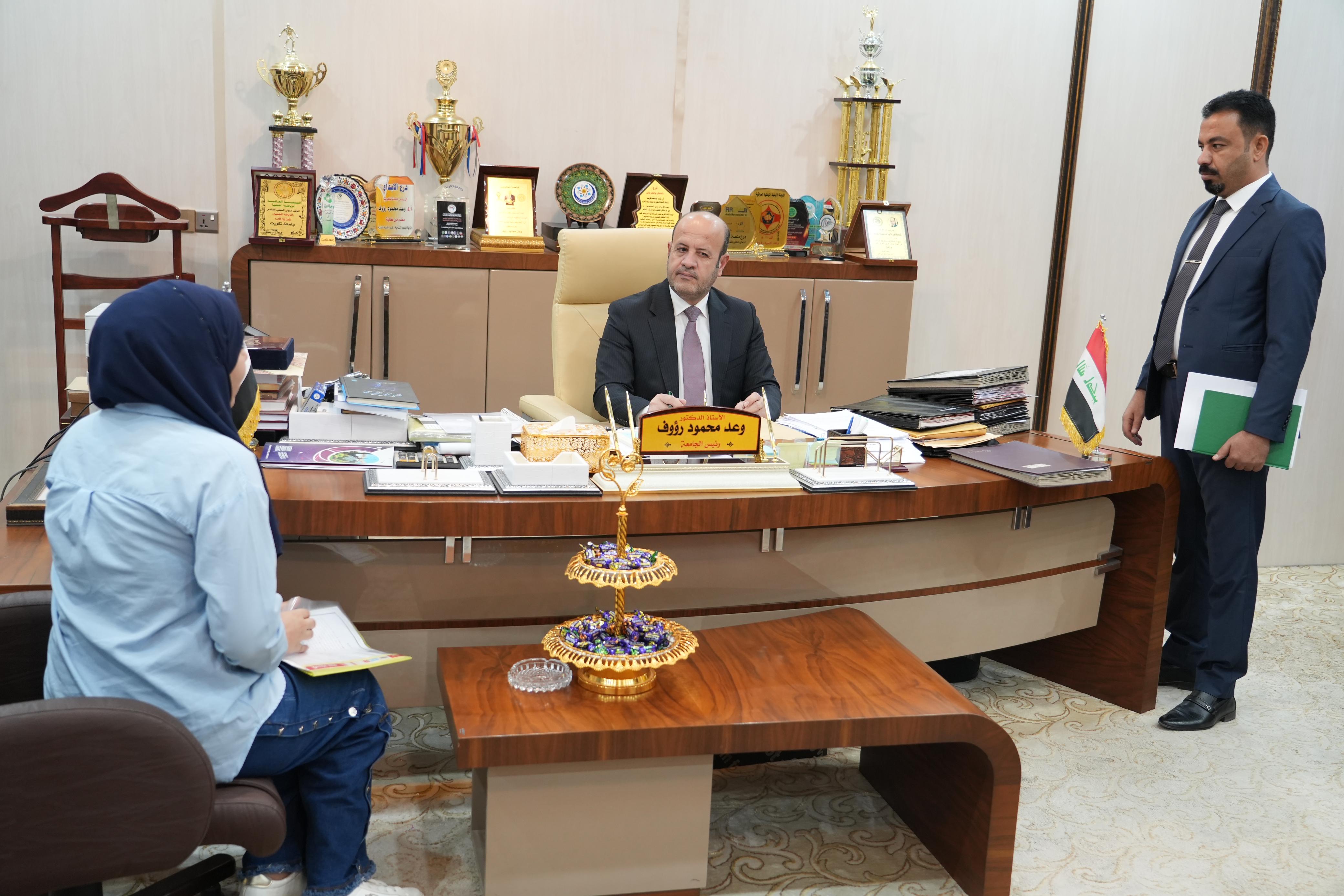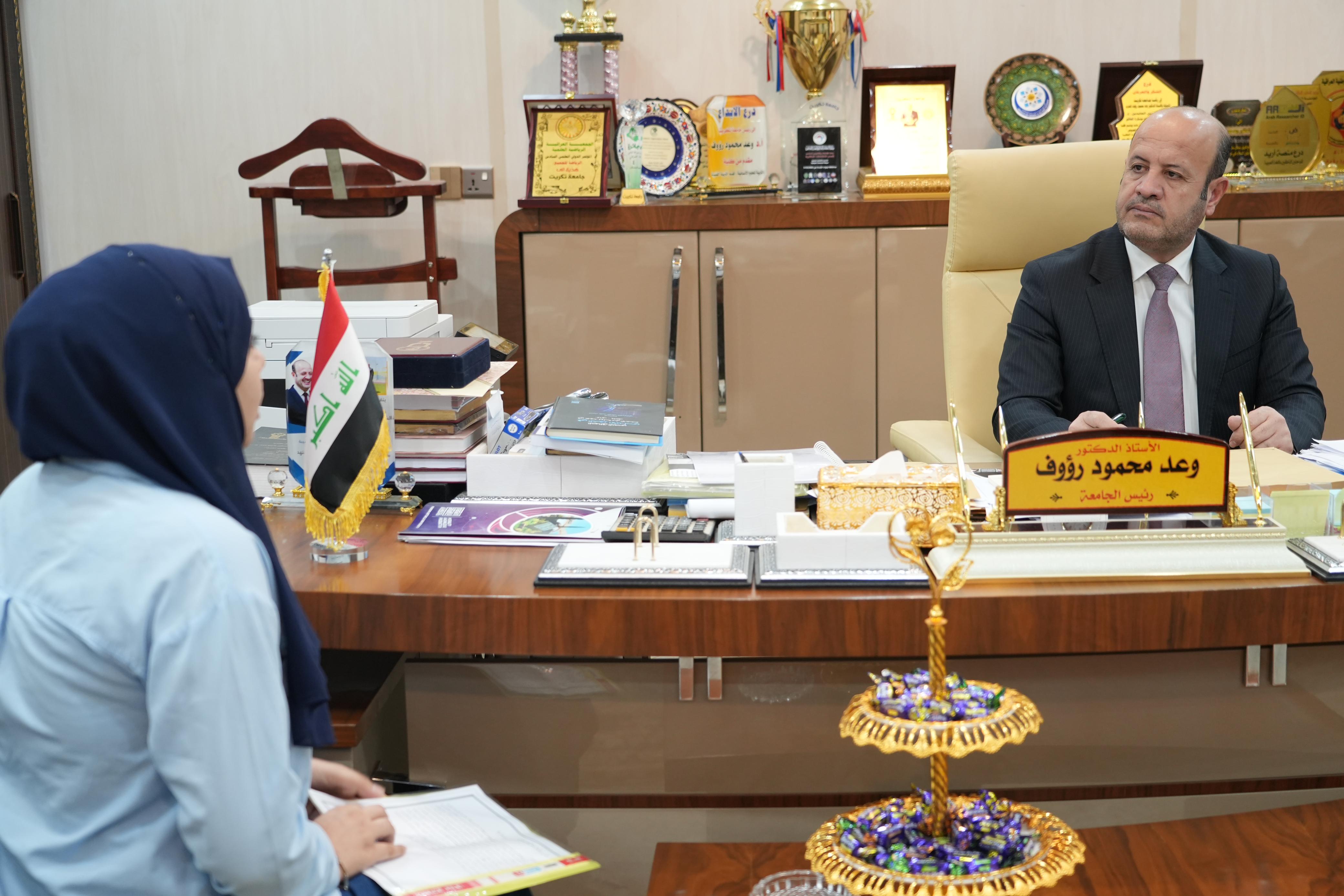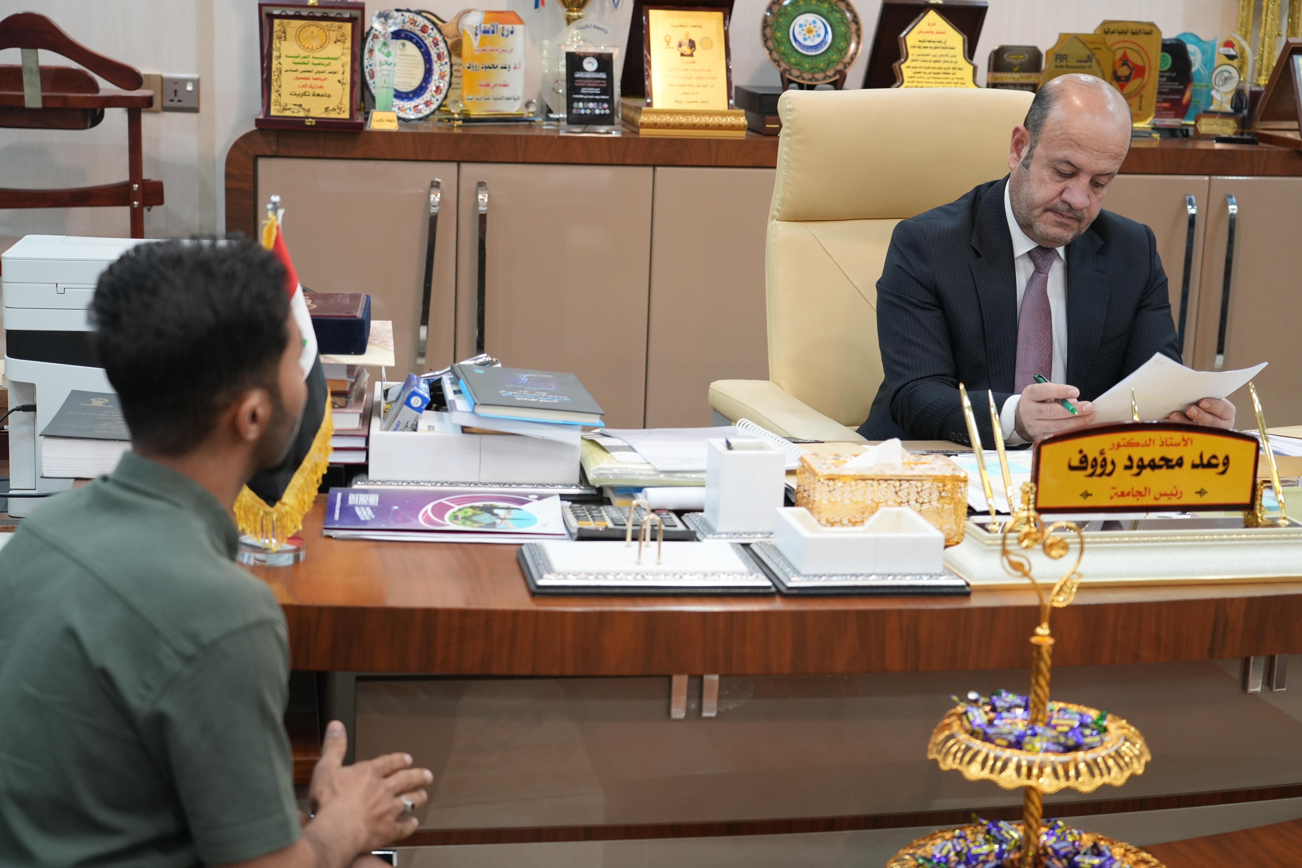 في اطار المتابعة الدائمة والمستمرة لاحتياجات منتسبي وطلبة الجامعة والمواطنين التقى الاستاذ الدكتور وعد محمود رؤوف رئيس جامعة تكريت اليوم الثلاثاء الموافق ٢٧/ ٨/ ٢٠٢٤ في مكتبه عدداً من الطلبة ومنتسبي الجامعة والمواطنين