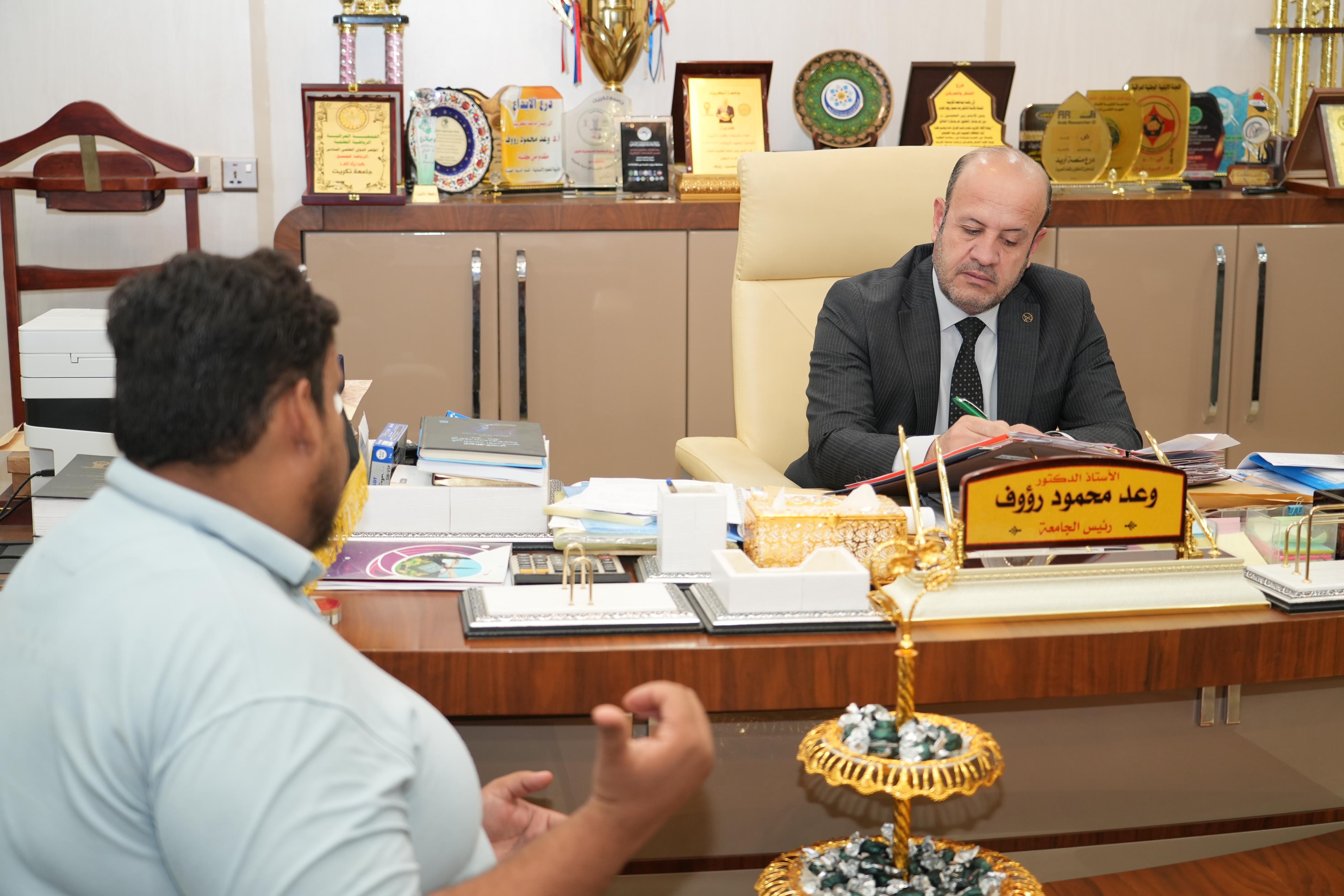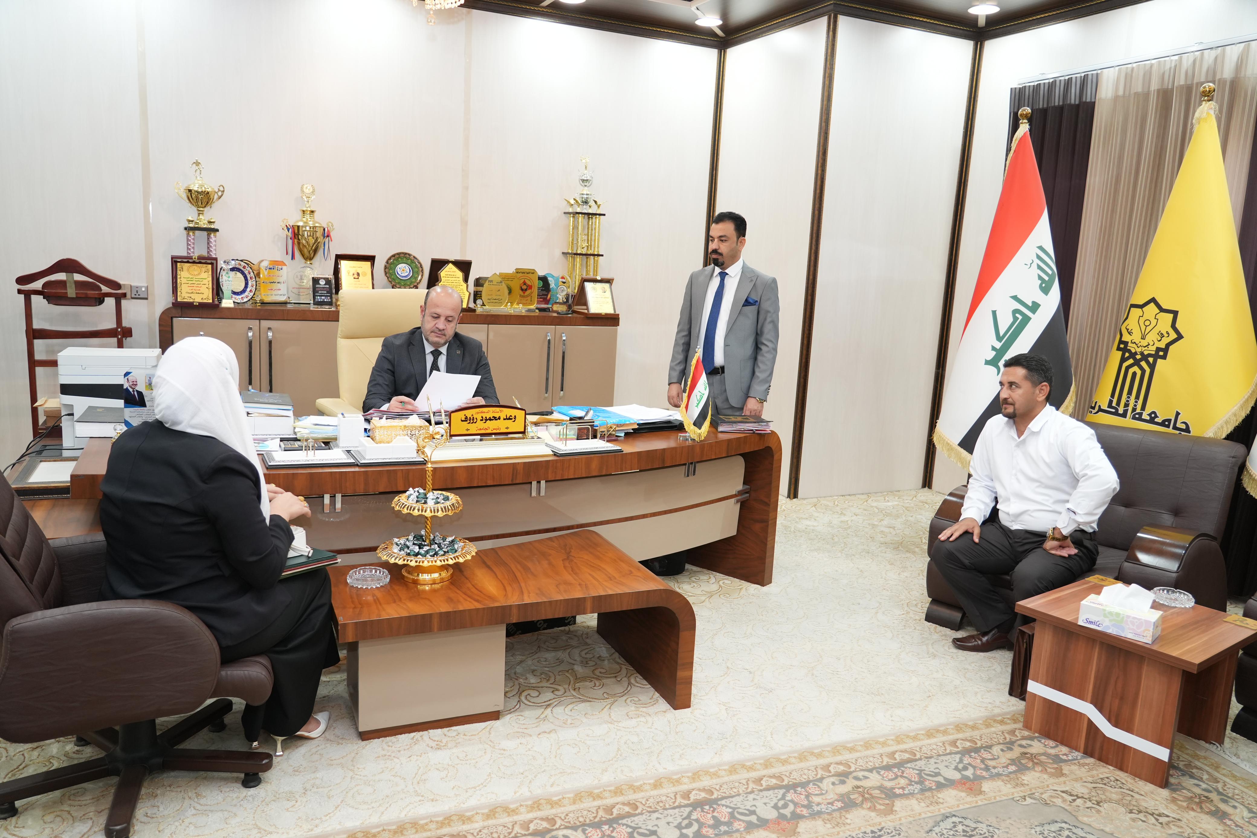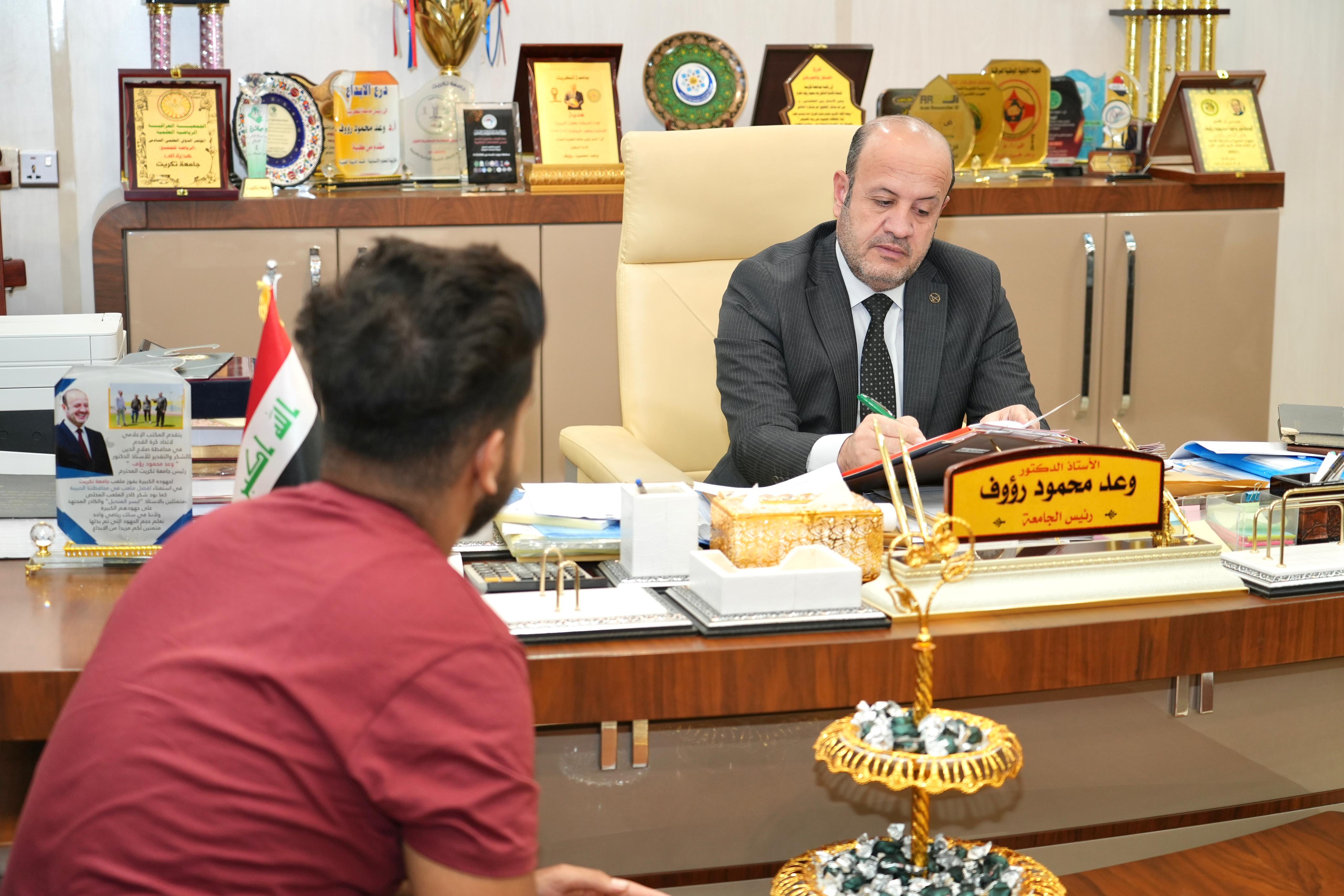 في اطار المتابعة الدائمة والمستمرة لاحتياجات منتسبي وطلبة الجامعة والمواطنين التقى الاستاذ الدكتور وعد محمود رؤوف رئيس جامعة تكريت اليوم الثلاثاء الموافق ١/ ١٠/ ٢٠٢٤ في مكتبه عدداً من الطلبة ومنتسبي الجامعة والمواطنين