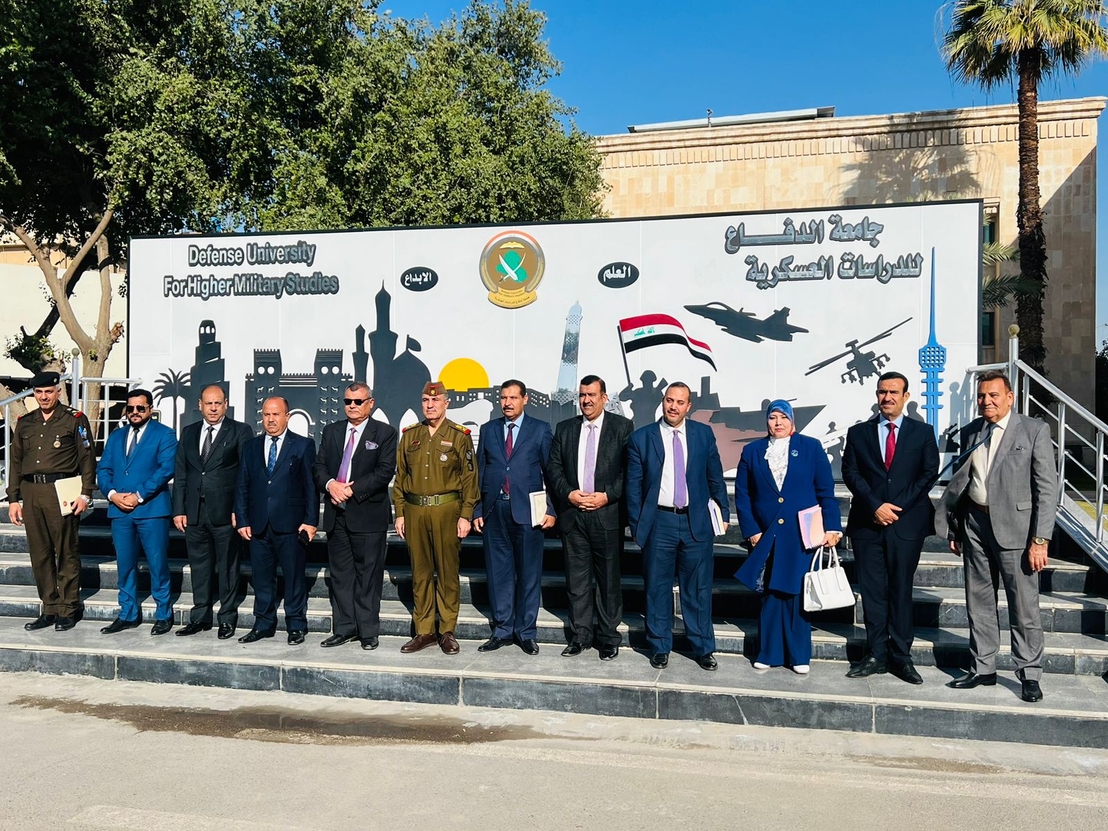 بتوجيه من السيد رئيس جامعه تكريت الاستاذ الدكتور وعد محمود رؤوف المحترم زار وفد برئاسة ا.د قاسم علوان سعيد عميد كلية العلوم السياسية جامعة الدفاع للدراسات العسكرية في بغداد. والتقى الوفد مع السيد رئيس الجامعة الفريق الركن الطيار الدكتور عقيل مصطفى مهدي المحترم والسيد عميد كلية الدفاع الوطني اللواء الركن الدكتور علي هندول المحترم وعدد من السادة المسؤولين المحترمون ، وتم خلال اللقاء بحث افاق التعاون العلمي وتبادل الخبرات بين جامعة تكريت وجامعة الدفاع للدراسات العسكرية من خلال العمل على وضع اتفاقية تعاون مستقبلي برئاسة السيد رئيس جامعة تكريت.وقد أكد السيد رئيس جامعة الدفاع للدراسات العسكرية على سياسة الجامعة العلمية والقائمة على ضرورة التواصل وفتح افاق التعاون مع جميع الجامعات والمؤسسات العلمية العراقيةومنها جامعة تكريت.
