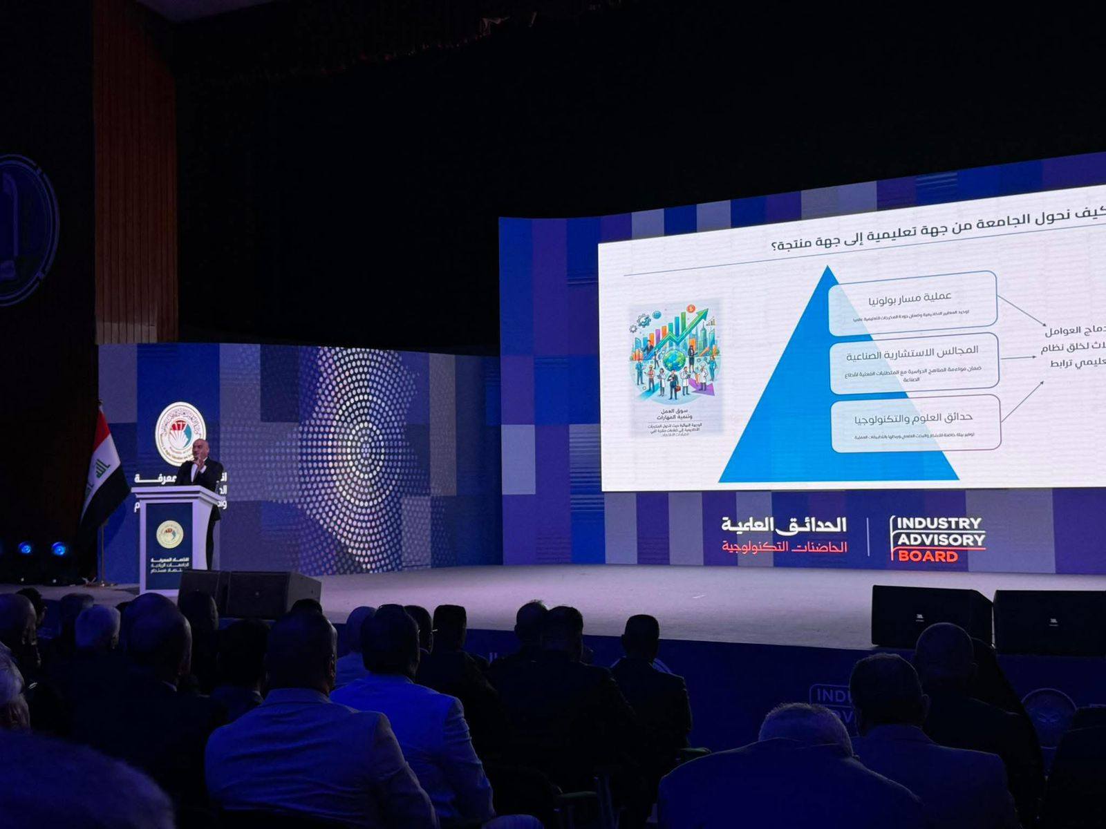 وشهد المؤتمر مناقشة جملة من القضايا الاستراتيجية التي تهدف إلى تطوير منظومة التعليم العالي في العراق، إذ ركزت محاوره على تقليص الفجوة بين مخرجات التعليم واحتياجات سوق العمل، وتفعيل دور المجالس الاستشارية الصناعية وحدائق العلوم والتكنولوجيا داخل الجامعات، فضلاً عن استعراض عدد من التجارب الناجحة التي تعكس مستوى التعاون بين المؤسسات الأكاديمية والقطاعات الإنتاجية.