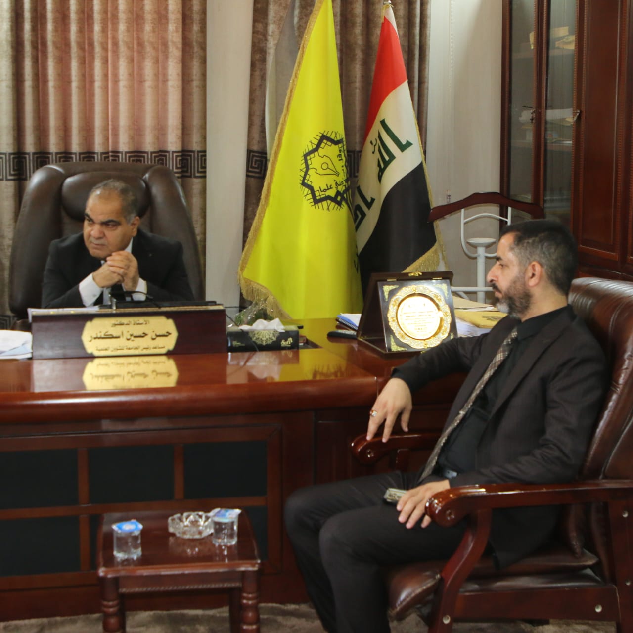 استقبل مساعدا رئيس جامعة تكريت للشؤون العلمية والإدارية وفداً من الامانة العامة للعتبة العباسية المقدسة، في زيارة علمية ثقافية تهدف إلى تعزيز التعاون المشترك بين الجانبين، ولا سيما في مجالات تطوير المستودع الرقمي العراقي للإطاريح والرسائل الجامعية.
