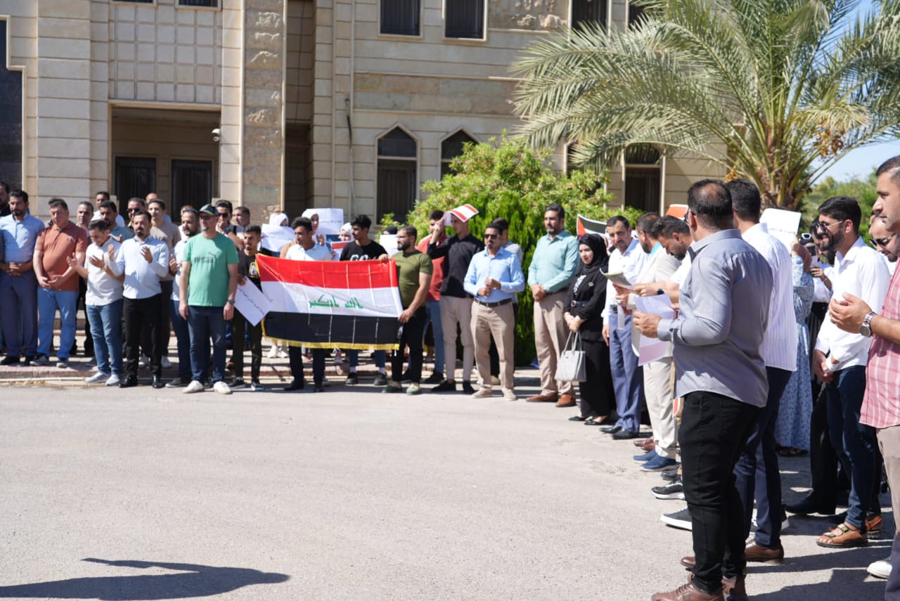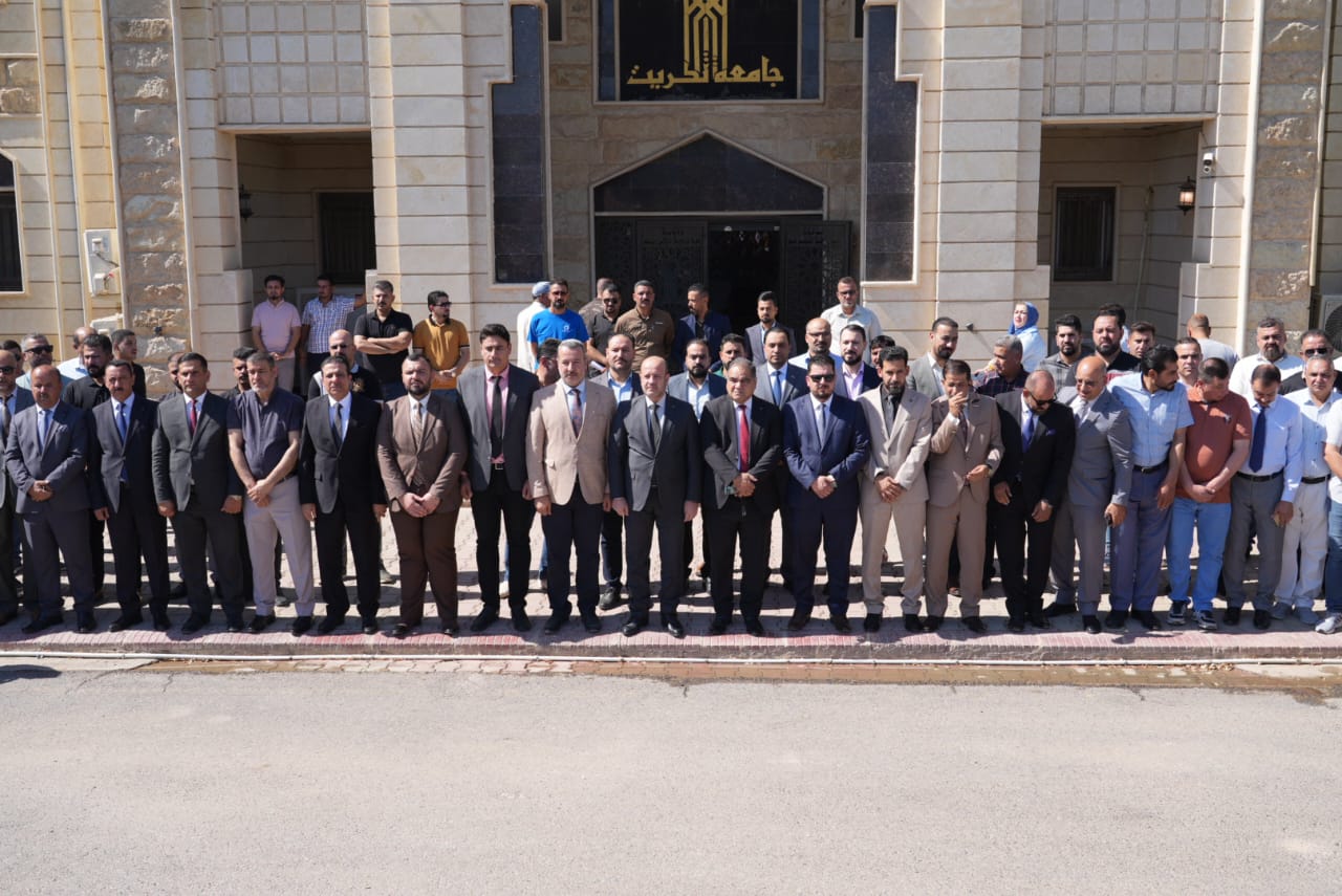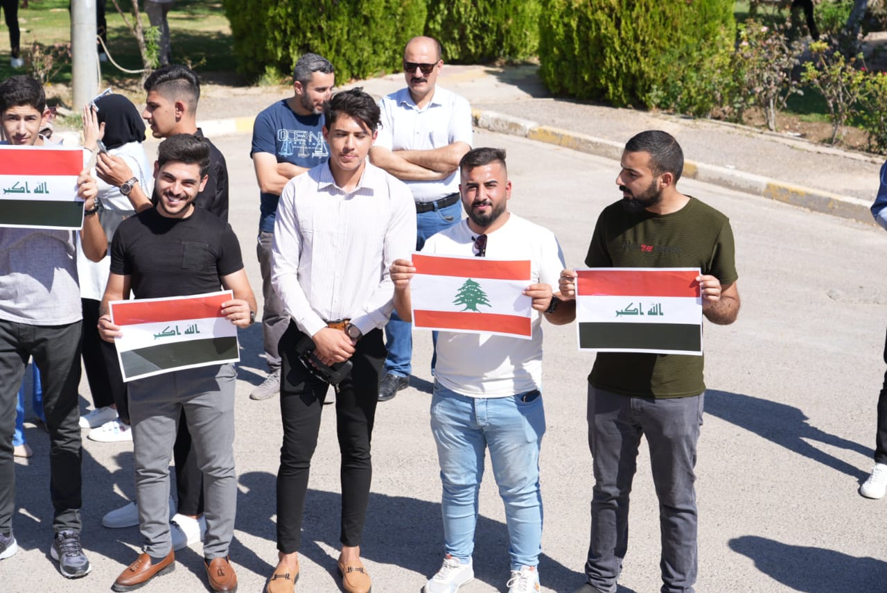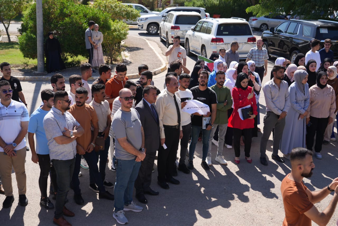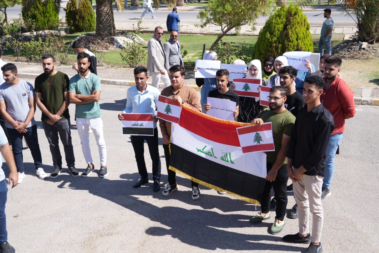 تنفيذا لتوجيهات وزارة التعليم العالي والبحث العلمي نظمت جامعة تكريت بحضور الاستاذ الدكتور وعد محمود رئيس جامعة تكريت والاستاذ الدكتور حسن حسين ابراهيم مساعد رئيس الجامعة للشؤون العلمية وعدد من السادة عمداء الكليات والموظفين والطلبة وقفة استنكارية واحتجاجية ضد العدوان الهمجي الذي يتعرض له الشعبين الفلسطيني واللبناني الشقيقيين على يد قوى الاحتلال والظلام