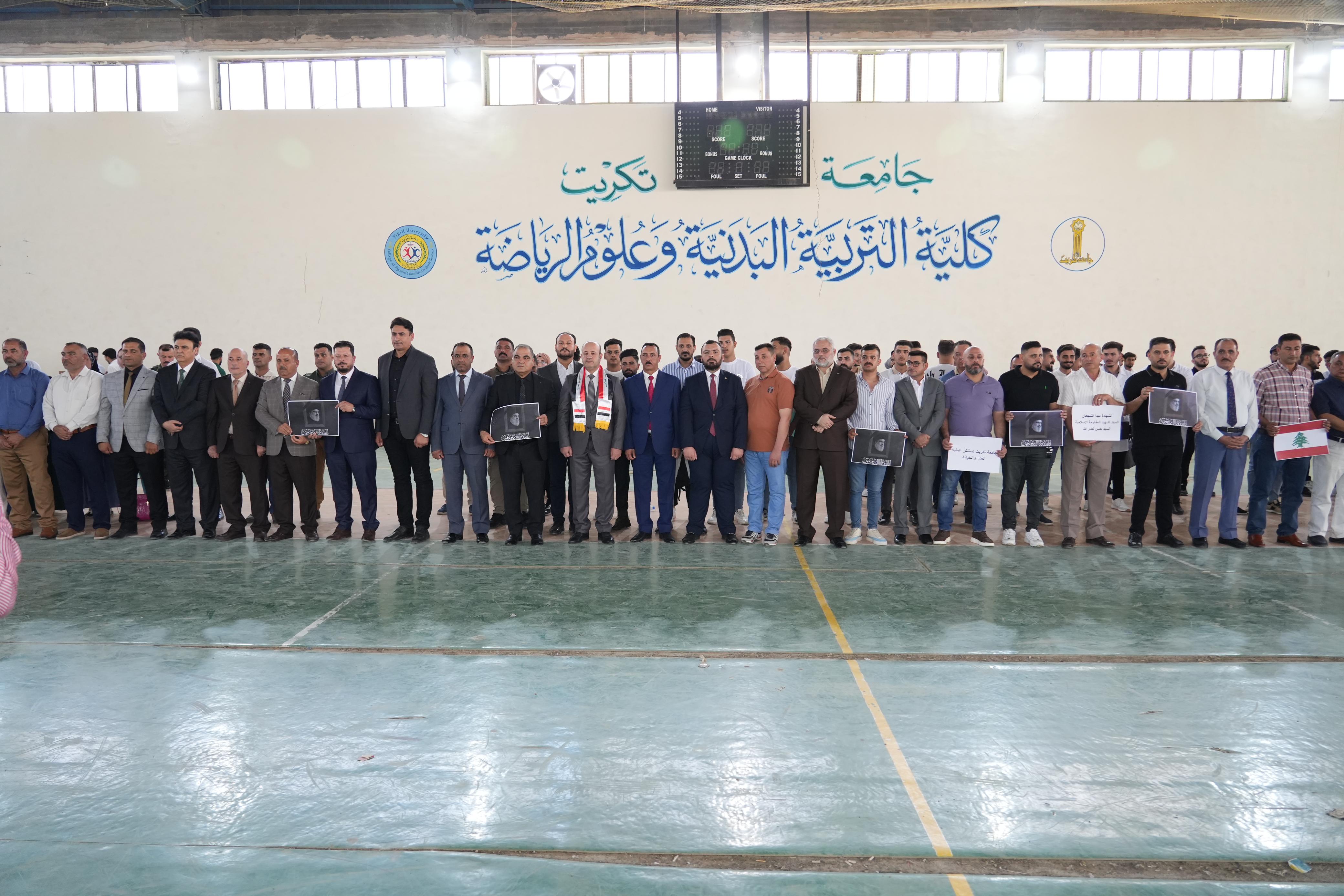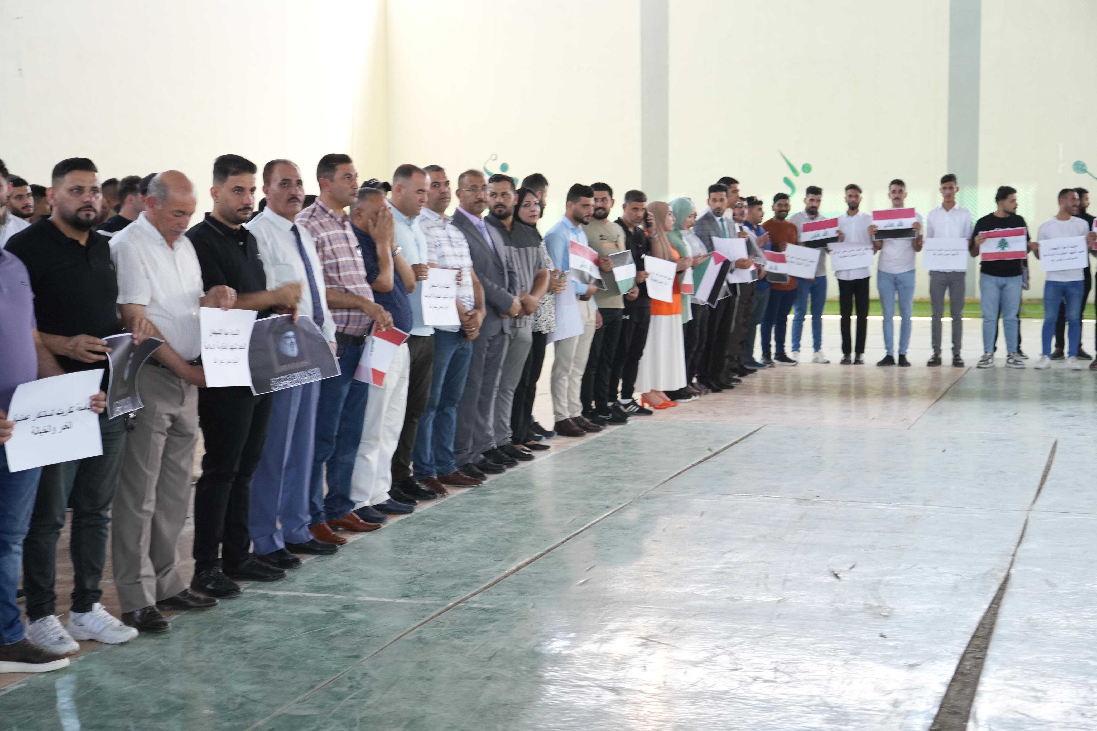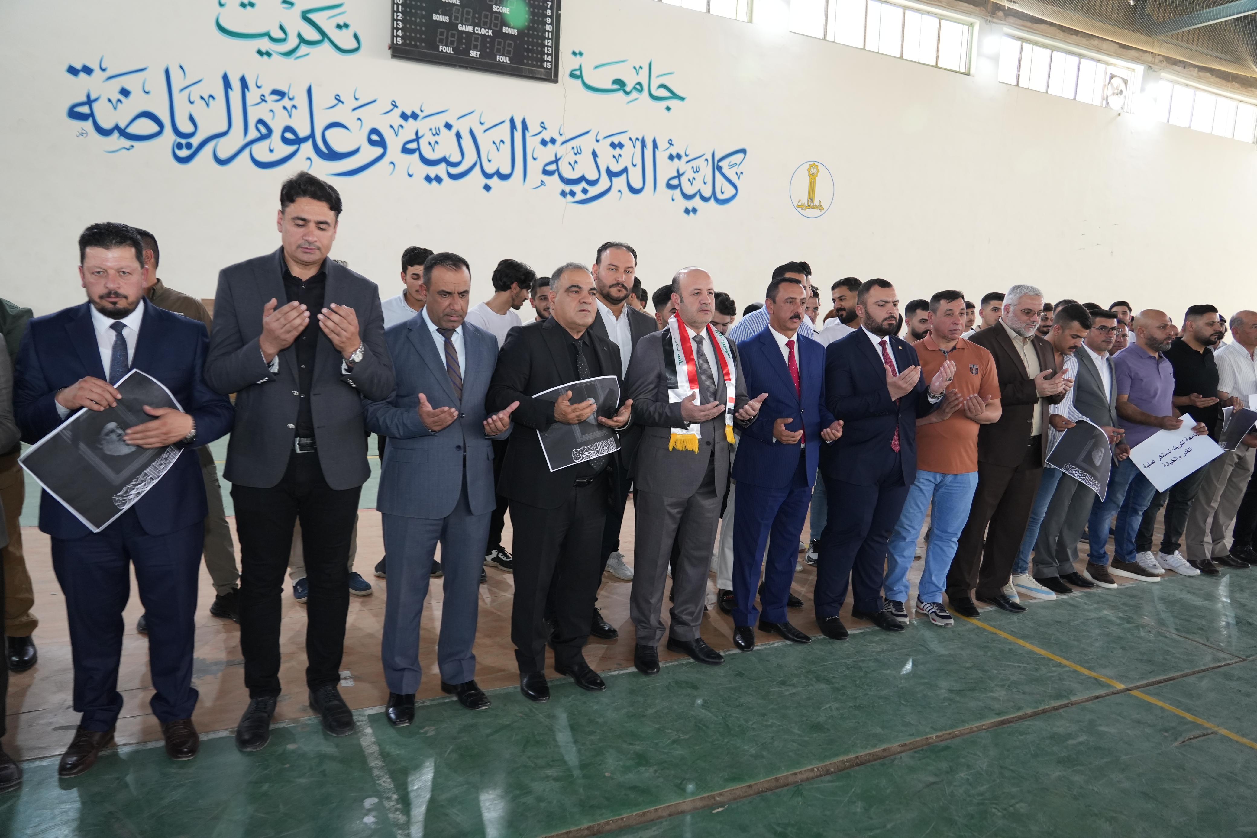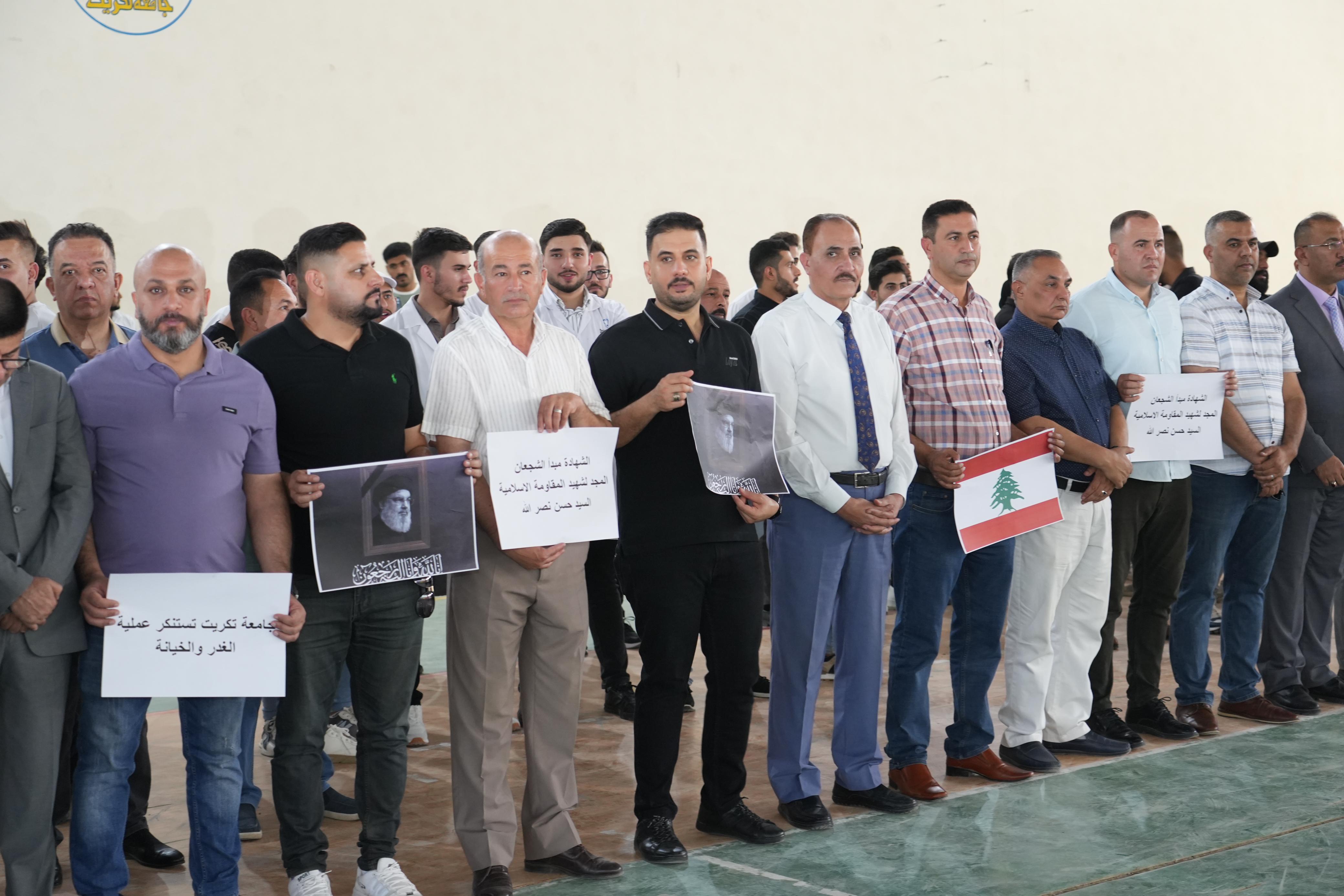 تنفيذا لتوجيهات وزارة التعليم العالي والبحث العلمي نظمت جامعة تكريت بحضور الاستاذ الدكتور وعد محمود رئيس جامعة تكريت والاستاذ الدكتور حسن حسين ابراهيم مساعد رئيس الجامعة للشؤون العلمية وعدد من السادة عمداء الكليات وتدريسيي وموظفي وطلبة الجامعة وقفة تأبين بإستشهاد السيد حسن نصر الله شهيد المقاومة الإسلامية، وشهدت الوقفة التي اقيمت على رحاب القاعة المغلقة في كلية التربية البدنية وعلوم الرياضة قراءة سورة الفاتحة على روح شهيد الأمة،