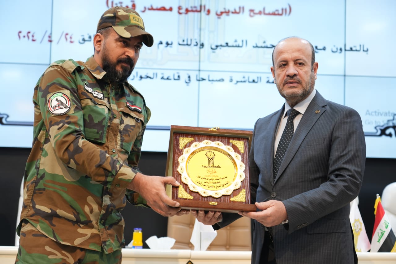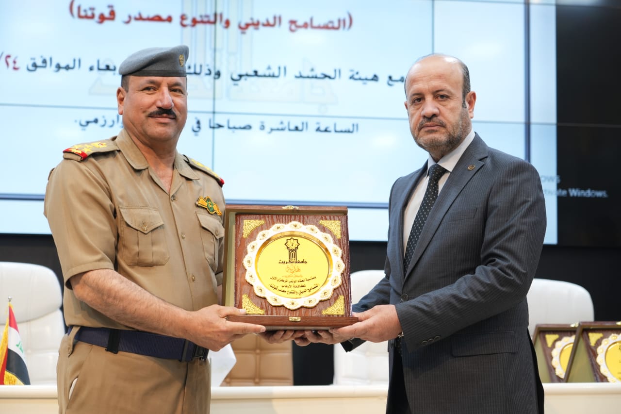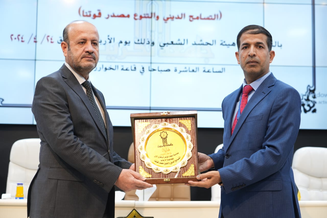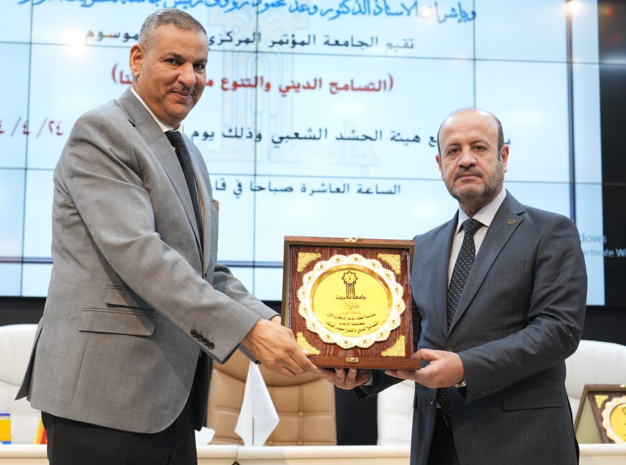 برعاية معالي وزير التعليم العالي والبحث العلمي الدكتور نعيم العبودي وبإشراف الاستاذ الدكتور وعد محمود رؤوف رئيس جامعة تكريت وبالتعاون مع هيئة الحشد الشعبي وبحضور الشيخ محمد حسن عطية نائب رئيس مجلس محافظة صلاح الدين و مساعدي رئيس الجامعة للشؤون العلمية و الاداري وعددٍ من اعضاء مجلس الجامعة وشخصيات دينية وأمنية وثقافية وإجتماعية واكاديمية اقامت رئاسة جامعة تكريت اليوم الاربعاء الموافق 24/4/2024 وعلى قاعة الخوارزمي مؤتمرها العلمي المركزي الاول الموسوم (التسامح الديني والتنوع مصدر قوتنا) .