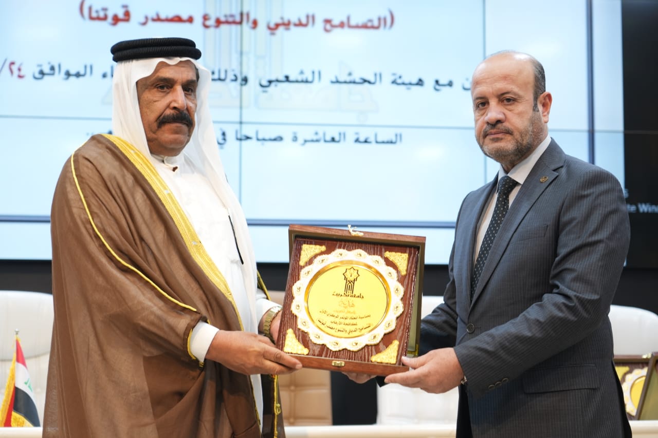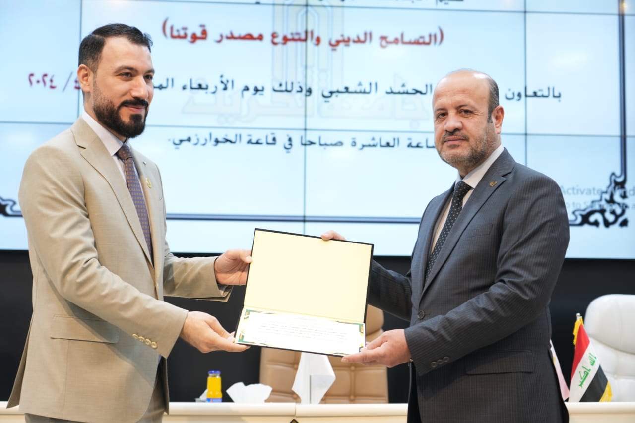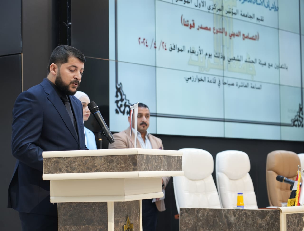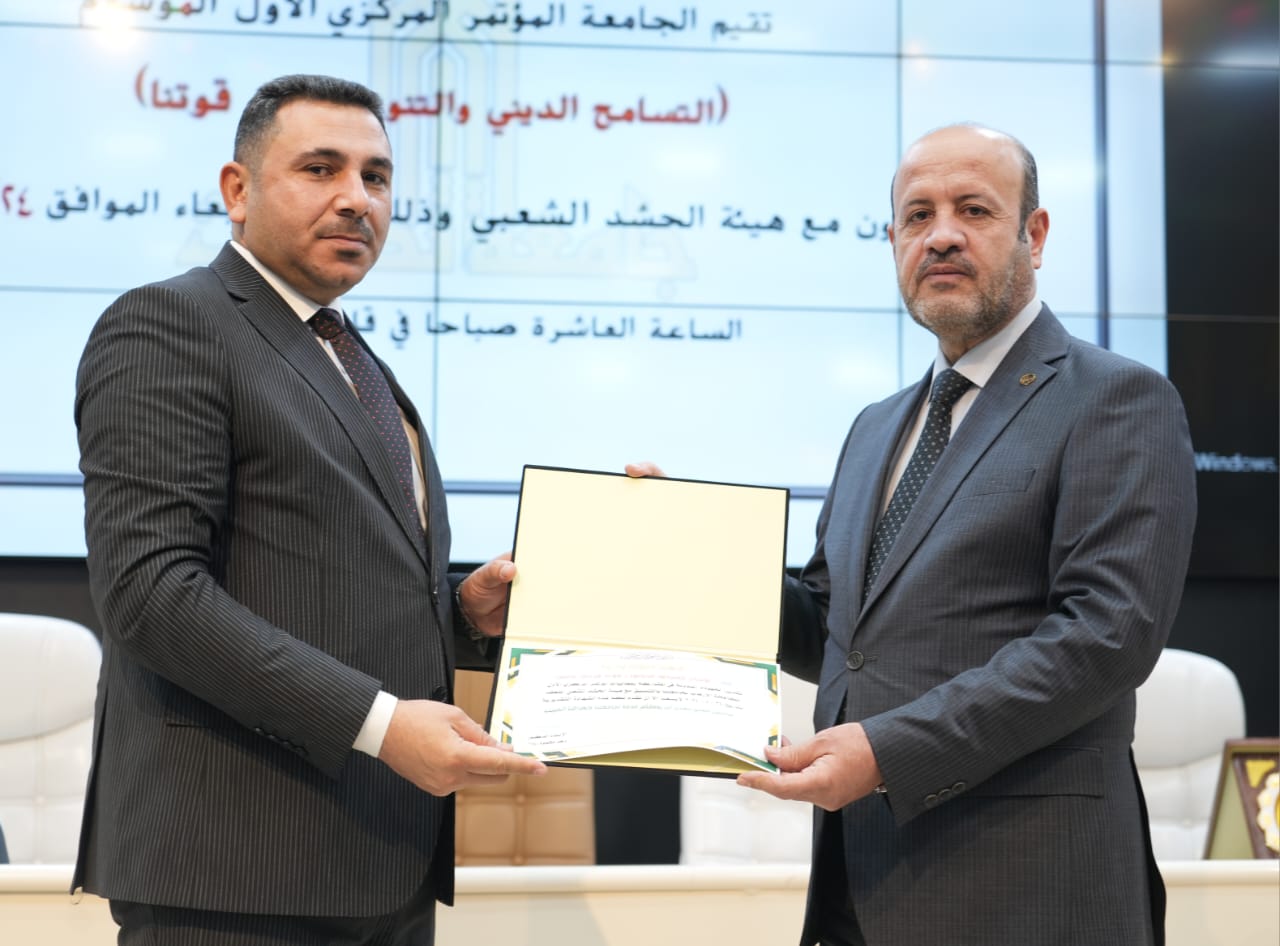 برعاية معالي وزير التعليم العالي والبحث العلمي الدكتور نعيم العبودي وبإشراف الاستاذ الدكتور وعد محمود رؤوف رئيس جامعة تكريت وبالتعاون مع هيئة الحشد الشعبي وبحضور الشيخ محمد حسن عطية نائب رئيس مجلس محافظة صلاح الدين و مساعدي رئيس الجامعة للشؤون العلمية و الاداري وعددٍ من اعضاء مجلس الجامعة وشخصيات دينية وأمنية وثقافية وإجتماعية واكاديمية اقامت رئاسة جامعة تكريت اليوم الاربعاء الموافق 24/4/2024 وعلى قاعة الخوارزمي مؤتمرها العلمي المركزي الاول الموسوم (التسامح الديني والتنوع مصدر قوتنا) .