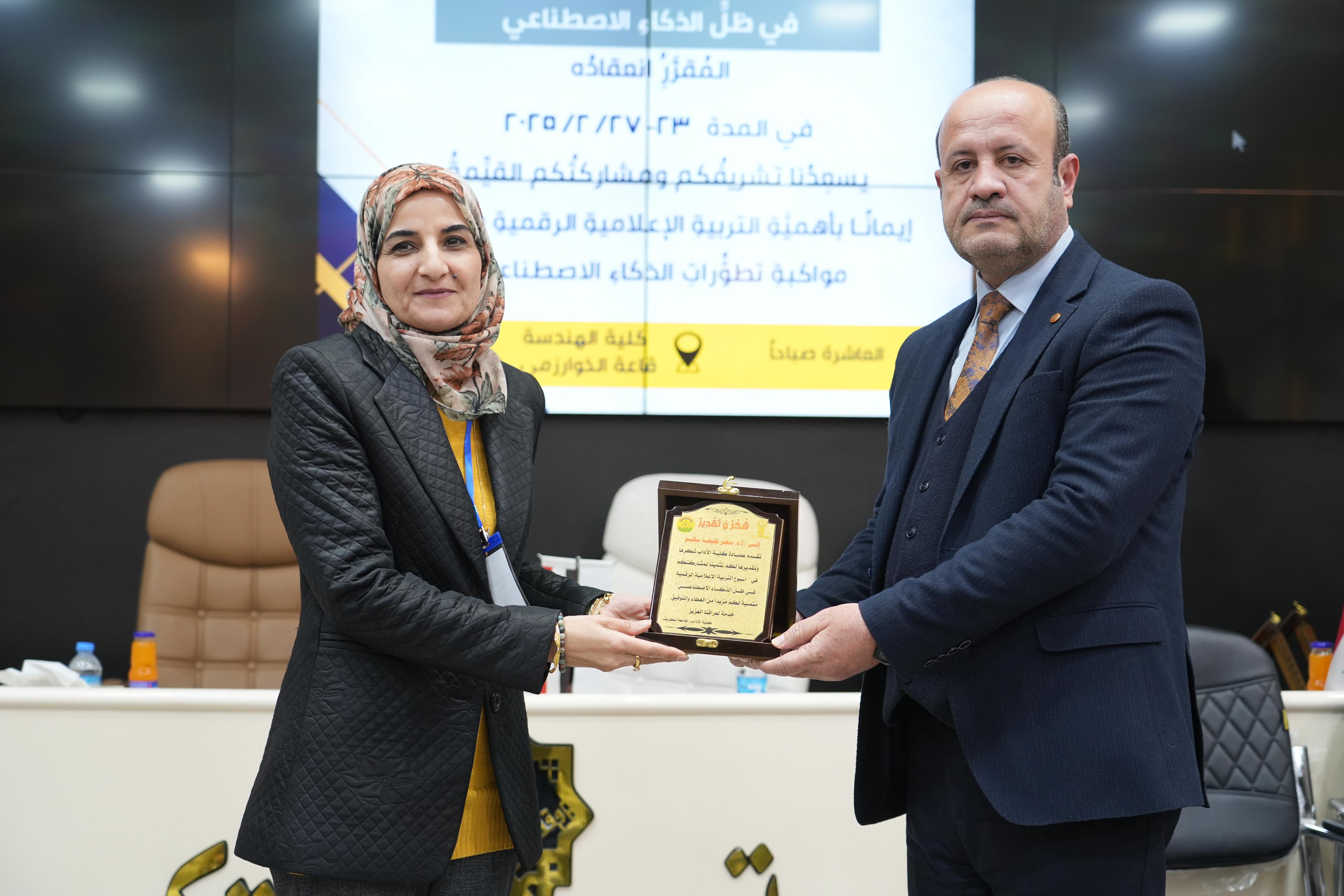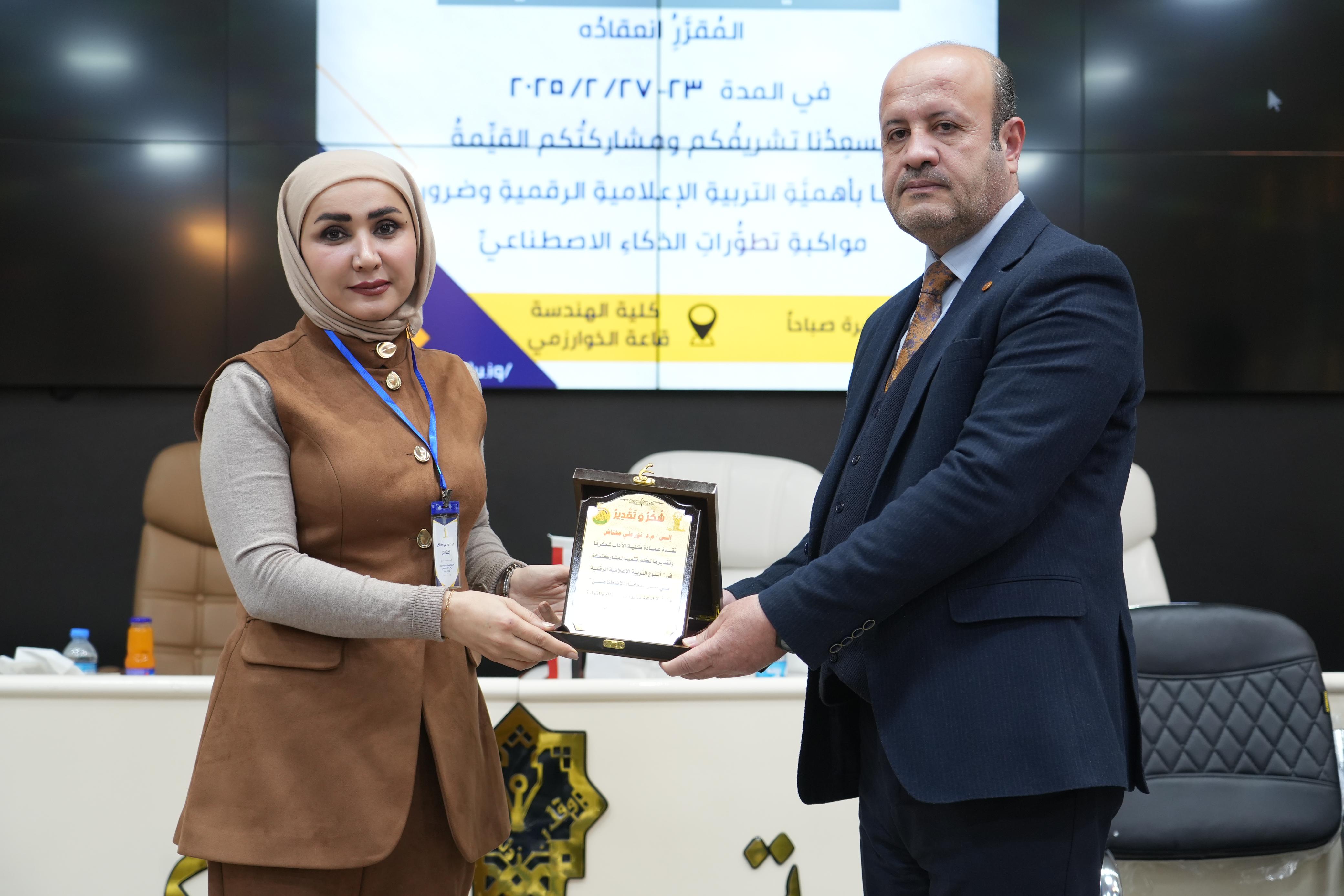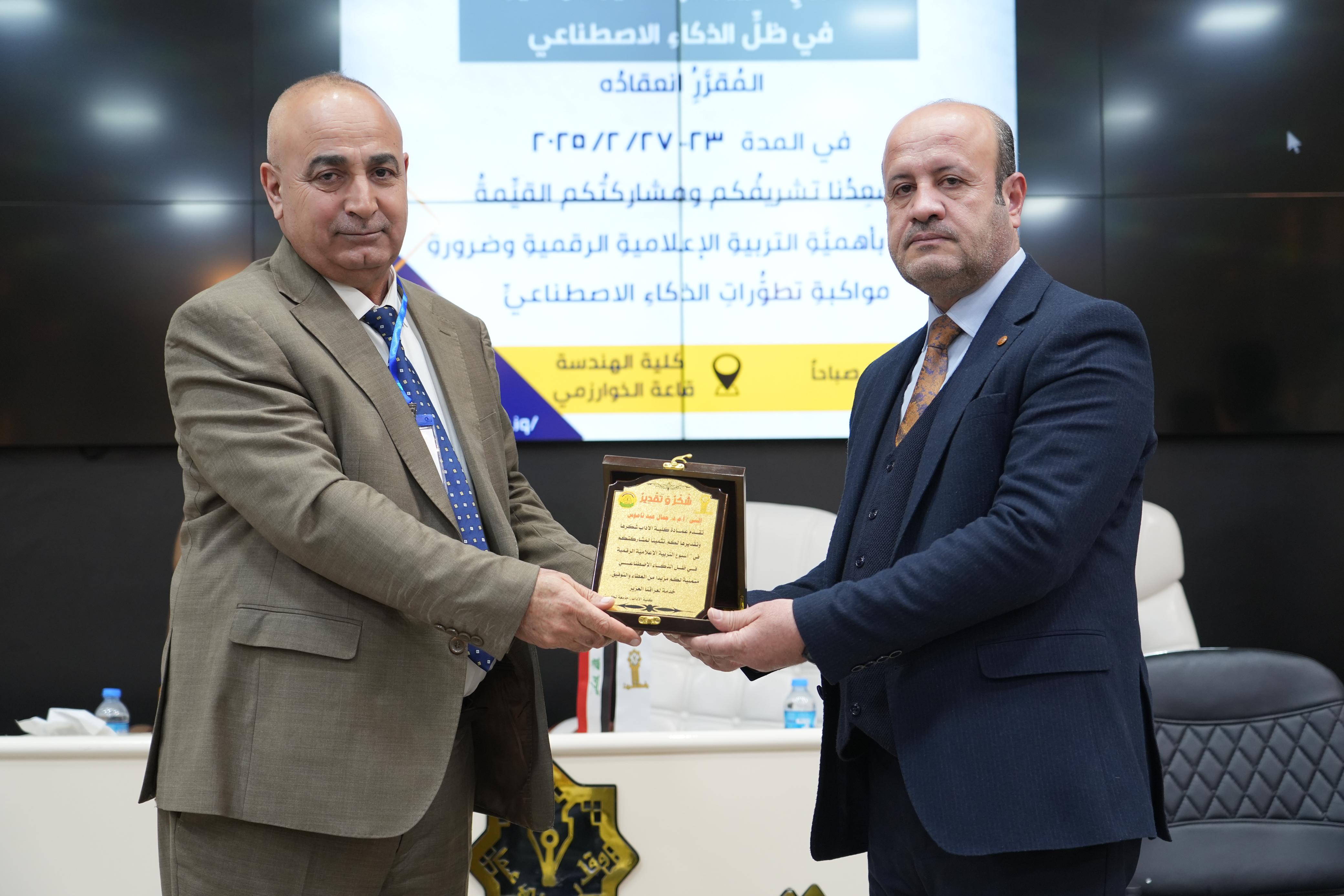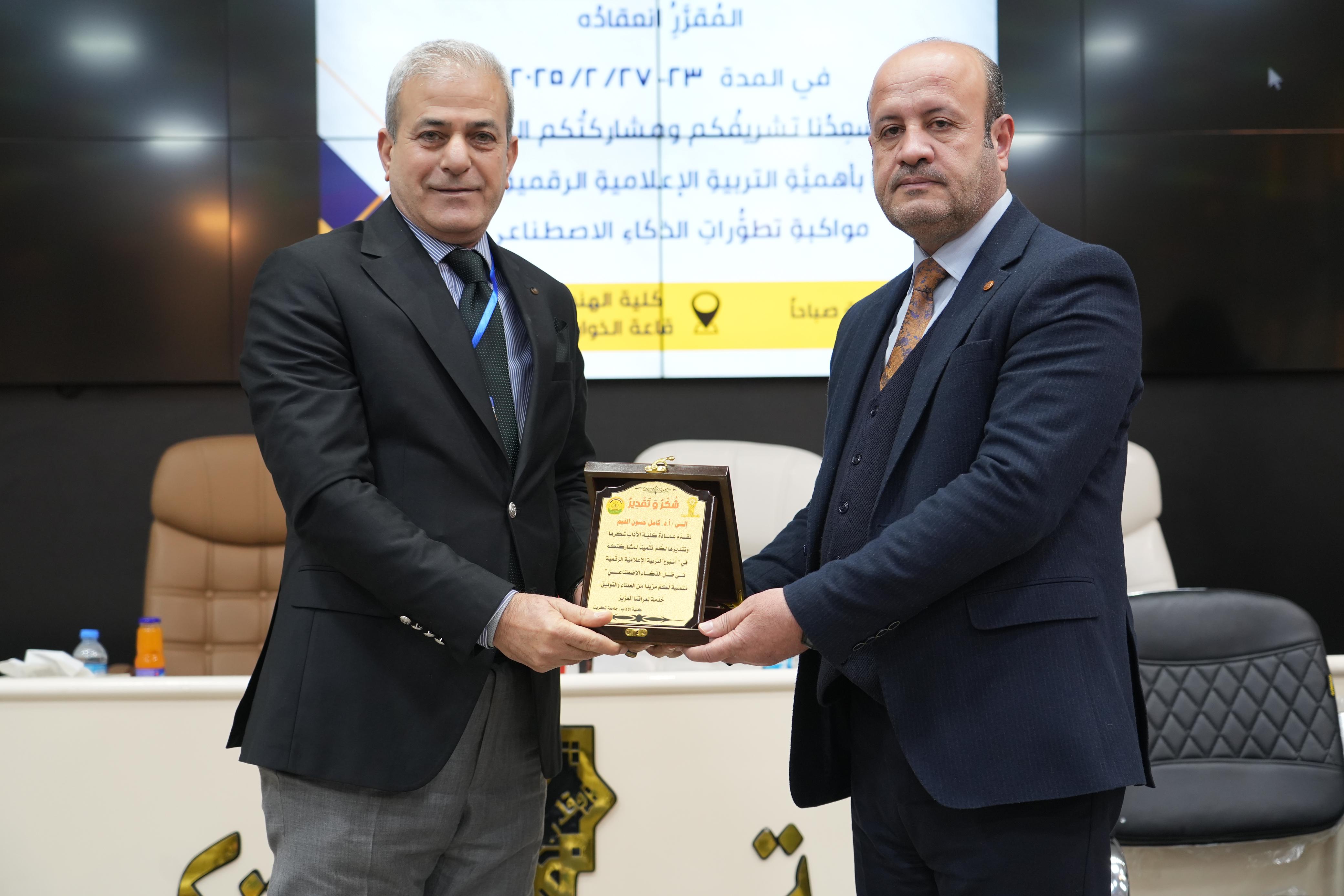 بعدها كلمة الدكتور خميس الخزرجي رئيس قسم الاعلام تحدث عن أهمية استخدام تطبيقات الذكاء الاصطناعي وتقنياته في العمل الإعلامي وبخاصة في صناعة الأخبار وبثها، وأكدا ان هذه التقنيات تمثل ثورة جديدة في المعرفة والمعلومات والإعلام وسوف تمثل مجالا واسعا للدراسة والبحث الإعلامي وان من المهم الاستفادة منها وتوظيفها بطريقة علمية وموضوعية لخدمة المجتمع