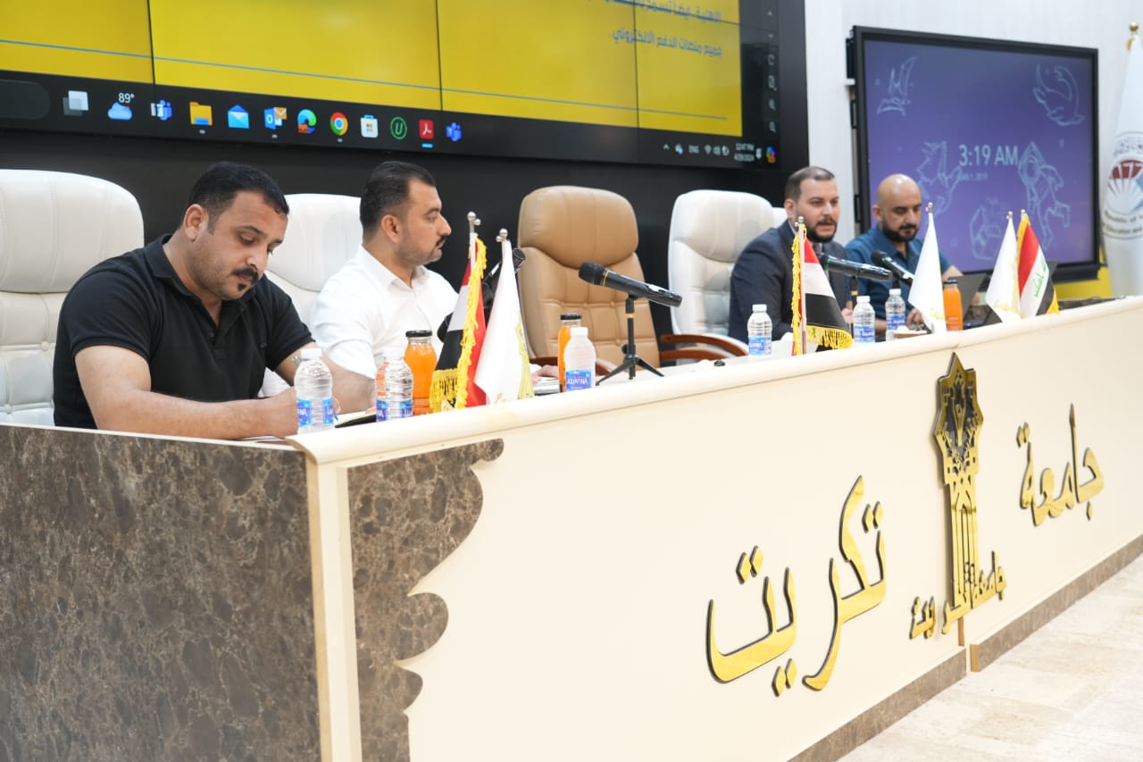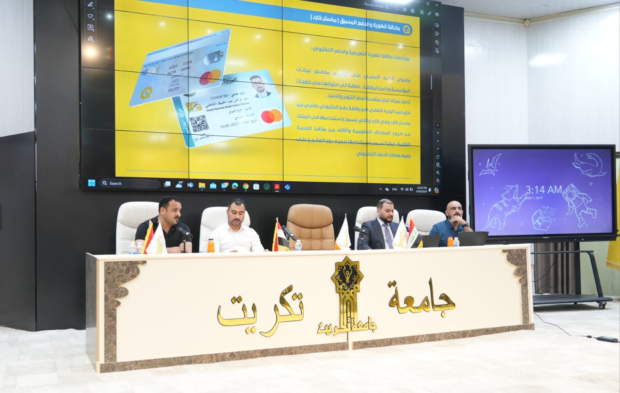 استناداً الى توجهيات رئاسة مجلس الوزراء ووزارة التعليم العالي والبحث العلمي ووزارة المالية وبحضور رئيس جامعة تكريت الاستاذ الدكتور وعد محمود رؤوف والاستاذ المساعد الدكتور فؤاد فرحان حسين مساعد رئيس الجامعة للشؤون الادارية وعددٍ من عمداء الكليات مسؤولي شعب الحسابات والتدقيق ، اقامت الجامعة وعلى قاعة الخوارزمي اليوم الاثنين الموافق 29/4/2024 ندوة للتعريف بتطبيق التحصيل الالكتروني تطبيق نظام المدن الذكية وكيف تدار منصة جابي وكيفية الدخول الى هذه المنصة ومتابعة استحصال المبالغ الواردة الالكترونياً.
