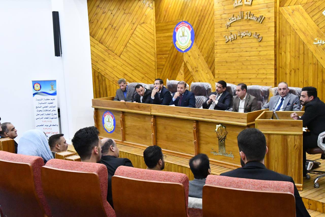 بعدها واصل جولته بزيارة كلية التربية للعلوم الإنسانية، إذ حضر فعاليات المؤتمر العلمي السابع عشر الخاص بمناقشة بحوث التخرج لطلبة المراحل المنتهية للعام الدراسي (2025–2026)، والذي تقيمه الكلية، حيث اطلع على عدد من البحوث العلمية المقدمة من الطلبة، مشيداً بالجهود المبذولة من قبل اللجان العلمية والتدريسية في دعم البحث العلمي وتشجيع الطلبة على تقديم دراسات علمية تسهم في خدمة المجتمع.