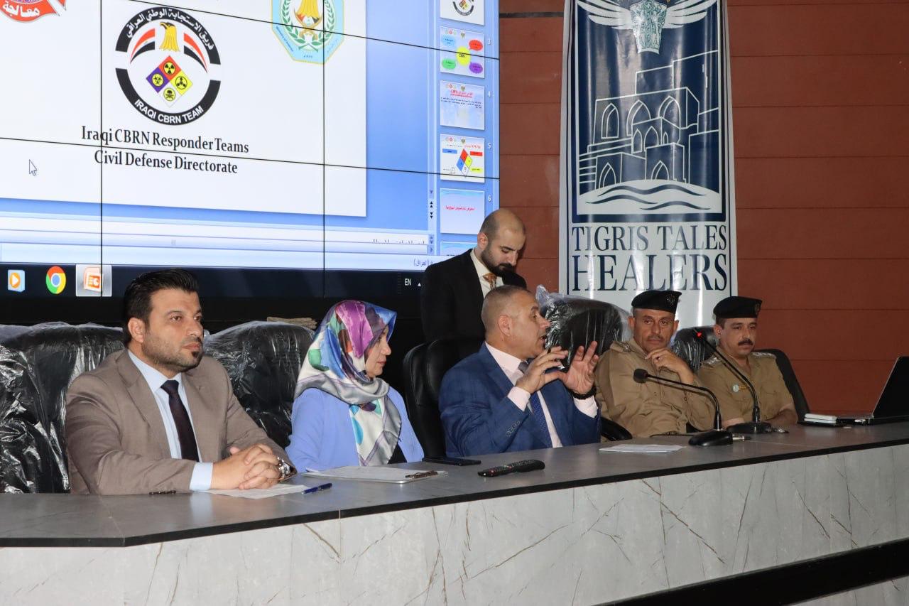 برعاية الاستاذ الدكتور وعد محمود رؤوف رئيس جامعة تكريت وبأشراف الاستاذ الدكتور وسام سهيل نجم عميد كلية الطب وبالتعاون مع مديرية الدفاع المدني في صلاح الدين اقامت شعبة السلامة والامن الكيميائي والبايلوجي في رئاسة الجامعة دورة وممارسة ميدانية حول تطبيق خطط الطوارئ والاخلاء للحد من مخاطر الكوارث تستهدف مسؤولي المختبرات التعليمية والبحثية من التدريسيين وخصوصا المعينين الجدد وطلبة الدراسات العليا بالاضافة الى فرق الحماية الذاتية والدفاع المدني بالجامعة وتناولت التعريف بأنواع الحرائق ومسبباتها ووانواع حالات الطواريء والتدريب النظري والعملي للحد من حالات الطواريء والحرائق وطرق السيطرة عليها وكيفية مواجهتها والتعامل معها في حال حدوثها وتضمنت ممارسة ميدانية لخطط الطواريء والاخلاء ومكافحة الحريق.