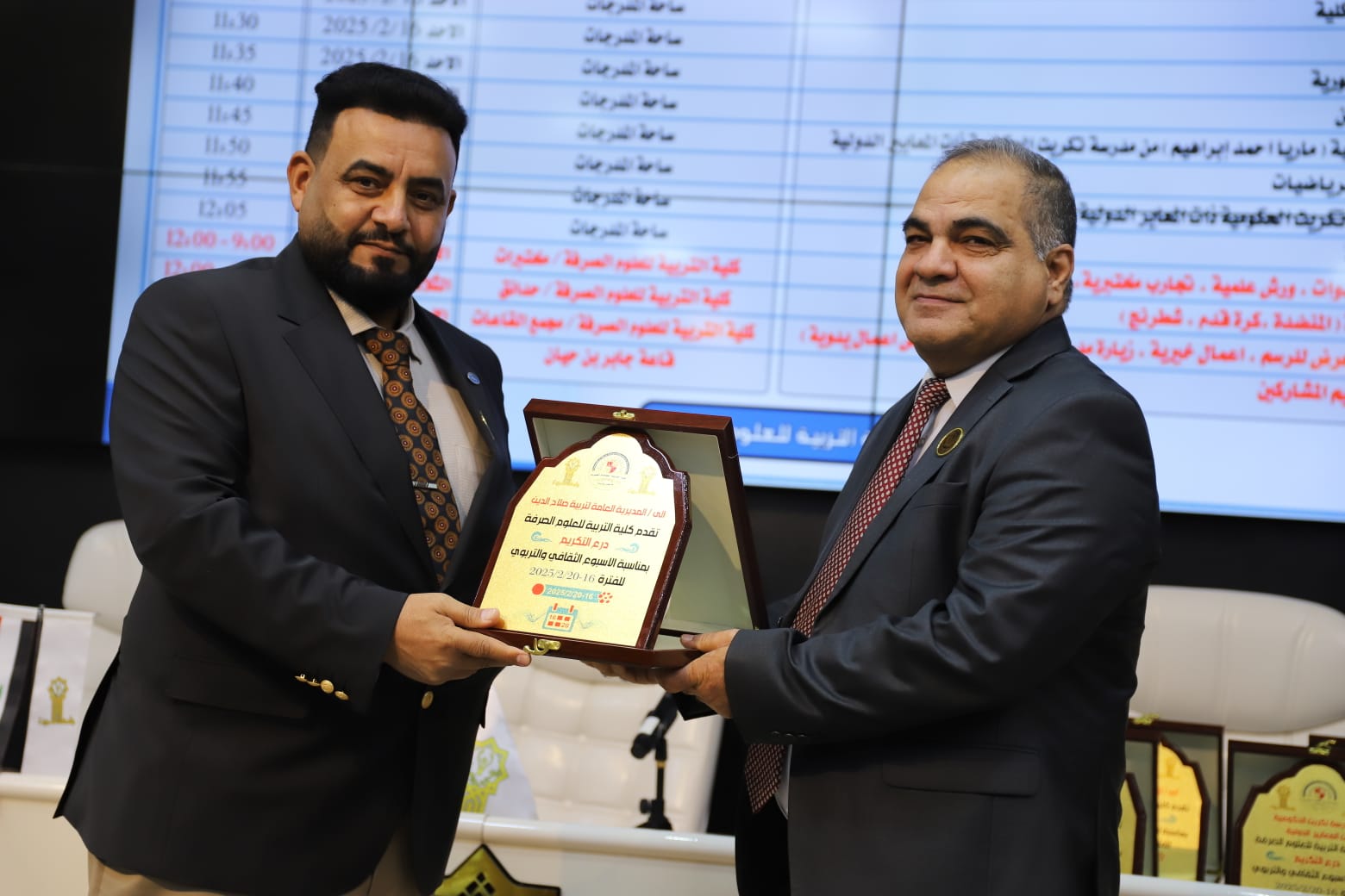 برعاية الاستاذ الدكتور وعد محمود رؤوف رئيس جامعة تكريت وبإشراف الاستاذ الدكتور علي عبدالمجيد شهاب عميد كلية التربية للعلوم الصرفة وبالتعاون مع مديرية تربية صلاح الدين وبحضور مساعدي رئيس الجامعة للشؤون العلمية والادارية.