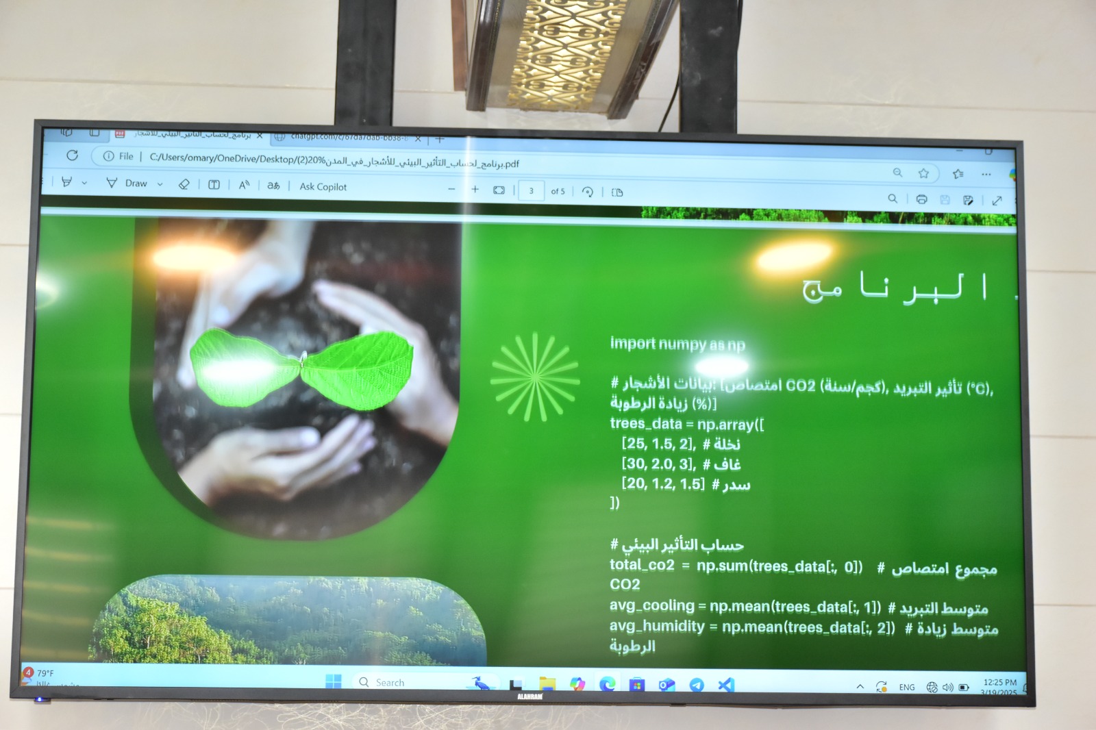 تنفيذا لتوجيهات السيد رئيس جامعة تكريت الاستاذ الدكتور وعد محمود رؤوف بضرورة الاعتناء باليوم الوطني للتشجير وتقديم الأفكار التي تنسجم مع خدمة البيئة،أقامت كلية علوم الحاسوب والرياضيات مسابقة “EcoCode – كود من أجل البيئة” احتفاءً باليوم الوطني للتشجير في خطوة تعكس التزامها بتعزيز الوعي البيئي من خلال التكنولوجيا، أطلقت كلية علوم الحاسوب والرياضيات مسابقة “EcoCode – كود من أجل البيئة”، وهي مسابقة برمجية مبتكرة تهدف إلى توظيف مهارات البرمجة والذكاء الاصطناعي في تطوير حلول تقنية تدعم الاستدامة البيئية. جاء تنظيم المسابقة تحت إشراف الأستاذ المساعد الدكتور محمود ماهر صالح، وذلك لترسيخ ثقافة التشجير وحماية المساحات الخضراء عبر الابتكار التكنولوجي.
