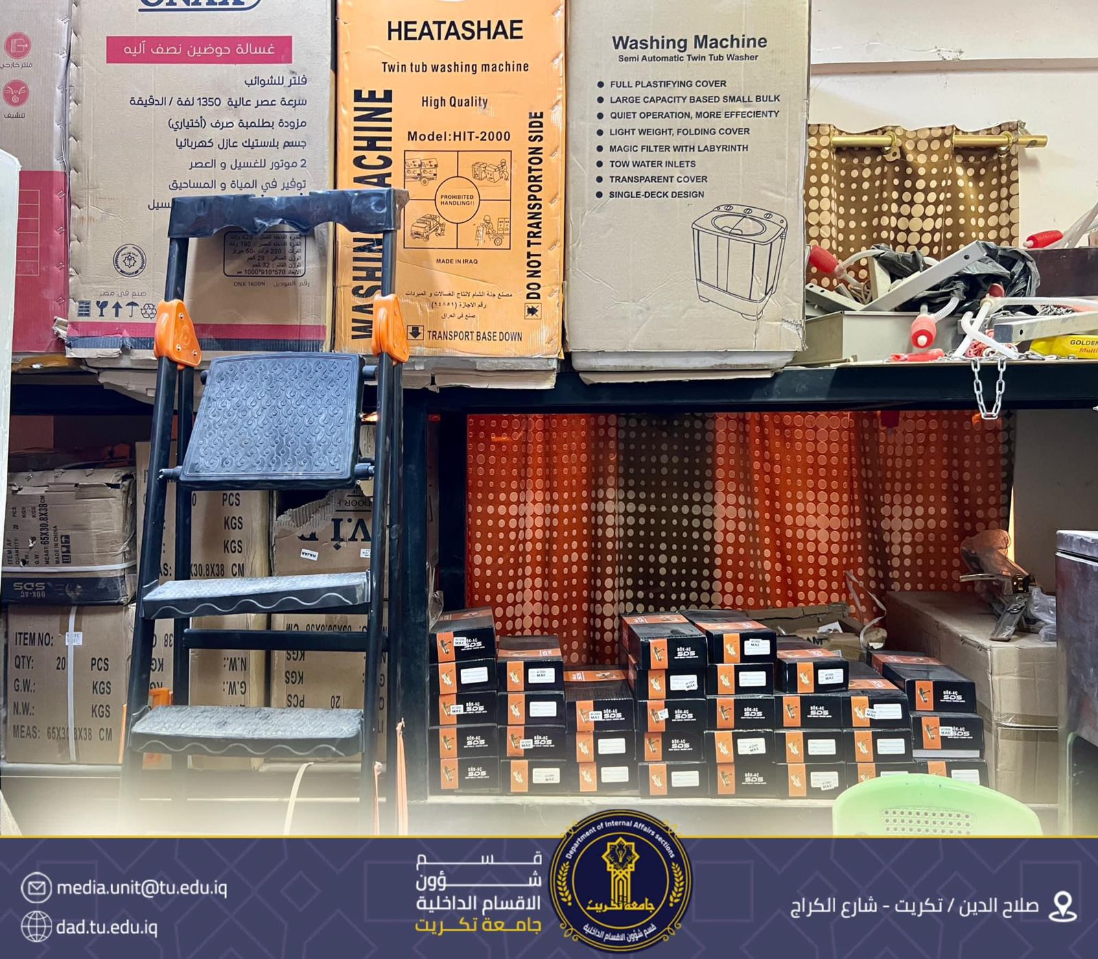 شرعت كوادر الصيانه في مديرية الاقسام الداخلية بجامعة تكريت بصيانه المكيفات والغسالات العاطلة وتجهيز المجمعات ب(١٠٠) طباخ لكافة الغرف كذلك قص الأدغال والمكافحة للحشرات والقوارض والافات وتصليح غطاس المياه الثقيلة ورفع النفايات من كافة المجمعات