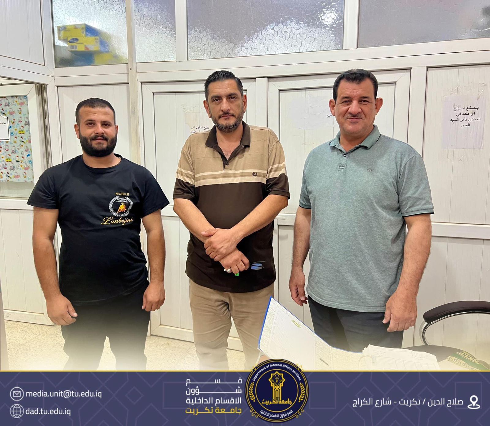 بتوجيه مباشر من قبل السيد رئيس جامعة تكريت الاستاذ وعد محمود رؤوف ومن اجل أنجاز كافة الأعمال و تهيئة جميع الظروف المناسبة للطلبة مع بدء الأمتحانات النهائية
