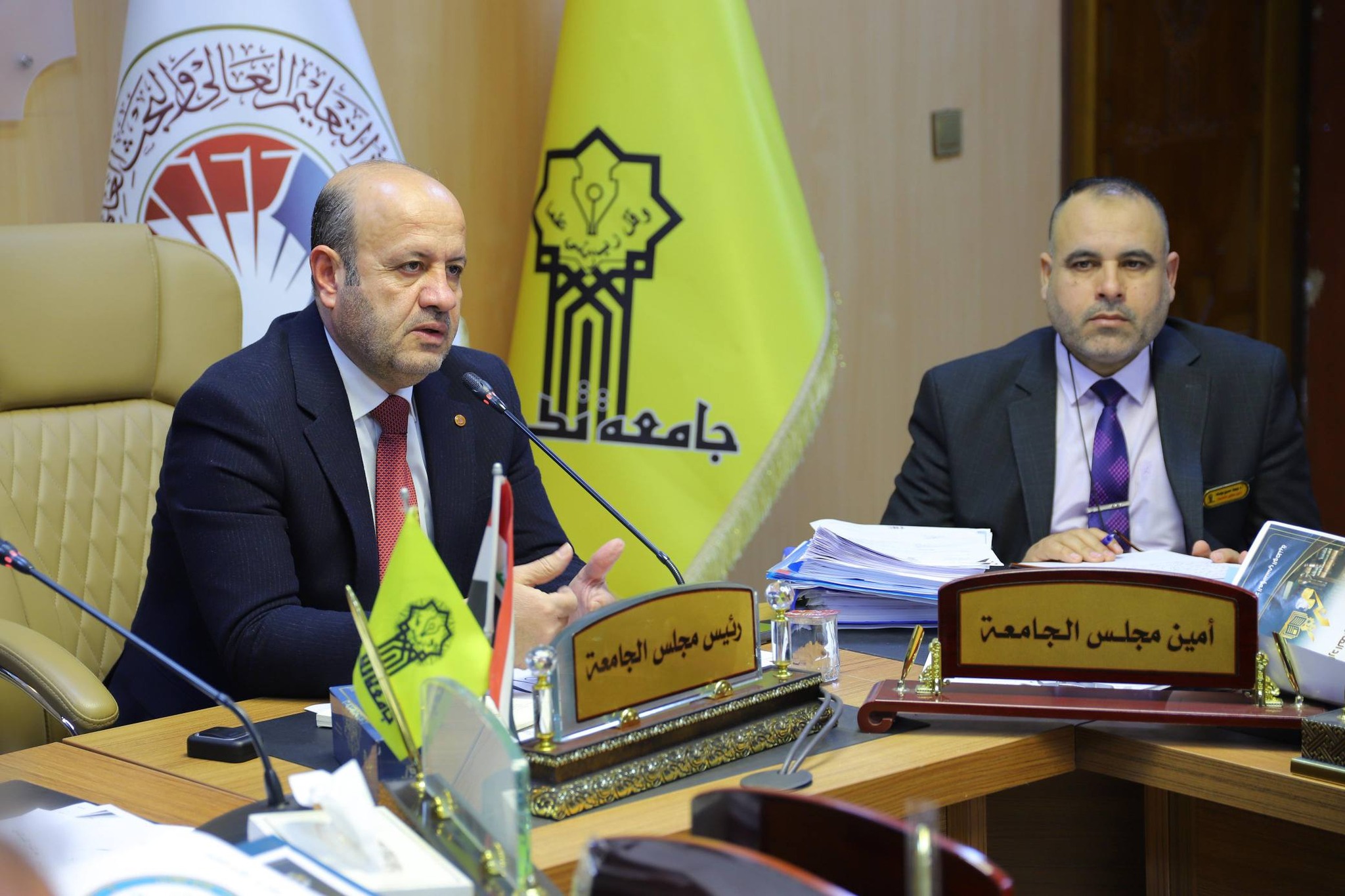 واستهل المجلس أعماله بمناقشة توجيهات رئاسة الجامعة المتعلقة بتطوير الأداء الأكاديمي والإداري بما ينسجم مع خطط وزارة التعليم العالي والبحث العلمي ويعزز جودة التعليم الجامعي، مع التأكيد على أن متطلبات الاعتماد المؤسسي تمثل أولوية استراتيجية في عمل الجامعة خلال المرحلة الحالية، الأمر الذي يتطلب تظافر الجهود وتكامل الأدوار بين الكليات والتشكيلات كافة لضمان تحقيق المعايير المعتمدة وتهيئة البيئة الجامعية وفق أفضل الممارسات الأكاديمية والإدارية.