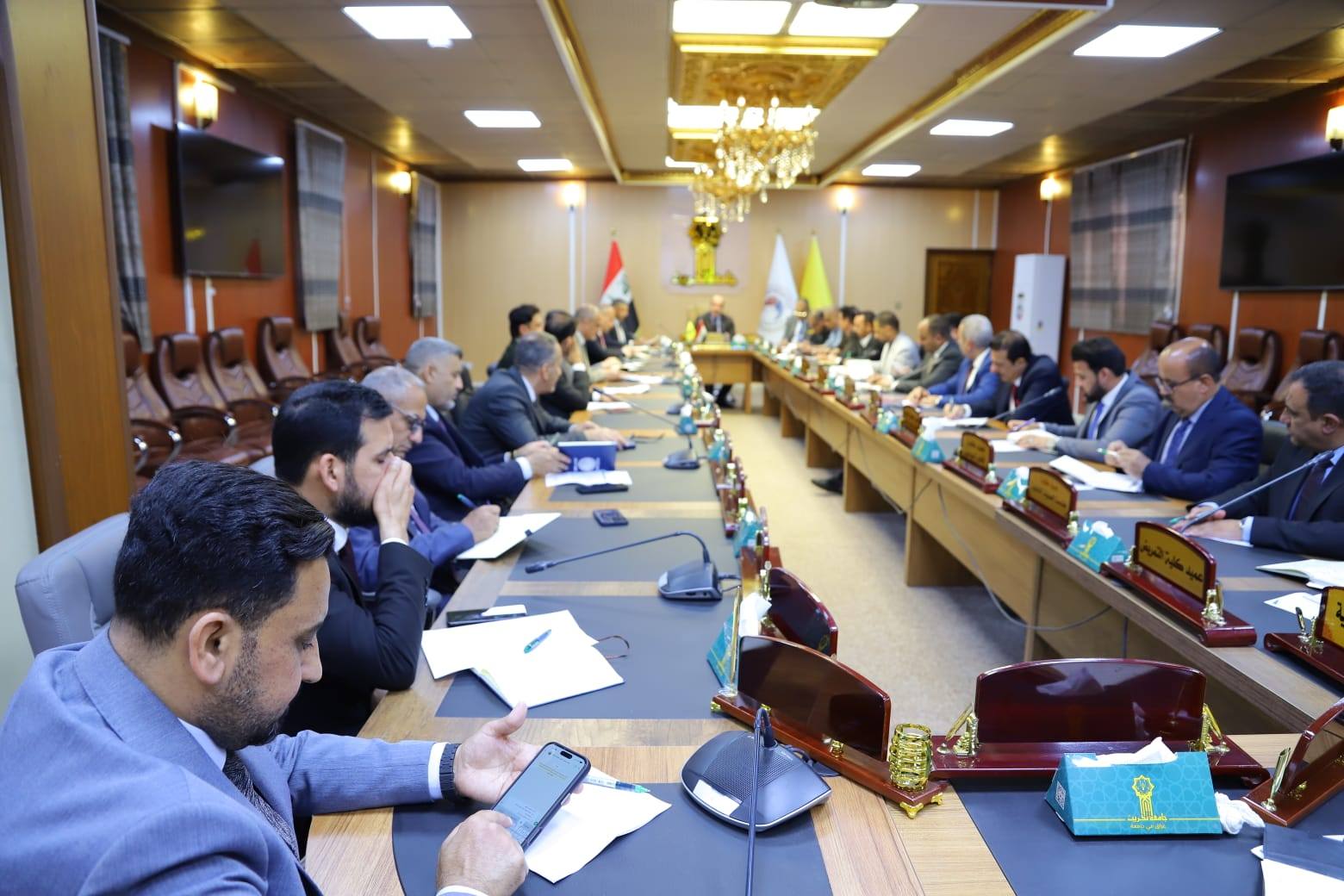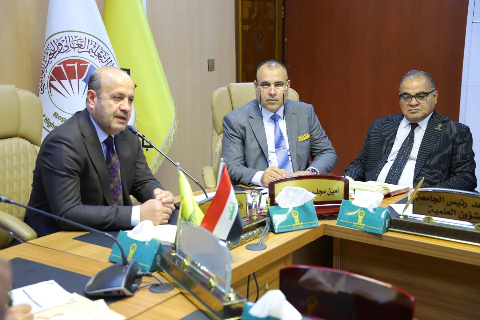 واستهلت الجلسة بمناقشة عدد من التوجيهات المهمة الصادرة عن رئاسة الجامعة، والتي تهدف إلى تطوير الأداء الأكاديمي والإداري بما ينسجم مع توجهات وزارة التعليم العالي والبحث العلمي، وبما يسهم في تعزيز جودة التعليم والارتقاء بمستوى مخرجاته.