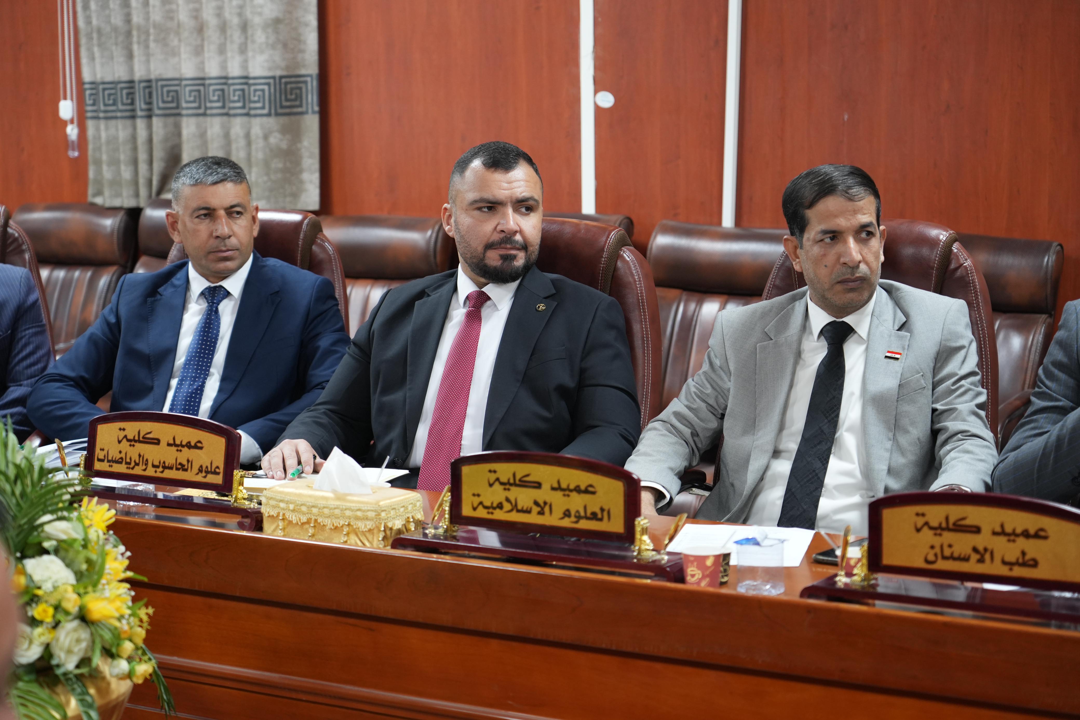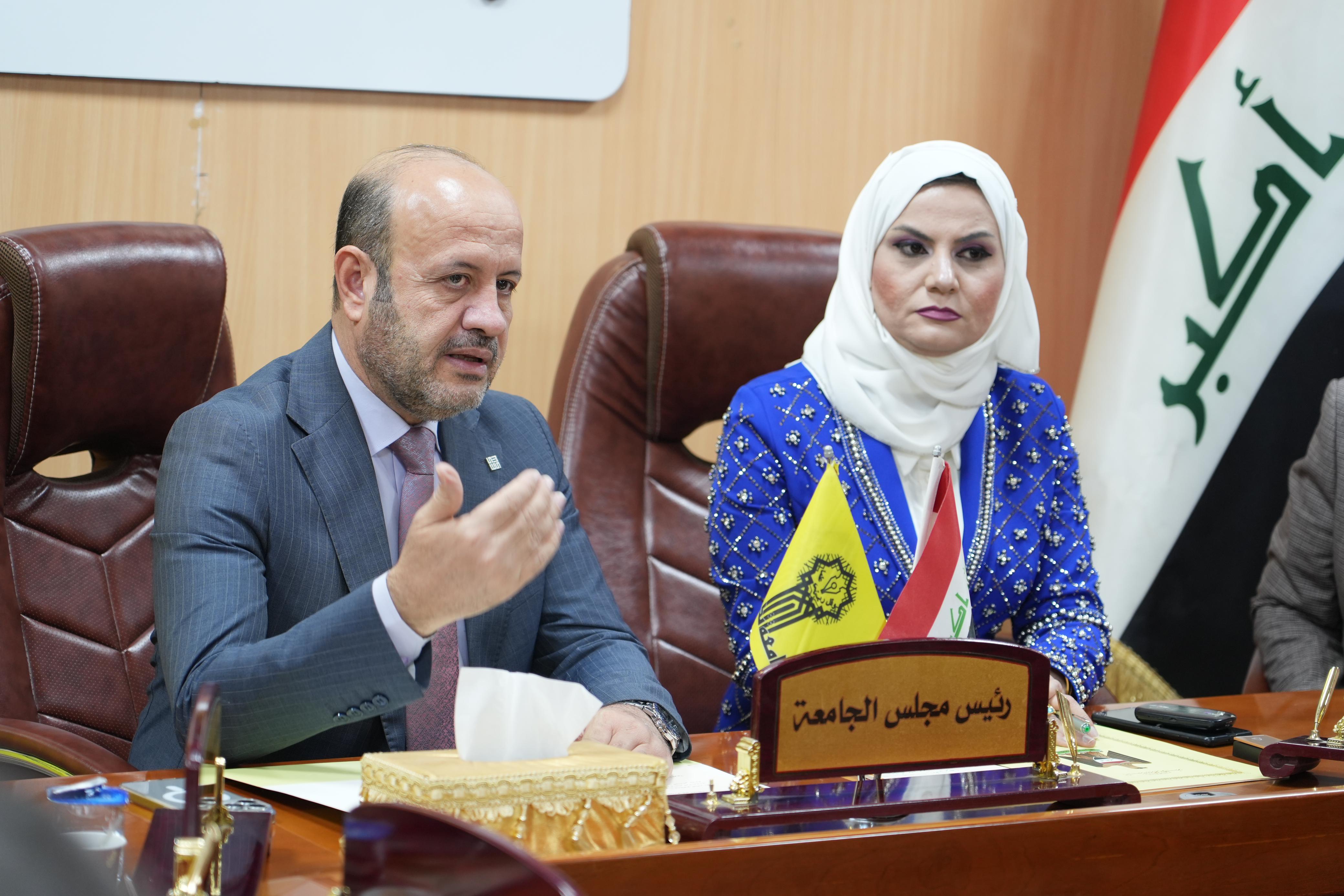 ترأس الاستاذ الدكتور وعد محمود رؤوف رئيس جامعة تكريت الجلسة التاسعة لمجلس الجامعة وبحضور السادة اعضاء المجلس اليوم الثلاثاء الموافق ١٦/ ٤/ ٢٠٢٤ افتتحت الجلسة بعد ترحيب السيد رئيس الجامعة بالسادة الحاضرين بأعطاء بعض التوجيهات الخاصة بسير العمل ناقش المجلس بعدها الفقرات المدرجة على جدول أعماله والتي كان من اهمها اعفاء اجور دراسية/ دراسات اولية/ موازي ودراسة مسائية وتخفيض اجور دراسية لطلبة دراسات عليا وترقيات علمية وتوصيات المؤتمر الوطني الاول للتعليم الاخضر بالاضافة الى استحداث دراسة مسائية/ قسم التفسير وعلوم القرآن وتصحيح اجازة دراسية وتمويل وتشغيل محطة تربية الاسماك وتمويل وتشغيل محطة ابحاث ابحاث بيجي الزراعية واحلال اعضاء في المكاتب الاستشارية كذلك تمت مناقشة العديد من الفقرات الاخرى المدرجة على جدول اعمال المجلس.