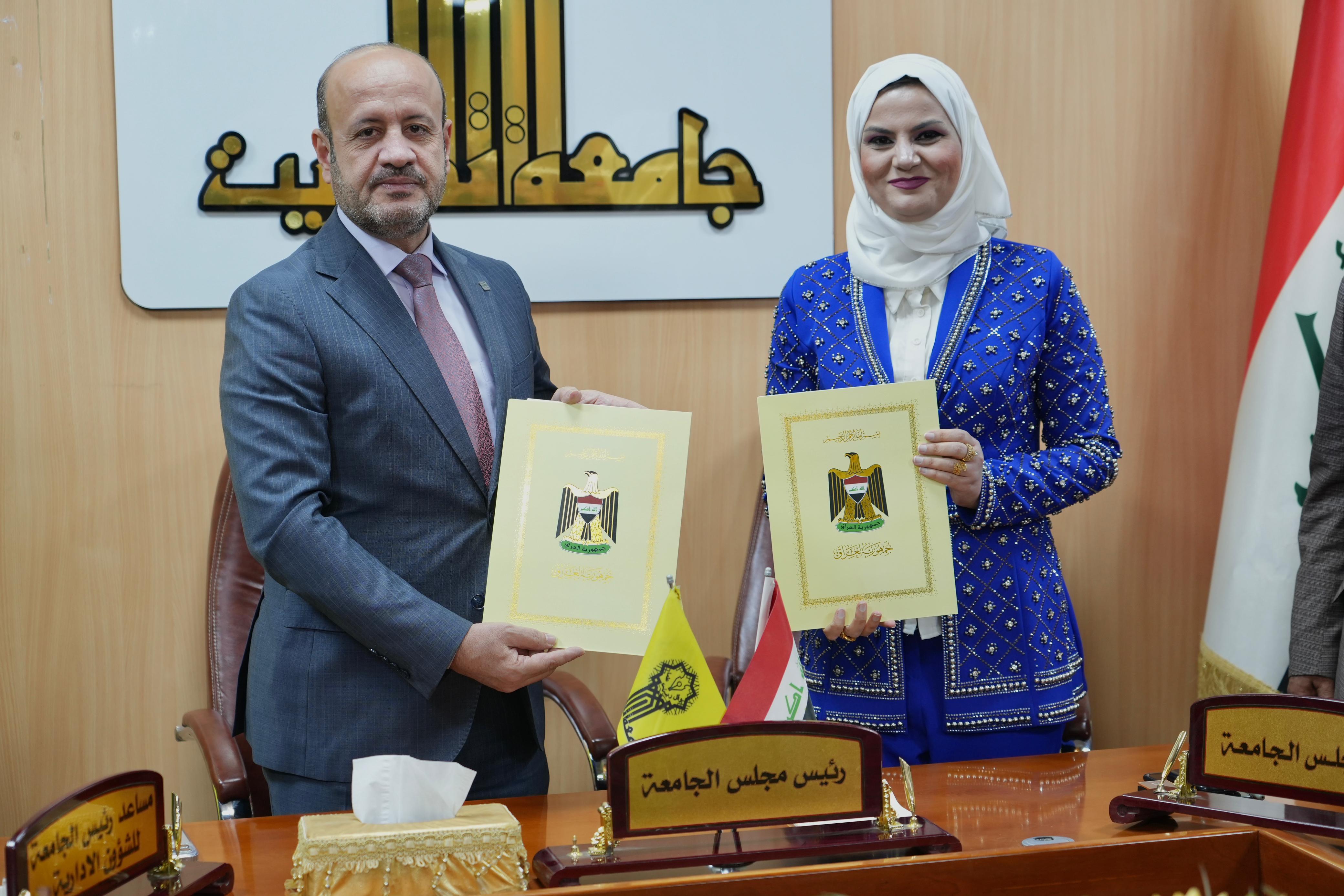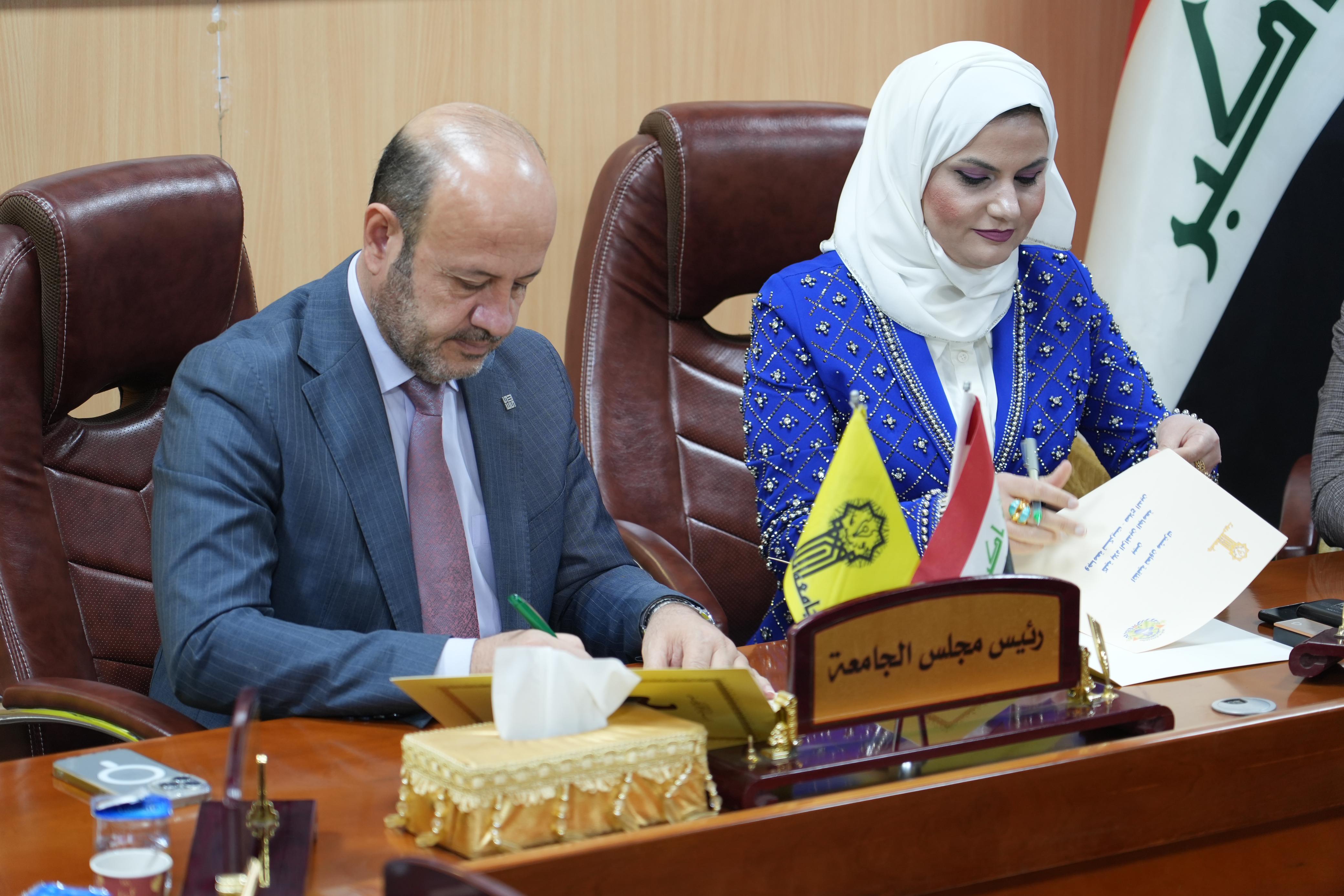 وفي ذات السياق حضرت الاستاذ الدكتورة رشا خليل عبد عميد كلية الرافدين الجامعة اجتماع المجلس حيث تم توقيع اتفاقية تعاون مشترك بين كلية بلاد الرافدين الجامعة وجامعة تكريت تضمنت عددا من الفقرات وتشكييل لجنة تنسيقية للتوأمة بين الطرفين.
