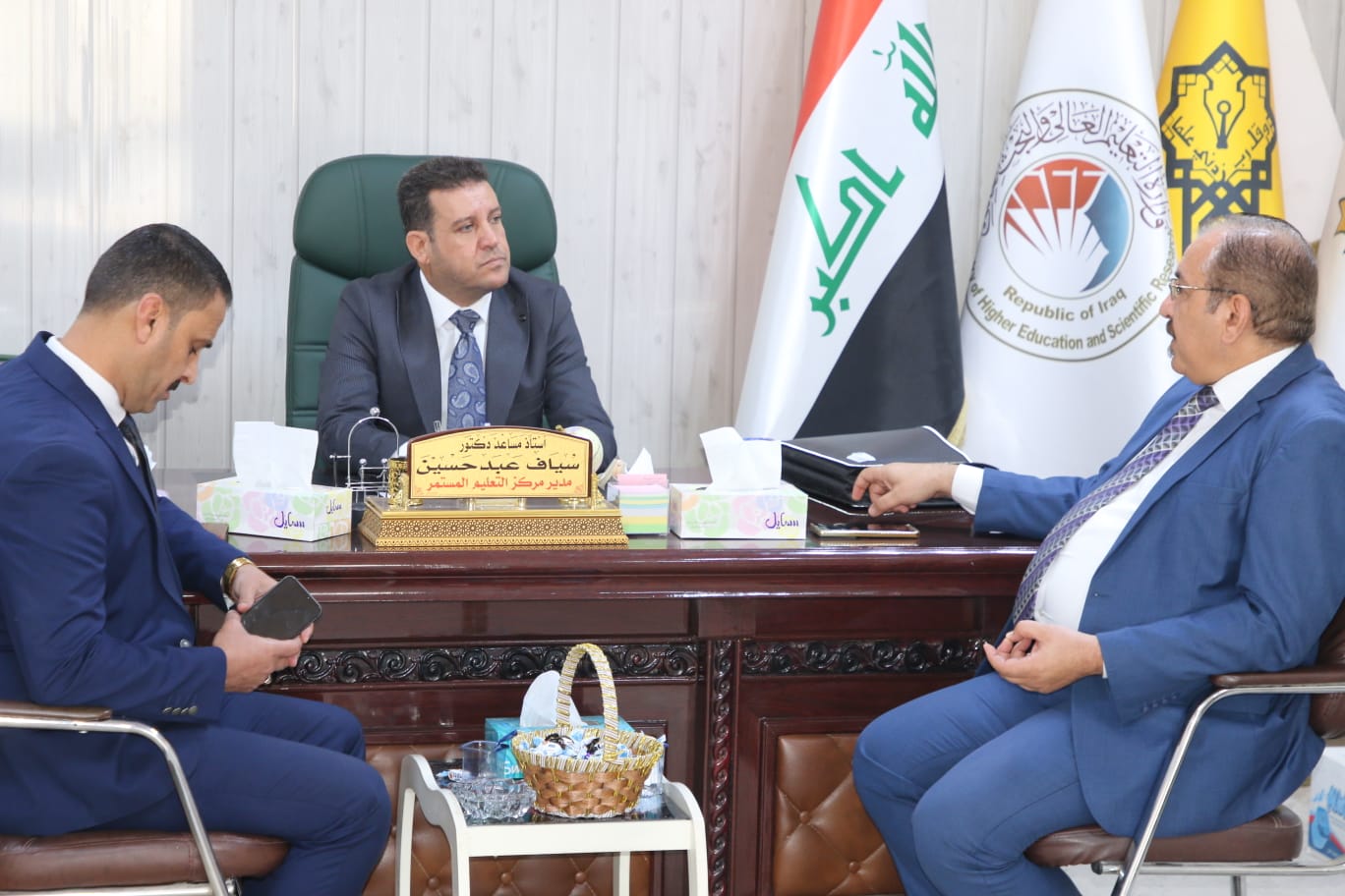 أستقبل مركز التعليم المستمر في الجامعة العراقية اللجنة الوزارية المكلفة من قبل وزارة التعليم العالي والبحث العلمي/ جهاز البحث والتطوير لتقييم اداء وجودة مركز التطوير والتعليم المستمر والتي تزور الجامعة والمكلفة بالاطلاع على واقع وعمل المراكز البحثية في الجامعات العراقية