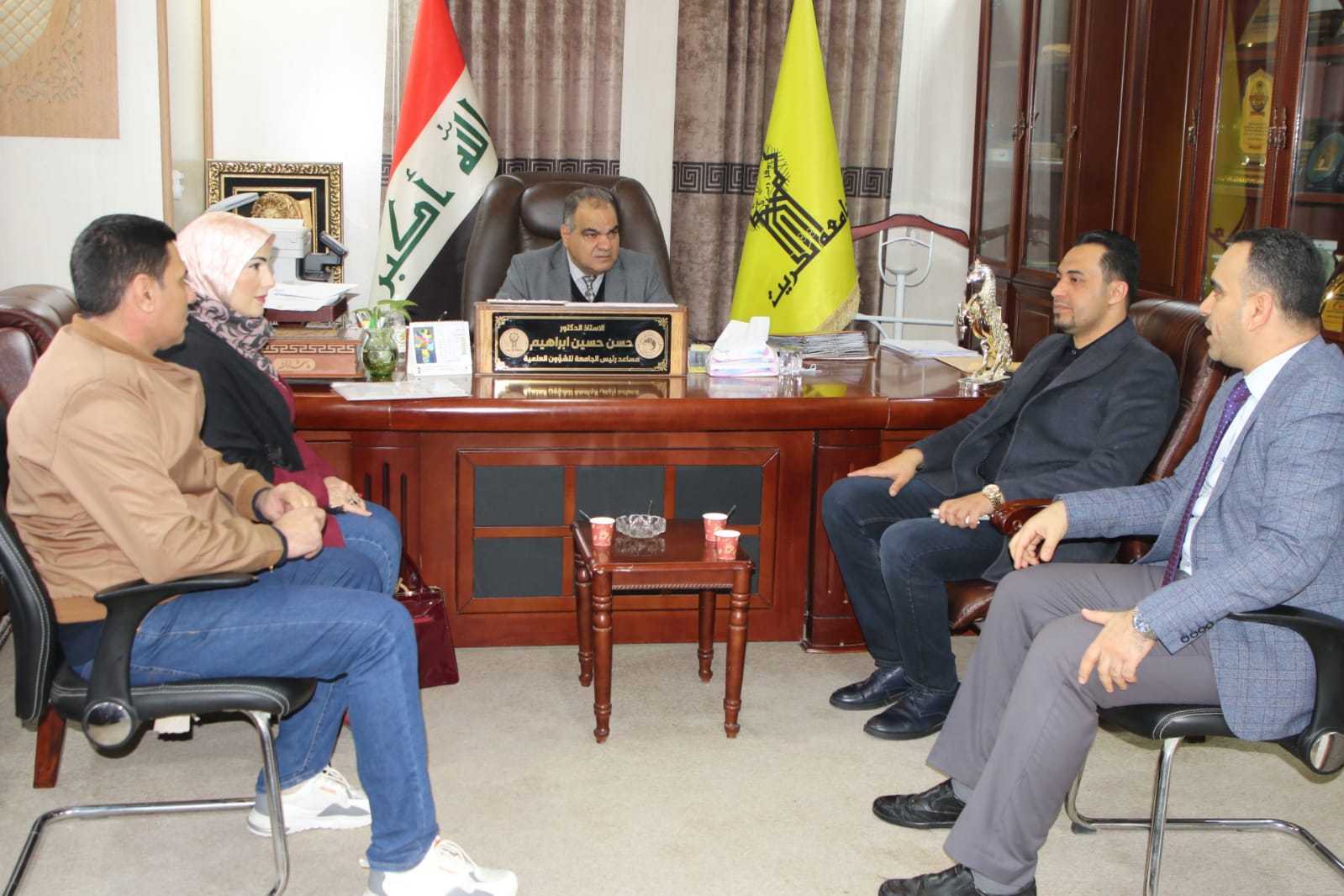 ضمن برنامج (ادرس في العراق) الذي اطلقته وزارة التعليم العالي والبحث العلمي/ دائرة البعثات والعلاقات الثقافية في وقت سابق من هذا العام للطلبة والباحثين العرب والأجانب للحصول على منح دراسية مجانية لنيل الشهادات الأولية والعليا وللاختصاصات كافة في الجامعات العراقية استقبل الأستاذ الدكتور حسن حسين ابراهيم مساعد رئيس جامعة تكريت في مكتبه بحضور الدكتور عبد الخالق سليمان مدير قسم العلاقات الثقافية في جامعة تكريت اول طالبة عربية من الجمهورية العربية السورية تلتحق بجامعة تكريت. وبعد الترحيب بالطالبة اكد مساعد رئيس الجامعة ان أبواب الجامعة مفتوحة وترحب بكل الطلاب وانها على اتم الاستعداد لاستقبالهم في رحابها. يذكر ان برنامج (ادرس في العراق) سيشمل ثمانية واربعون جامعة عراقية حكومية واهلية وبواقع (٥٧٨٤ ) منحة دراسية مجانية للطلبة الوافدين إضافة الى تأمين سكن خاص لهم فيما أعلنت بعض الجامعات عن توفر مقاعد للدراسة على النفقة الخاصة للمتقدمين وبواقع (١٠٥٣) مقعد دراسي.