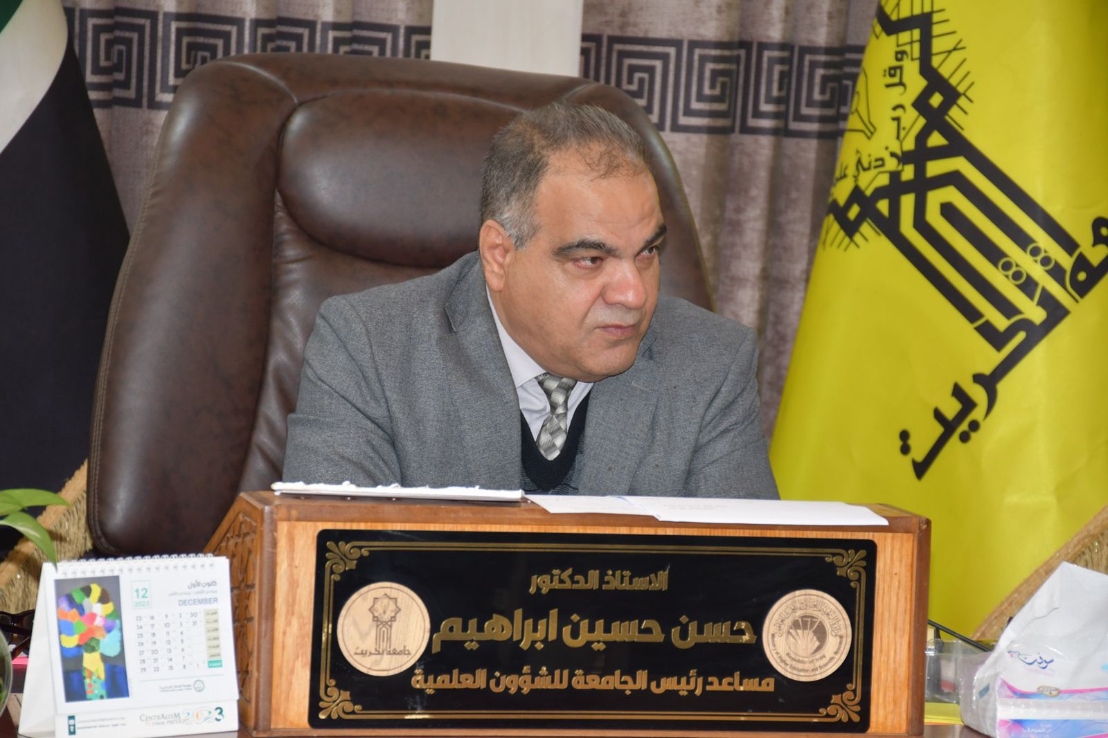 في اطار التعاون المشترك بين جامعة تكريت والمؤسسات الحكومية والعلمية ومؤسسات المجتمع استقبل الاستاذ الدكتور حسن حسين ابراهيم مساعد رئيس الجامعة للشؤون العلمية في مكتبه وفد العتبة الحسينية المكون من الدكتور حسن علي الوزني مسؤول ضمان الجودة في العتبة يرافقه الاستاذ احمد عباس الموسوي مسؤول العلاقات العلمية للعتبة الحسينية والذي يزور الجامعة لتقديم الدعوة للمشاركة بفعاليات المؤتمر الثاني بالتنمية والتطوير نرتقي والموسوم (فاعلية الجودة في تطوير الاداء المؤسسي) والذي ستعقد فعالياته برعاية العتبة الحسينية المقدسة وجامعة وارث الانبياء وكلية العلوم الاسلامية وقسم تطوير الموارد البشرية التابع للعتبة الحسينية. وسيتناول عدة محاور هي الدراسات الاسلامية والدراسات التنموية والدراسات الادارية والدراسات الاقتصادية بالاضافة الى الدراسات السياسية والقانونية.