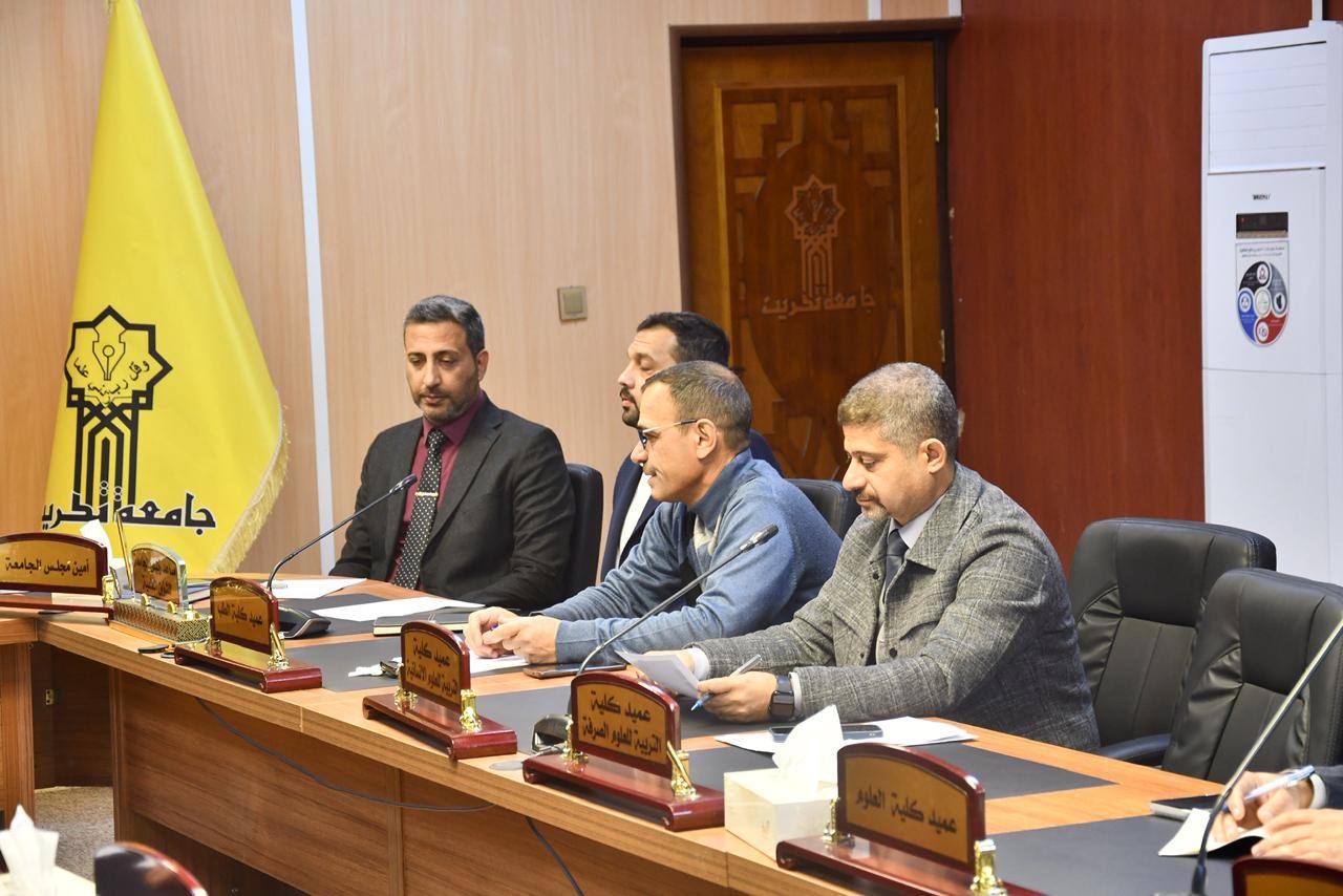 وتناول الاجتماع مناقشة إصدار النسخة الأولى من دليل عمل المجلات العلمية في الجامعة، والوقوف على أسباب خروج بعض المجلات من قاعدة البيانات العالمية (Scopus)، إضافة إلى بحث أخلاقيات البحث العلمي وأهمية إعادة تشكيل هيئات التحرير بما ينسجم مع معايير الاعتماد الدولي.