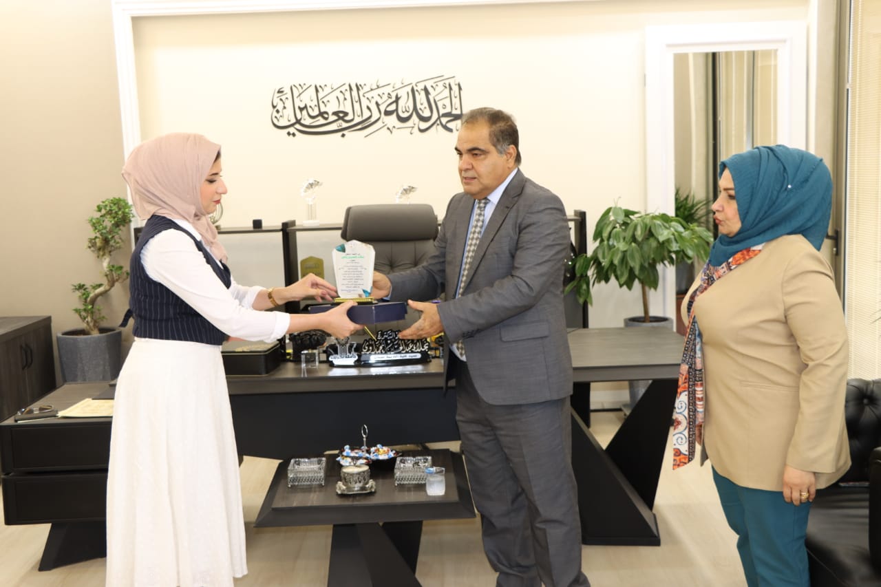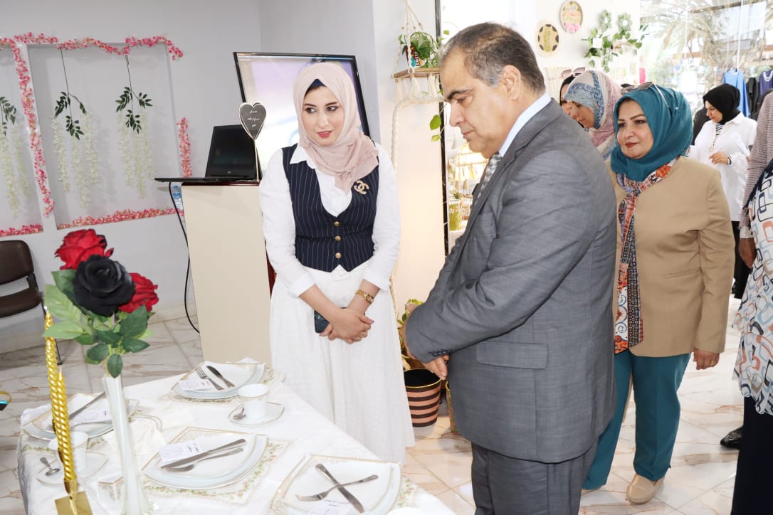 تنفيذاً لتوجيهات الاستاذ الدكتور وعد محمود رؤوف رئيس جامعة تكريت وفي اطار جولاته ومتابعاته المستمرة في كليات وأروقة الجامع افتتح الاستاذ الدكتور حسن حسين ابراهيم مساعد رئيس الجامعة للشؤون العلمية في كلية التربية للبنات معرض الابداعات النسوية الذي تضمن العديد من الأعمال اليدوية والنتاجات النسوية، وكان في استقباله السيدة عميد الكلية الاستاذ الدكتورة نجلاء عبدالحسين واجرى برفقتها على هامش الافتتاح جولة في اقسام وقاعات الكلية للاطلاع على واقعها وسير العمل والوقوف على اهم المشاكل التي تواجه الكلية لايجاد الحلول المناسبة لها. وفي ختام الزيارة اثنى مساعد رئيس الجامعة على الجهود المبذولة من قبل عمادة الكلية متمنيا الموفقية للجميع.