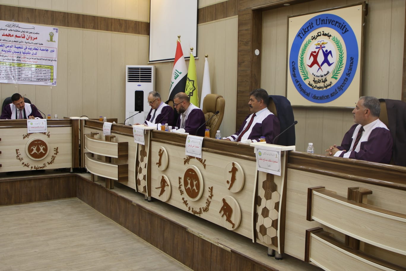 (دور جامعة تكريت في تنمية الوعي الفكري والأمني لدى طلبتها وسبل تقويمه) فيما كانت المناقشة الثالثة لطالب الماجستير صالح احمد داشان سایر من كلية التربية للعلوم الانسانية