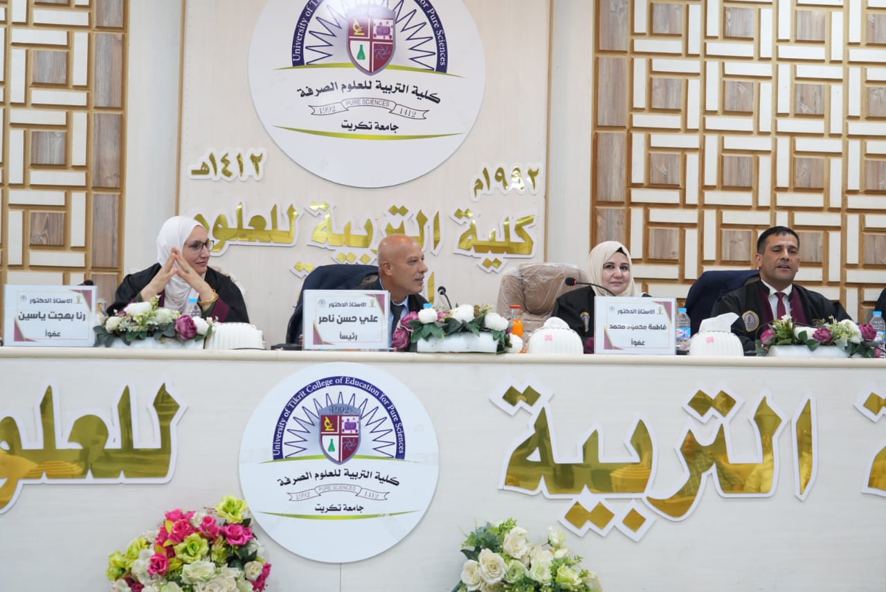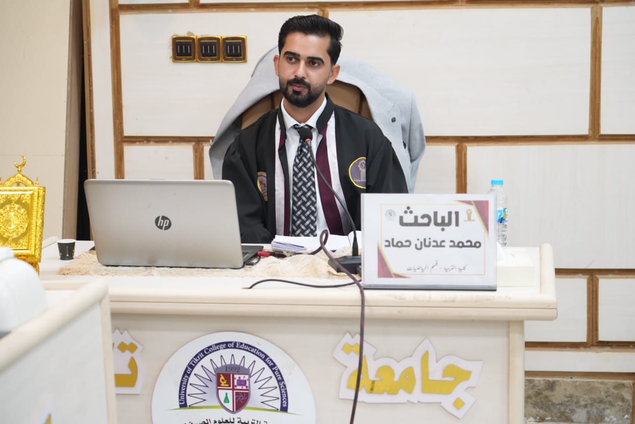 تنفيذا لتوجيهات الاستاذ الدكتور وعد محمود رؤوف رئيس جامعة تكريت حضر الاستاذ الدكتور حسن حسين ابراهيم مساعد رئيس الجامعة للشؤون العلمية مناقشة رسالة الماجستير للطالب محمد عدنان حماد من قسم الرياضيات في كلية التربية للعلوم الصرفة