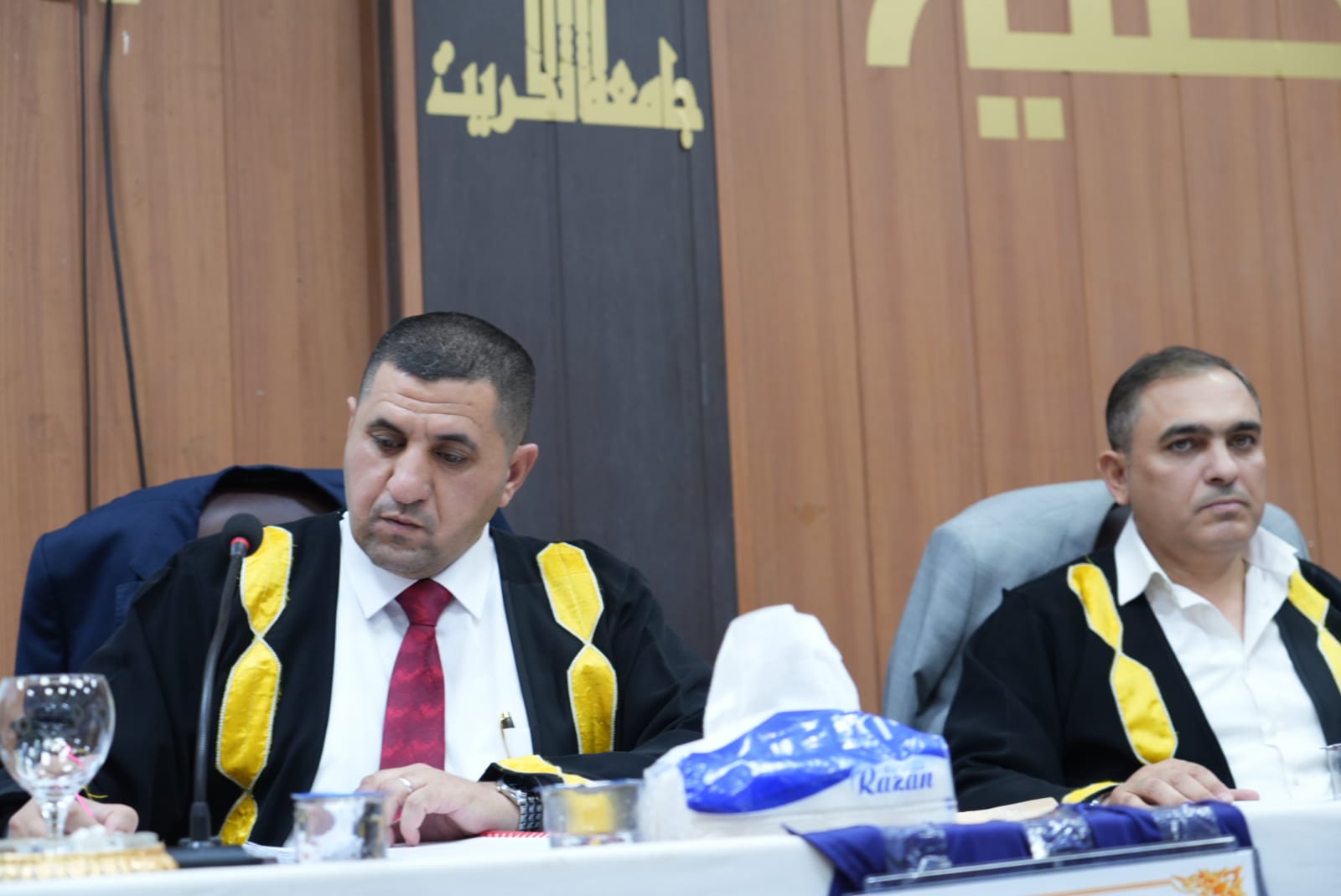 تنفيذا لتوجيهات الاستاذ الدكتور وعد محمود رؤوف رئيس جامعة تكريت وضمن الجولات التفقدية والمتابعات المستمرة لكليات واقسام ومفاصل الجامعة حضر الاستاذ الدكتور حسن حسين ابراهيم مساعد رئيس الجامعة للشؤون العلمية مناقشة رسالة ماجستير في كلية الاداب قسم الترجمة للطالبة (پارلا شاكر خورشيد ) ، واثنى مساعد رئيس الجامعة على جهود الطالبة والاستاذ المشرف وثمن دور الاساتذة اعضاء لجنة المناقشة وملاحظاتهم الدقيقة التي اكدت المستوى العلمي الرصين للجامعة
