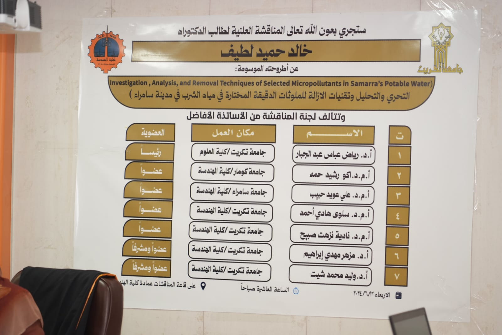 التحري والتحليل وتقنيات الازالة للملوثات الدقيقة المختارة في مياه الشرب في مدينة سامراء )