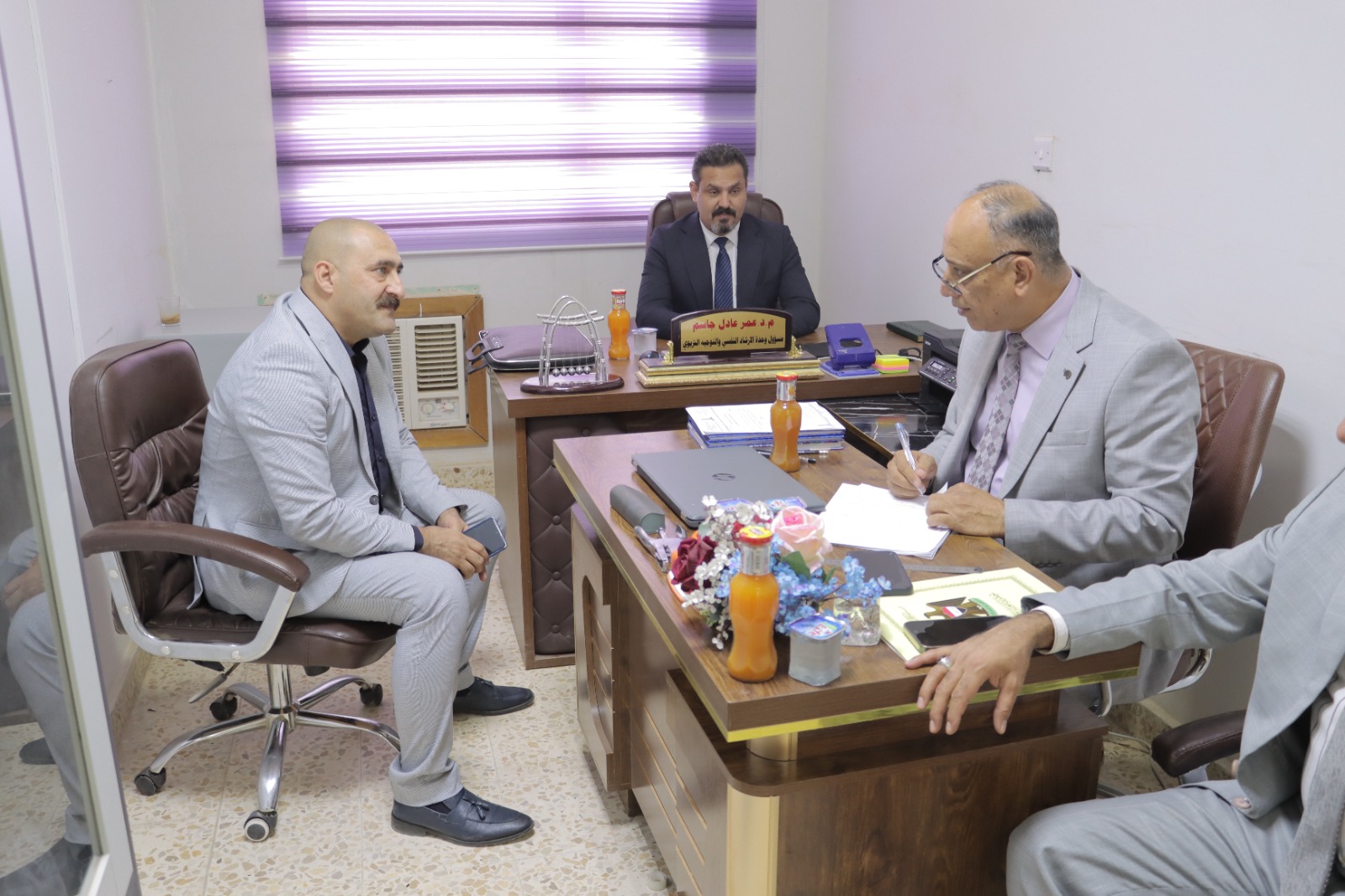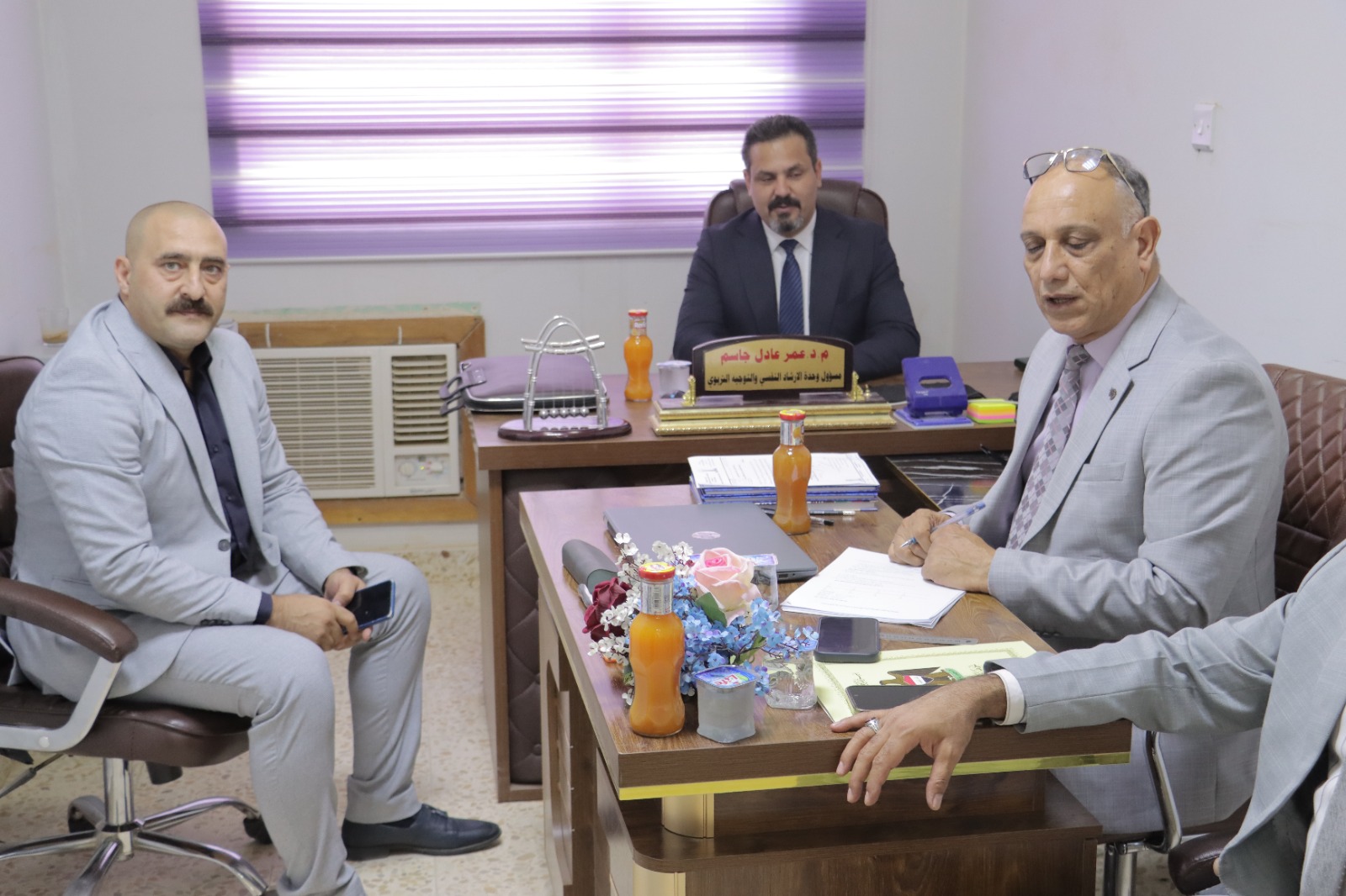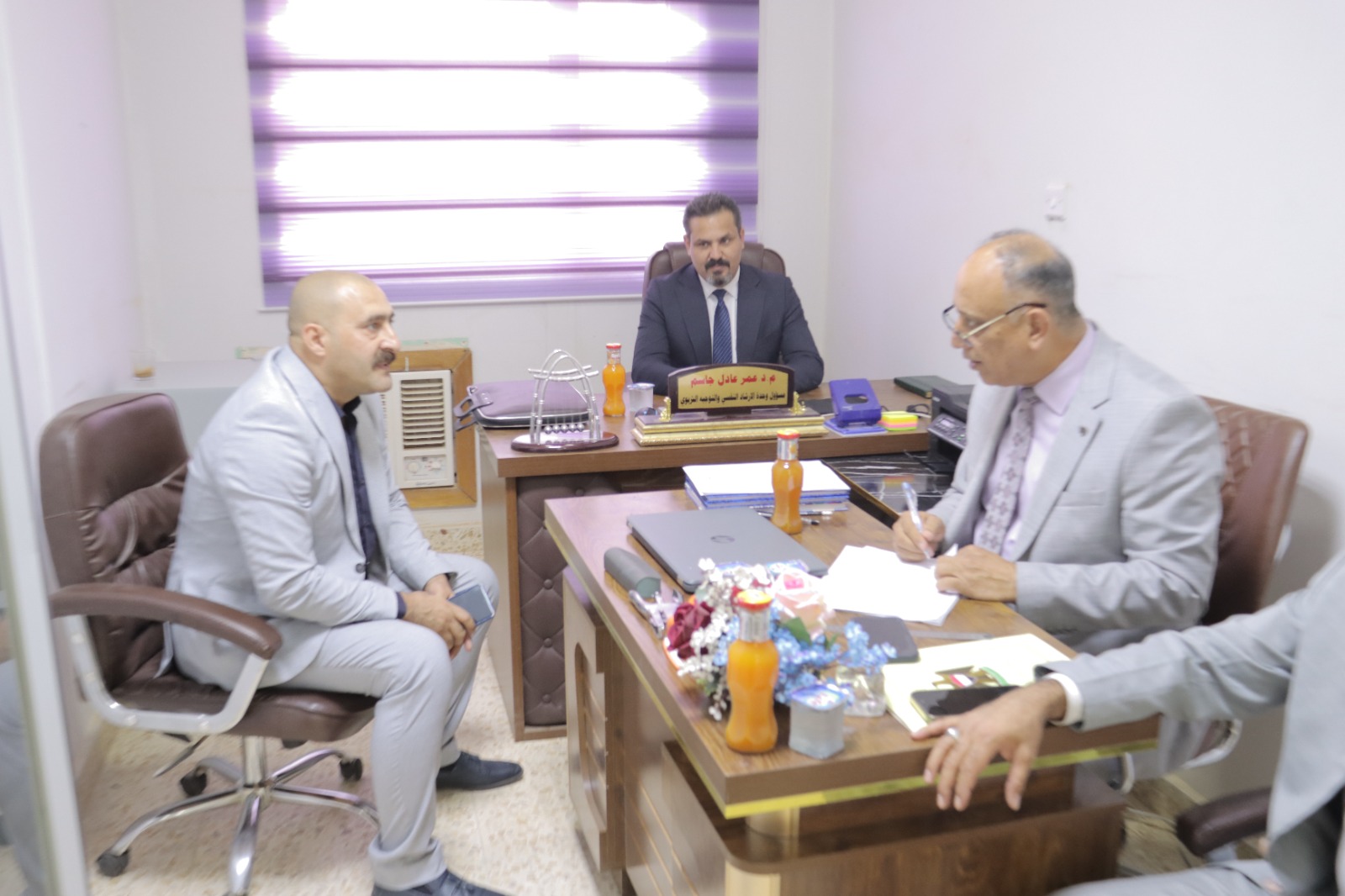 بتوجيه من الاستاذ الدكتور وعد محمود رؤوف رئيس جامعة تكريت استقبل الاستاذ الدكتور حسن حسين ابراهيم مساعد رئيس جامعة تكريت للشؤون العلمية في مكتبه اللجنة الوزارية المشكلة من جهاز الاشراف والتقويم العلمي بعضوية عدد من الاساتذة من وزارة التعليم العالي والبحث العلمي والامن الوطني والمتضمنة تشكيل فريق عمل الارشاد النفسي والتوجيه التربوي والتي تتولى زيارة الجامعات الحكومية والجامعات والكليات الاهلية لتقييم عمل شعب ووحدات الارشاد النفسي والتوجيه التربوي وشعب البحث الاجتماعي في الاقسام الداخلية ومتابعة تنفيذ التوصيات في جامعة تكريت للفترة من ١٢- ١٦/ ١٠/ ٢٠٢٤ وقد قامت اللجنة بالزيارة الميدانية لعدد من كليات واقسام الجامعة وزارت الاقسام الداخلية واطلعت على واقع عمل شعب الارشاد النفسي والاجتماعي فيها ومدى توفير جميع الشروط المطلوبة والمناخ الملائم للطلبة