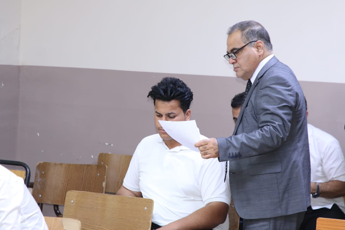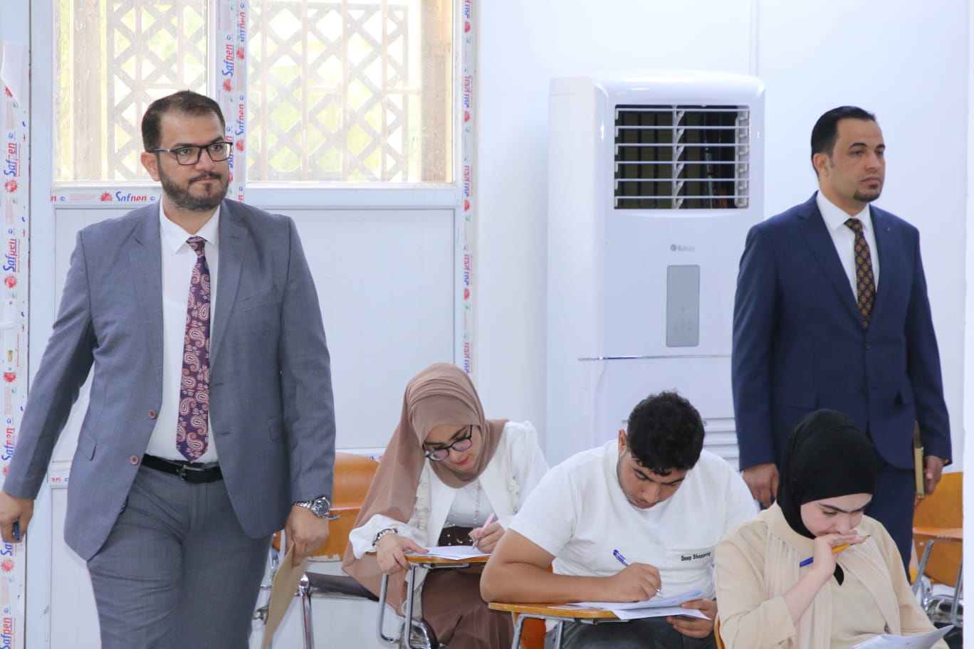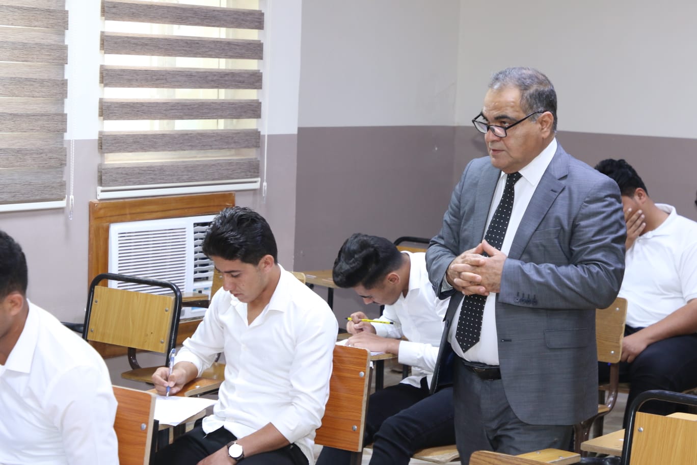تنفيذا لتوجيهات الاستاذ الدكتور وعد محمود رؤوف رئيس جامعة تكريت تفقد الاستاذ الدكتور حسن حسين ابراهيم مساعد رئيس الجامعة للشؤون العلمية يرافقه وفد من وزارة التعليم العالي والبحث العلمي والسيد مدير قسم البعثات والعلاقات الثقافية سير الامتحانات النهائية في كليتي الصيدلة والقانون حيث تجول في القاعات الامتحانية واطلع على طبيعة الاسئلة ومدى ملائمتها للمناهج الدراسية وتابع مدى انسيابية الاجراءات وسير الامتحانات واجراءاتها.