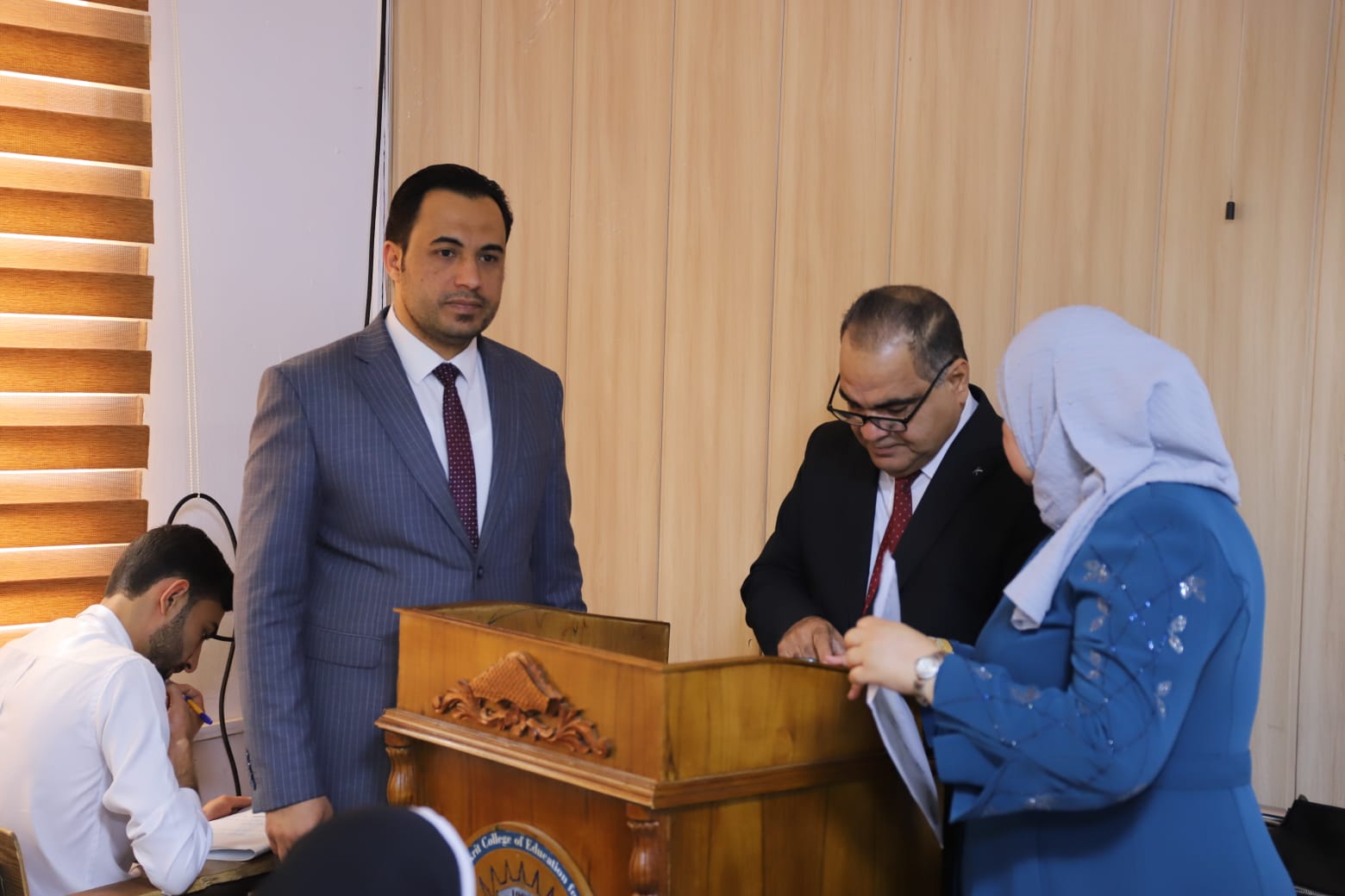 وعلى صعيدٍ ذي صله حضر المساعد العلمي مناقشة علمية بقسم الجغرافية بكلية التربية للعلوم الإنسانية للطالب ( وائل حازم ذنون) حيث بارك المساعد العلمي الجهود المبذولة من قبل الطالب ولجنة المناقشة واثنى على دقة الملاحظات العلمية وصوابها.