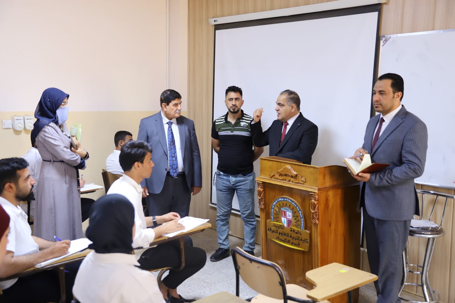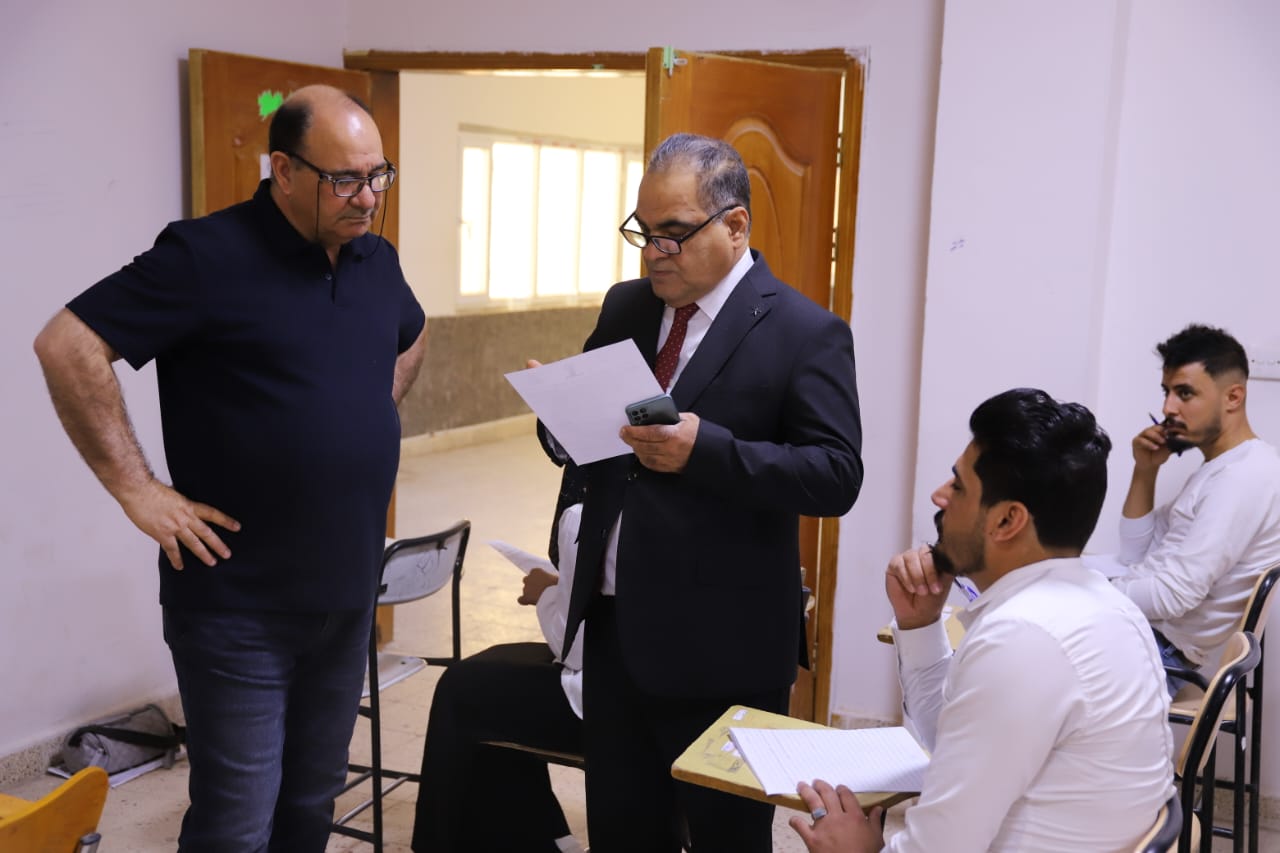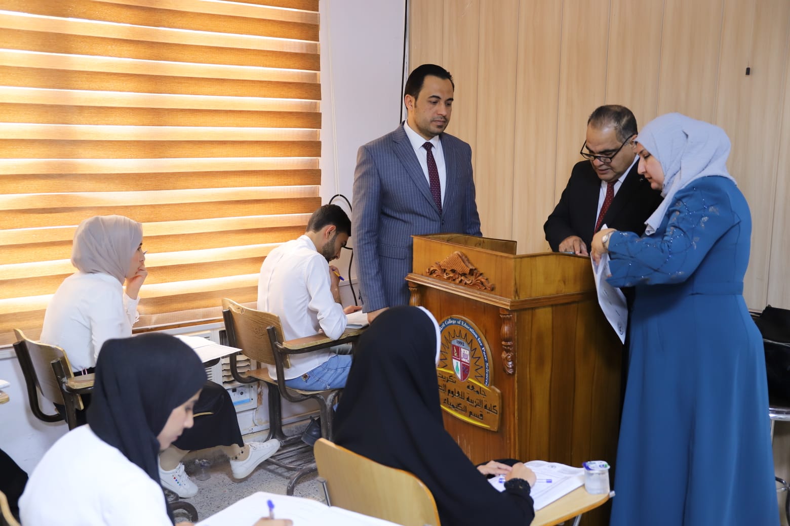 تنفيذا لتوجيهات الاستاذ الدكتور وعد محمود رؤوف رئيس جامعة تكريت تفقد الاستاذ الدكتور حسن حسين ابراهيم مساعد رئيس الجامعة للشؤون العلمية اليوم الاحد الموافق 12/5/2024 سير العلمية النهائية في كليتي التربية للعلوم الانسانية والتربية للعلوم الصرفة حيث تجول داخل القاعات الامتحانية واطلع على طبيعة الاسئلة ومدى ملائمتها للمناهج الدراسية وتابع سلاسة سير الامتحانات واجراءاتها واثنى على الجهود المبذولة من قبل عمادة الكليتين في التنظيم والالتزام بالتعليمات وضوابط وزارة التعليم العالي والبحث العلمي .