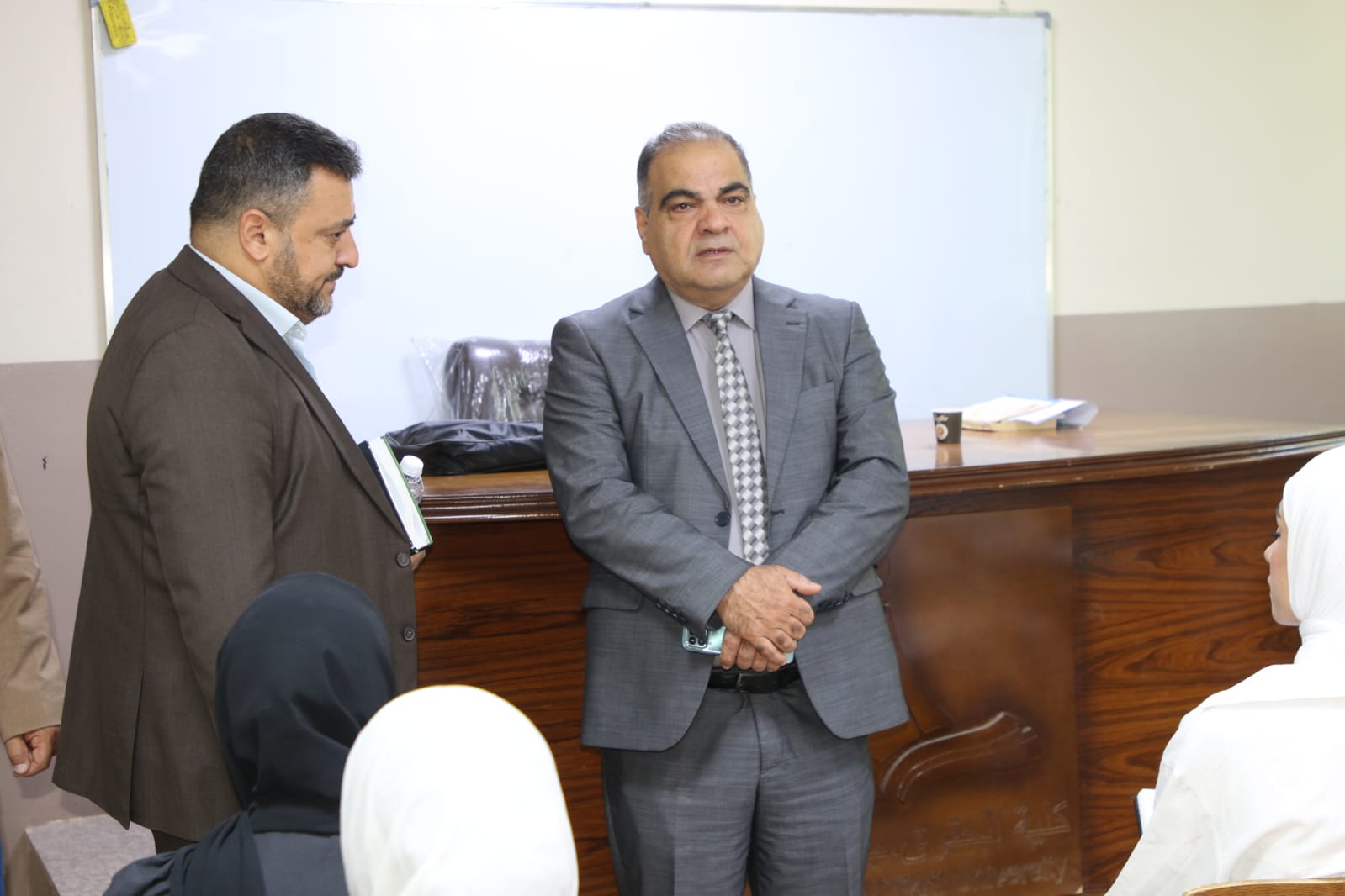 تنفيذا لتوجيهات الاستاذ الدكتور وعد محمود رؤوف رئيس جامعة تكريت زار الاستاذ الدكتور حسن حسين ابراهيم مساعد رئيس الجامعة للشؤون العلمية كلية القانون حيث حضر مناقشة رسالة ماجستير فيها واثنى على جهود الطالب المناقش والاساتذة المشرفين وثمن دور الاساتذة اعضاء لجنة المناقشة وملاحظاتهم قام بعدها بجولة في عدد من الاقسام والقاعات الدراسية بالكلية اطلع خلالها على سير العمل فيها والوقوف عل اهم المشاكل والمعوقات وايجاد الحلول المناسبة لها