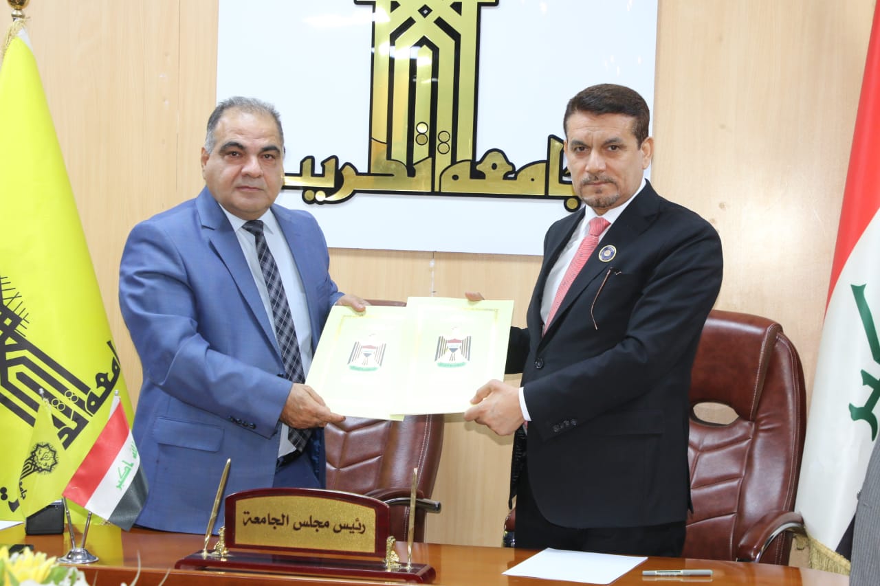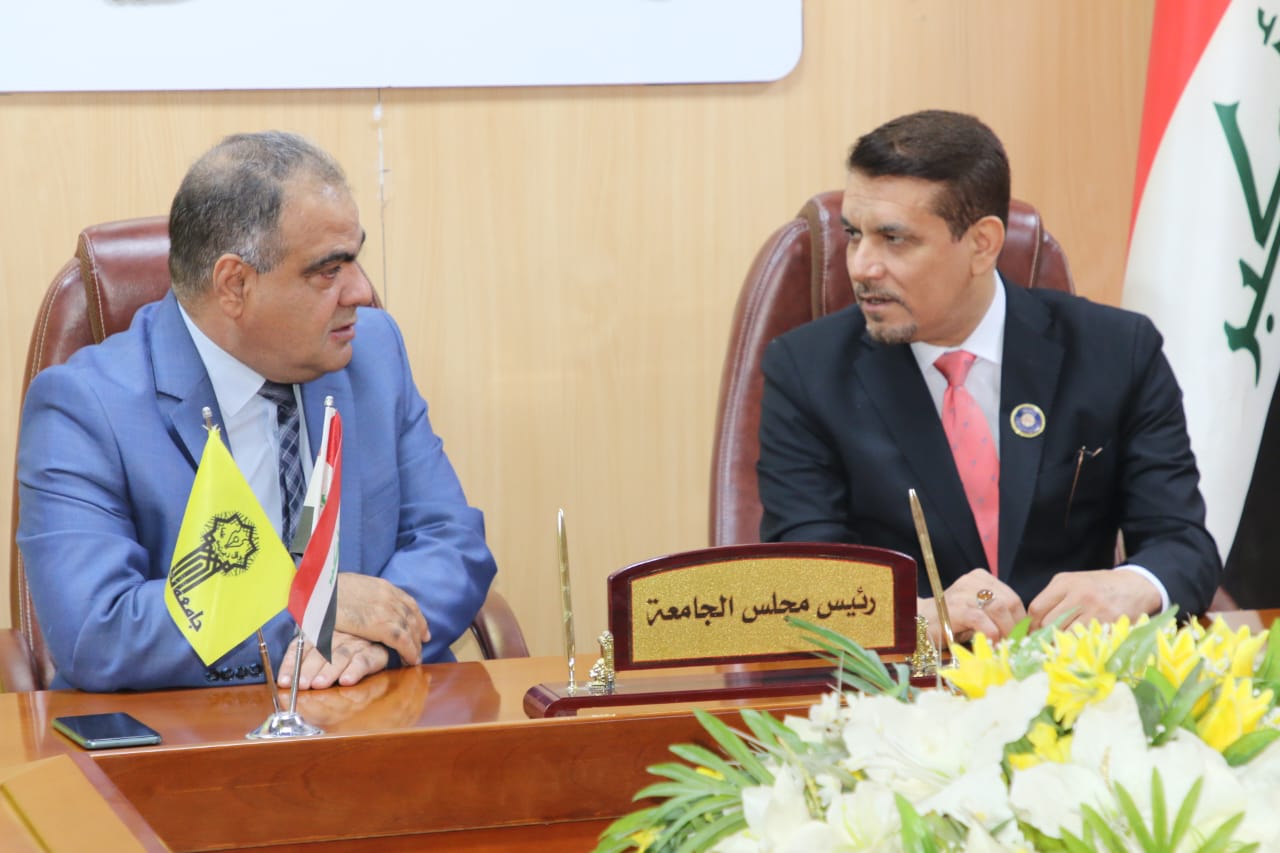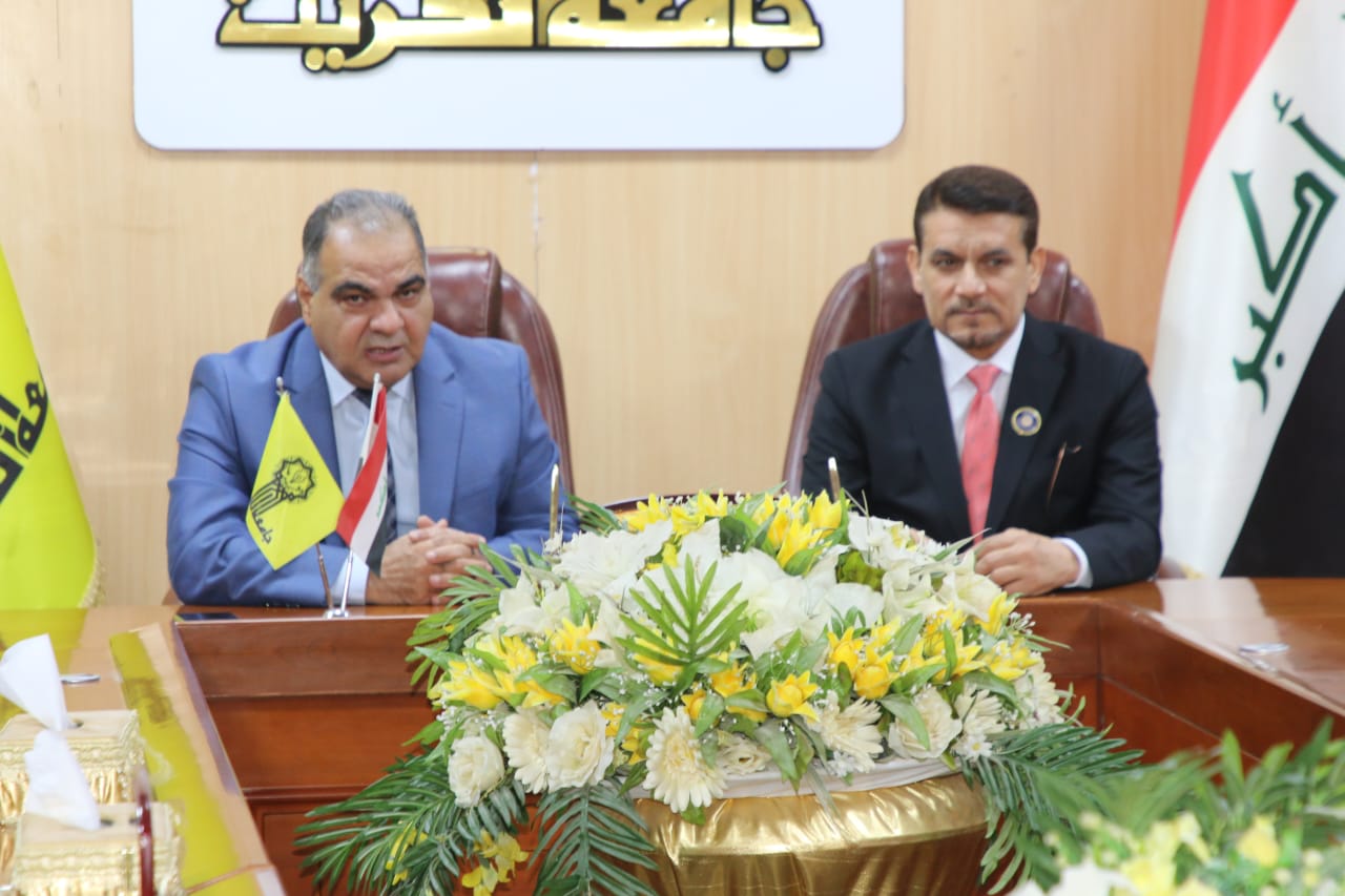 تنفيذا لتوجيهات الاستاذ الدكتور وعد محمود رؤوف رئيس جامعة تكريت استقبل الأستاذ الدكتور حسن حسين مساعد رئيس الجامعة للشؤون العلمية ابراهيم في مكتبه السادة رئيسي جامعة الإمام جعفر الصادق (عليه السلام ) فرع ذي قار الاستاذ الدكتور حسين مجيد الحصونة وفرع كركوك الاستاذ الدكتور محمد عبدالعزيز قادر لبحث سبل التعاون العلمي والاكاديمي بين الجامعتين وتوقيع اتفاقيتي تعاون مشترك