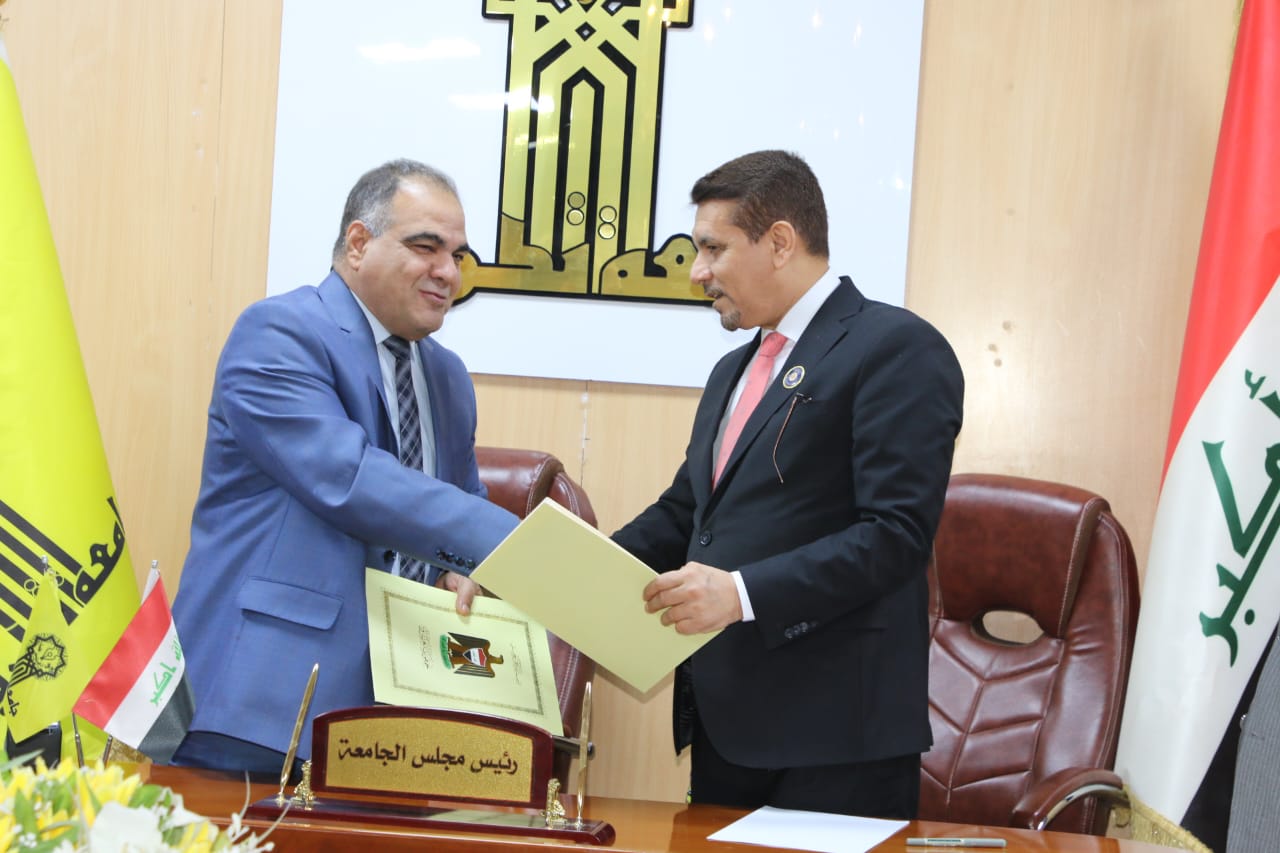 تم بعدها توقيع اتفاقية تفاهم علمية بين جامعة تكريت وجامعة جعفر الصادق ( عليه السلام) فرع ذي قار وفرع كركوك من اجل فتح افاق التعاون العلمي وامكانية اعارة التدريسيين وتبادل زيارات الطلبة واعضاء الهيئة التدريسية والتشارك والتعاون في مجال البحوث العلمية المشتركة والتعاون في عقد المؤتمرات والملتقيات الطلابية وتنظيم الندوات المشتركة وغيرها من الفعاليات العلمية بالاضافة الى تطوير المراكز والوحدات البحثية من خلال التعاون العلمي المشترك في الاختصاصات المختلفة التي يحددها الطرفين